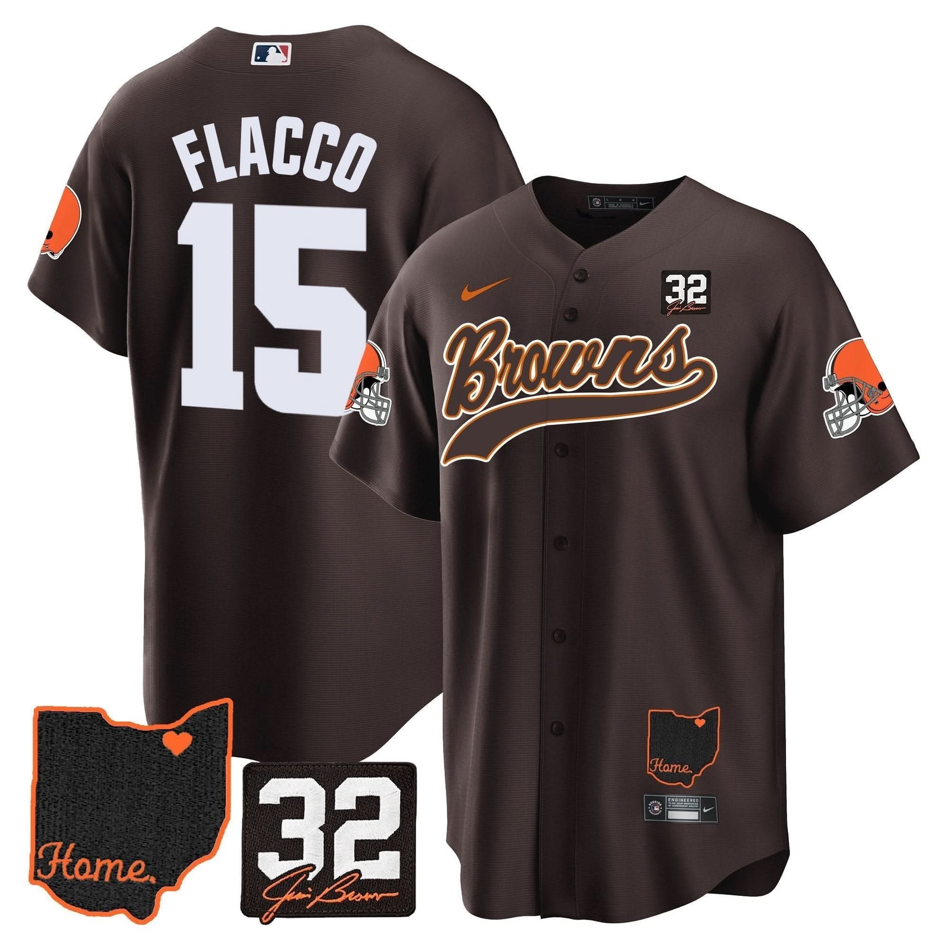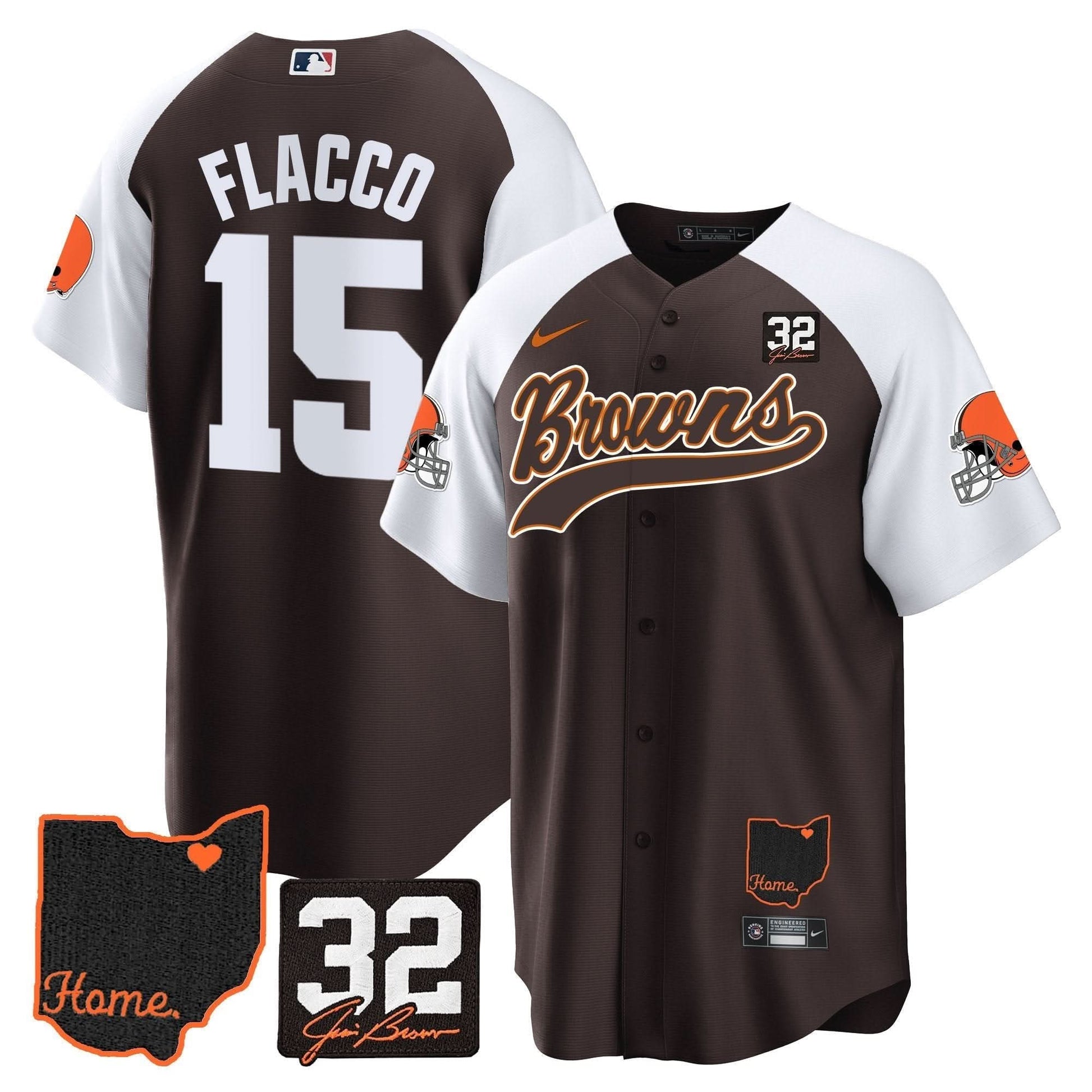 Browns #32 Jim Brown Memorial & Home Patch Baseball Jersey V2 - All Stitched