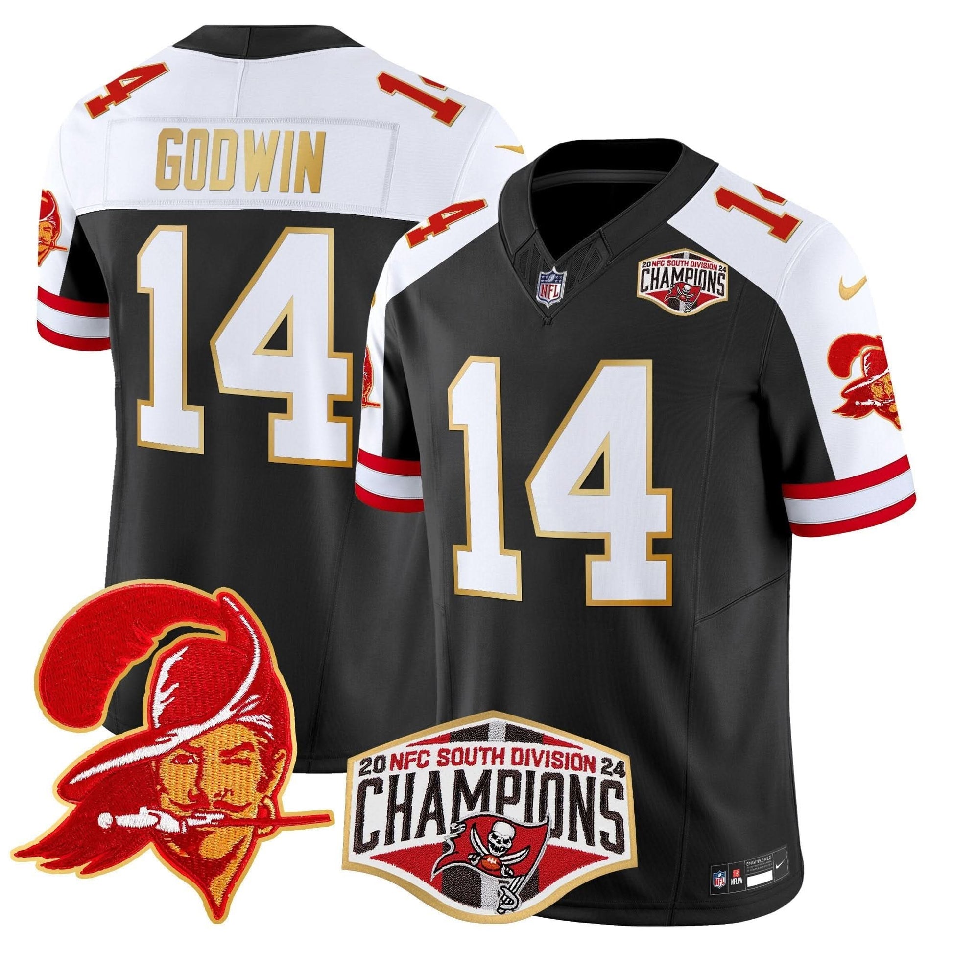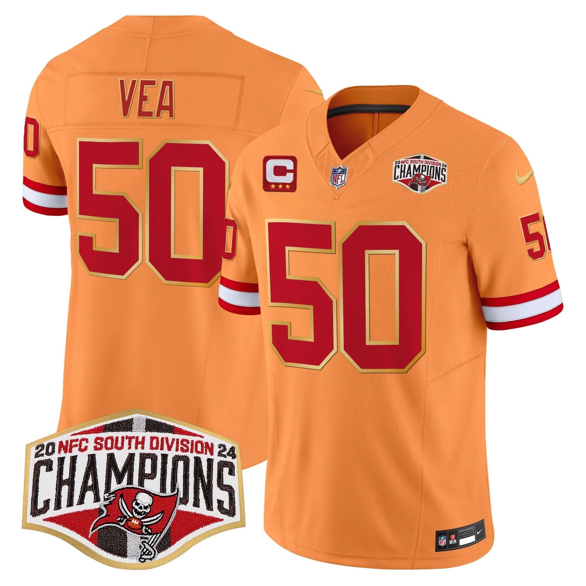 Buccaneers Creamsicle 2024 NFC South Division Champions Patch Gold Trim Vapor Limited Jersey - All Stitched