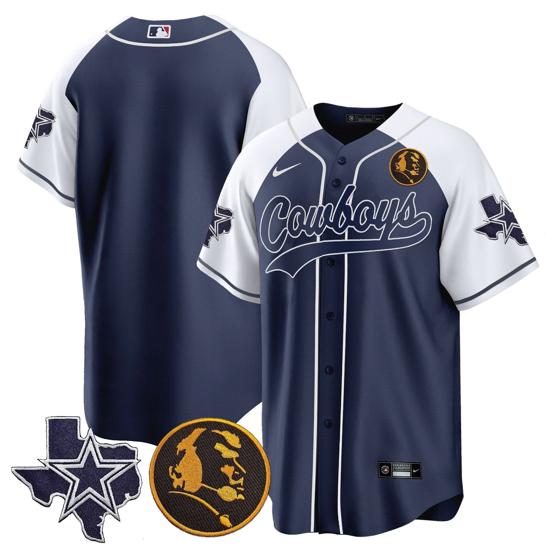 Cowboys Texas & John Madden Patch Baseball Jersey - All Stitched