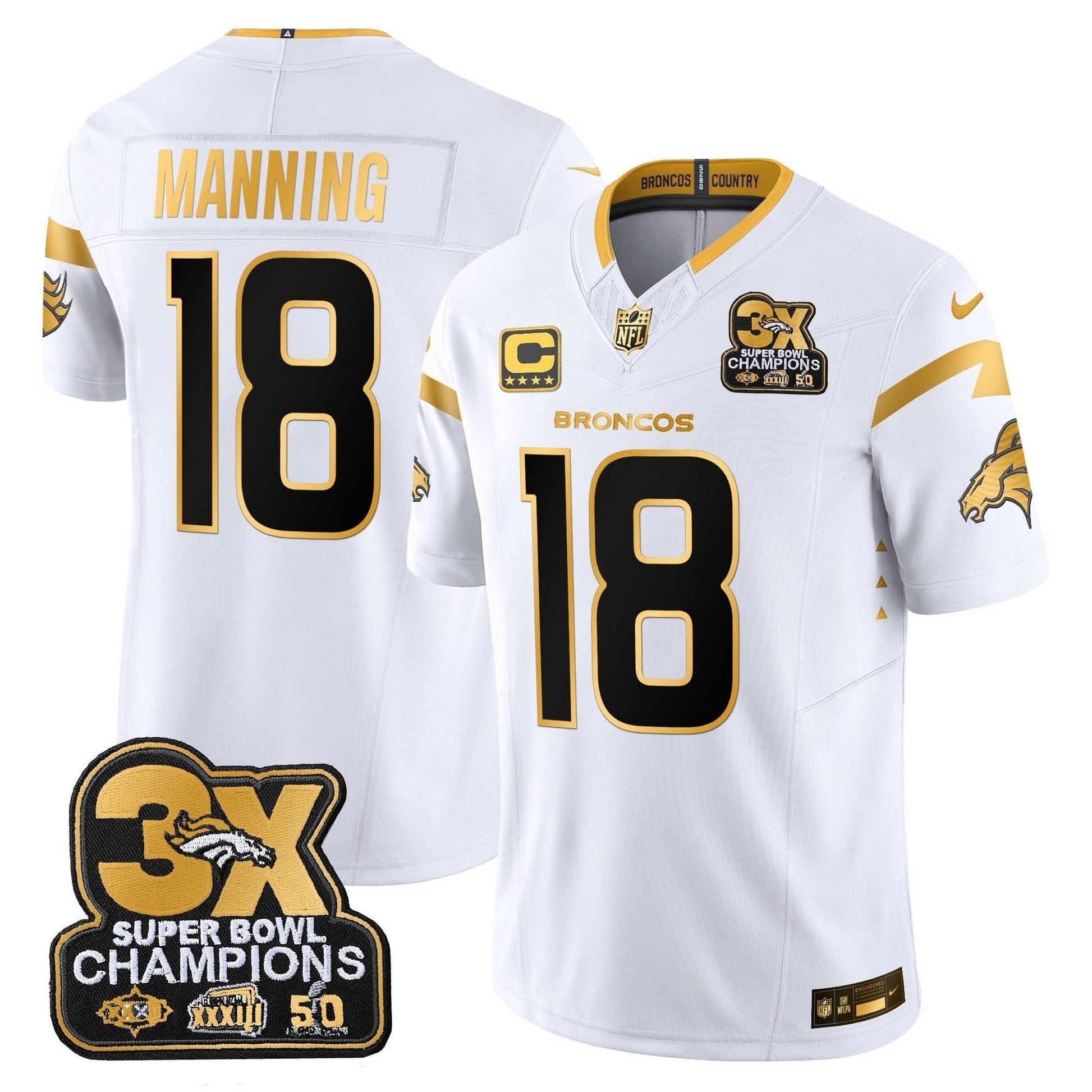 Denver Broncos 3-Time Champions Patch Gold Vapor Limited Jersey - All Stitched