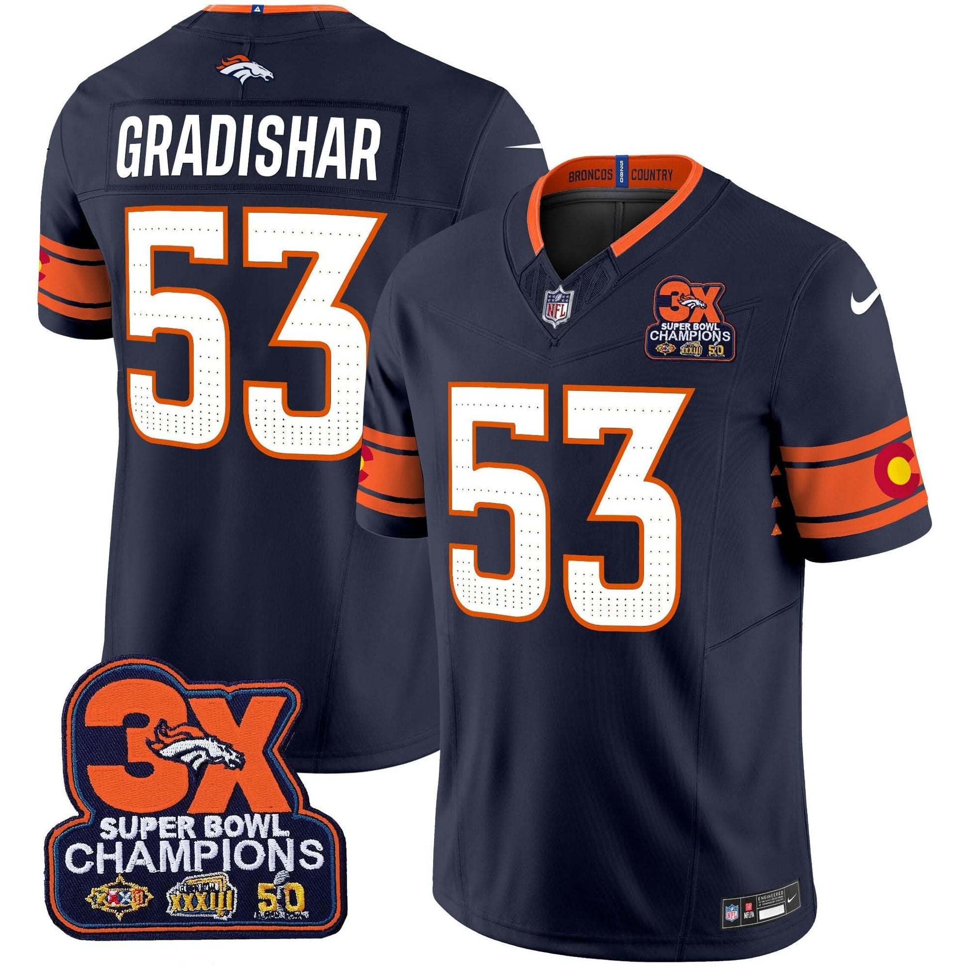 Denver Broncos 3x Patch Colorado Flag Vapor Limited Jersey - All Stitched