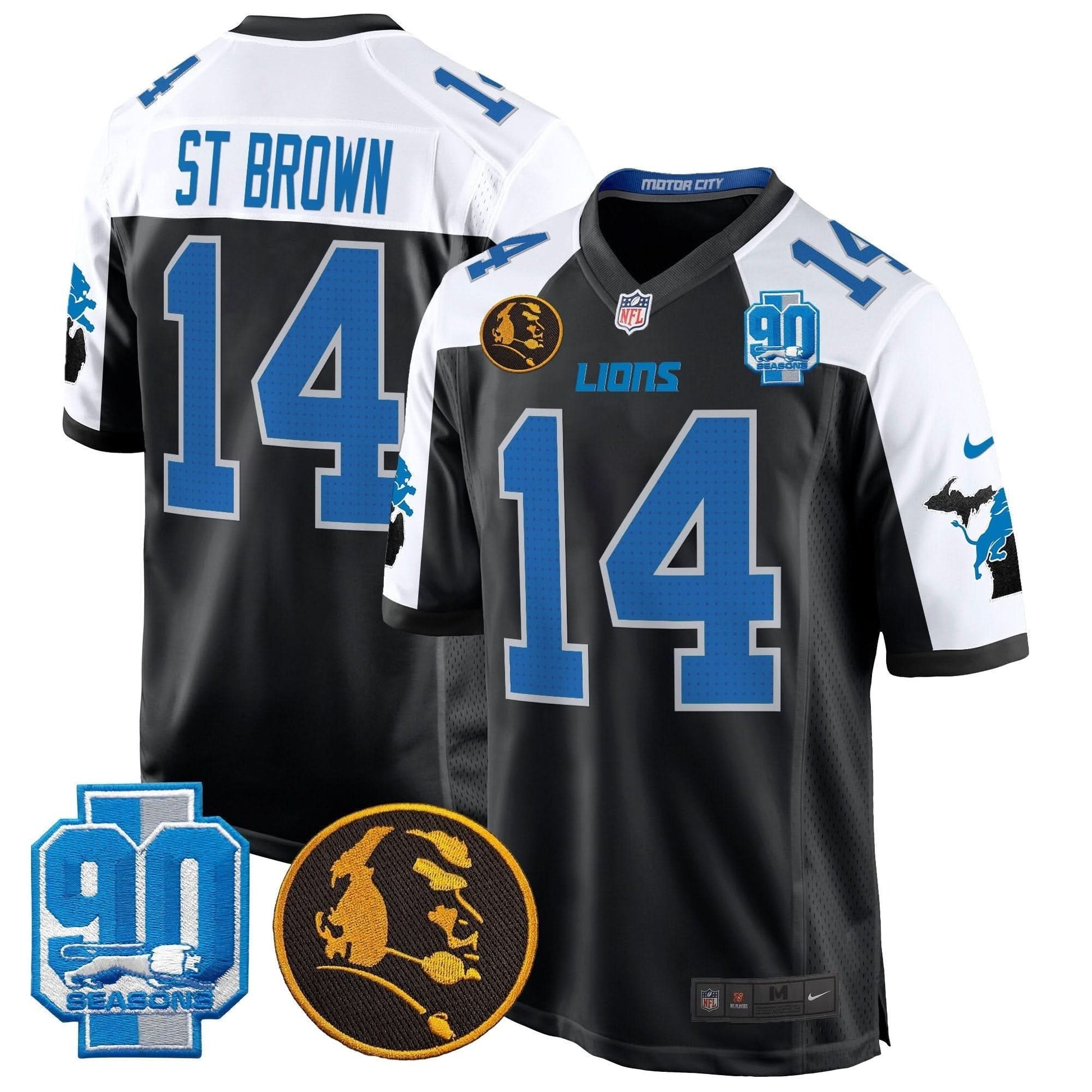 Detroit Lions 2024 90th & John Madden Patch Game Jersey - All Stitched