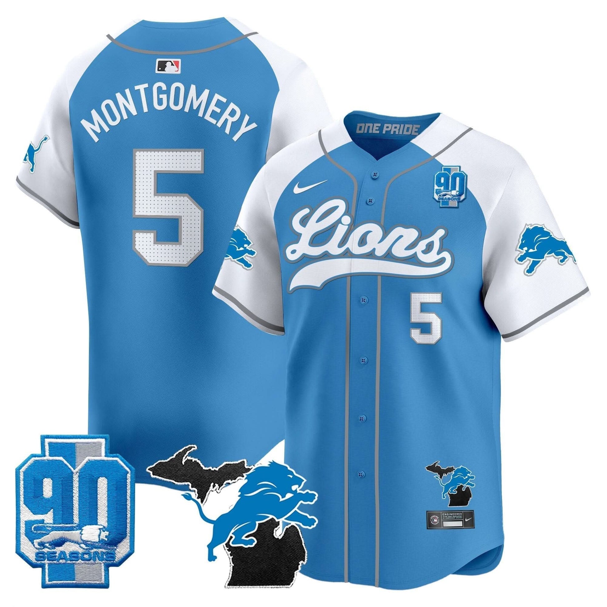 Detroit Lions 2024 Michigan & 90th Season Patch Baseball Jersey - All Stitched