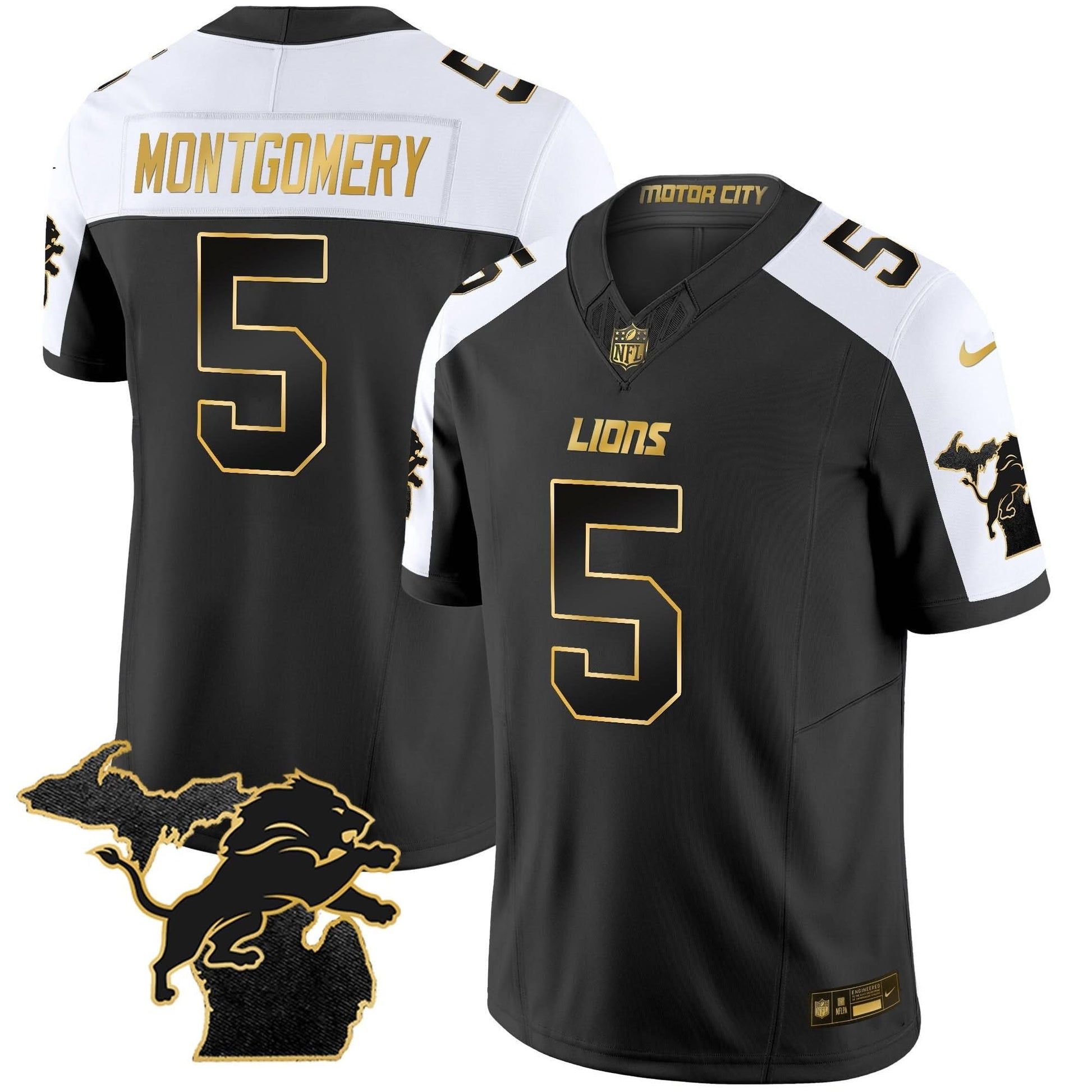 Detroit Lions 2024 Michigan Patch Gold Vapor Jersey - All Stitched