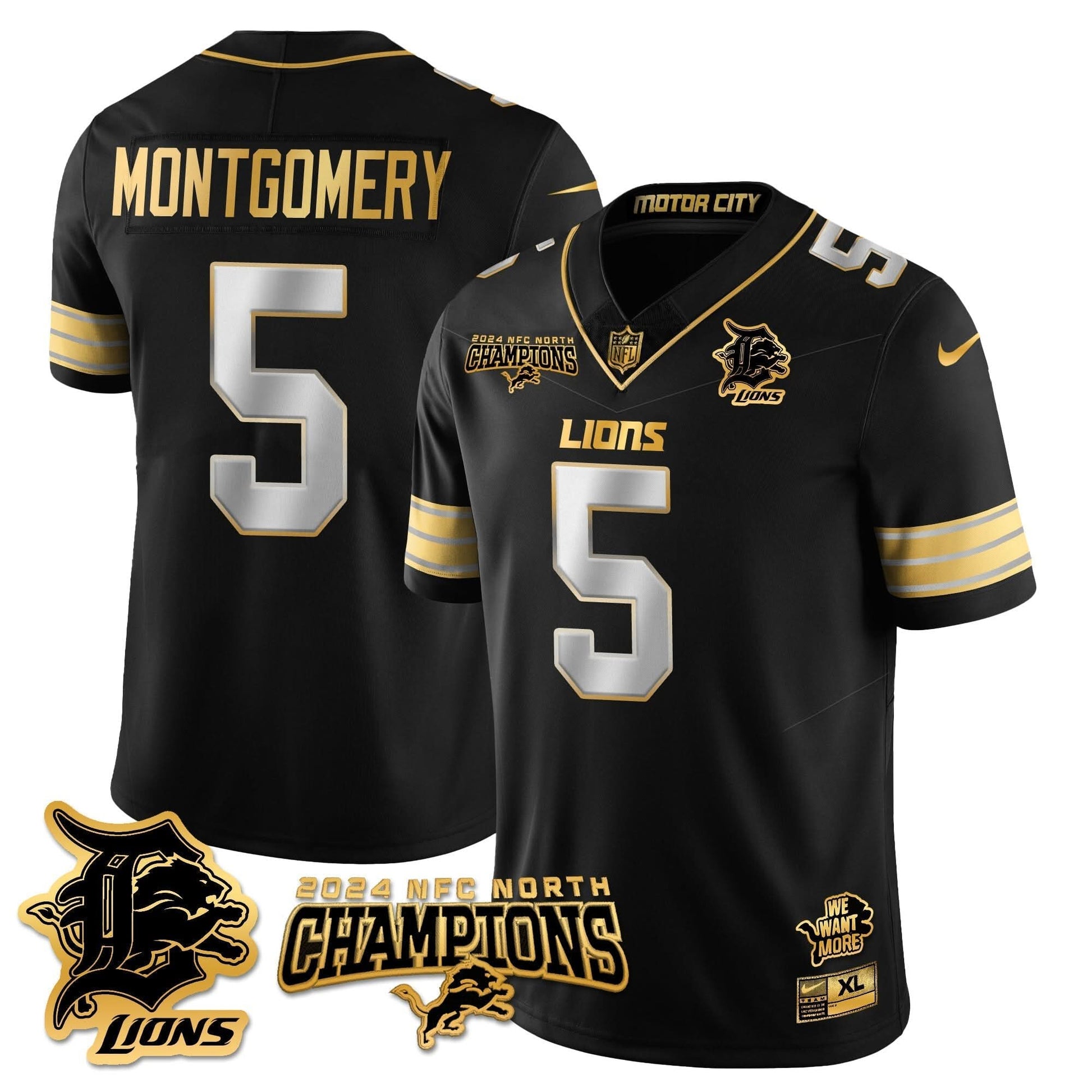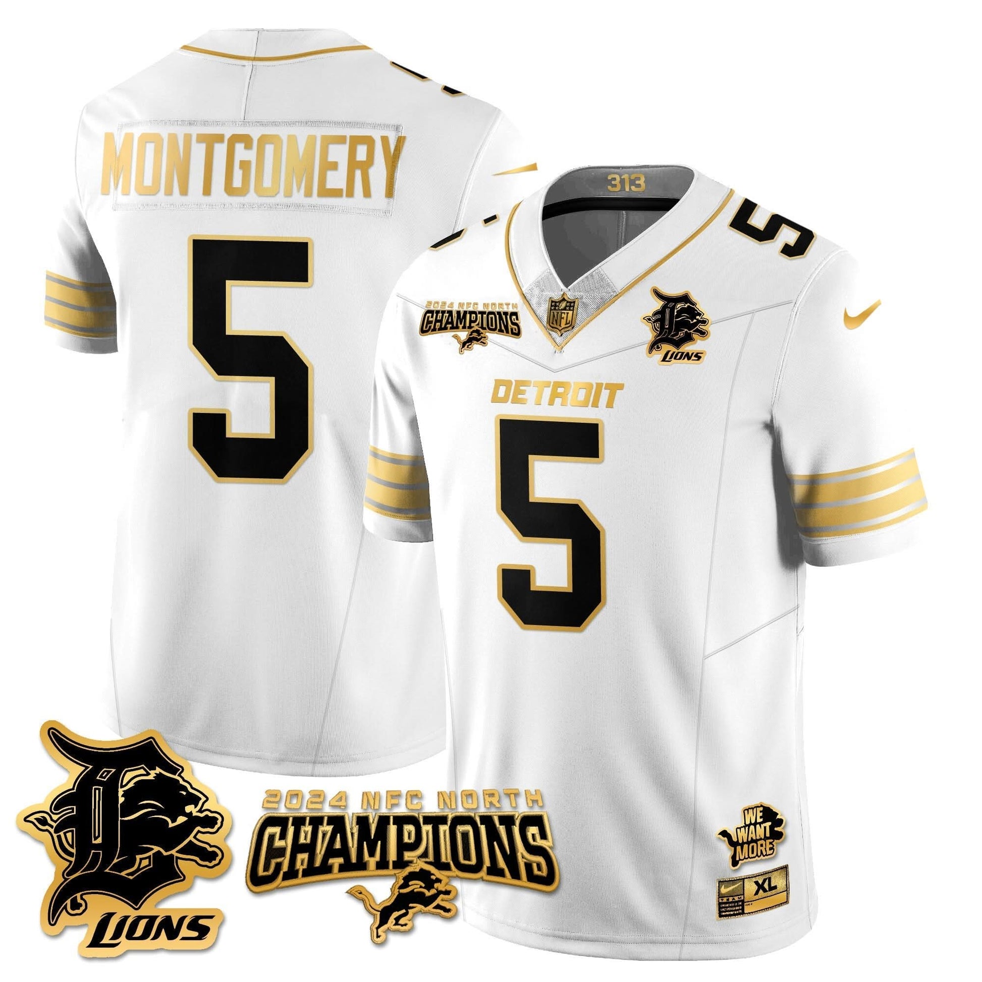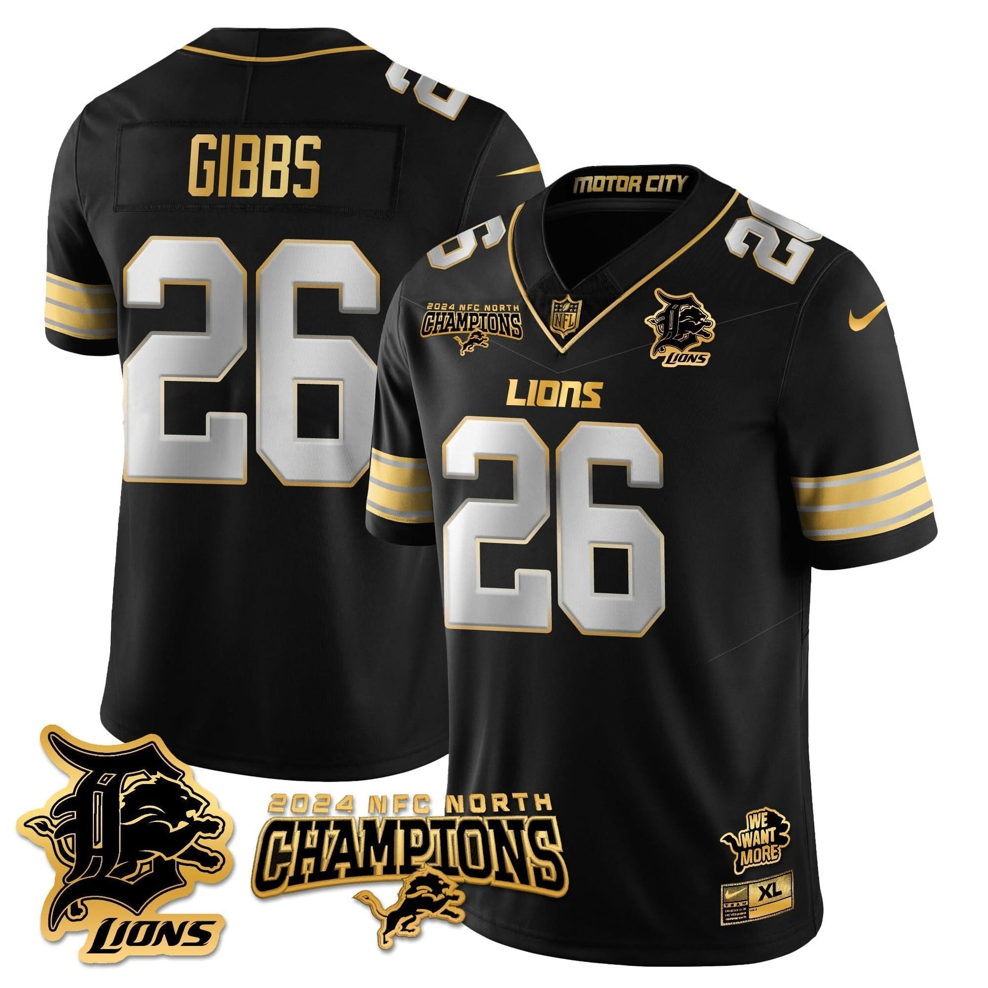 Detroit Lions 2024 NFC North Champions Gold Jersey N1 - All Stitched