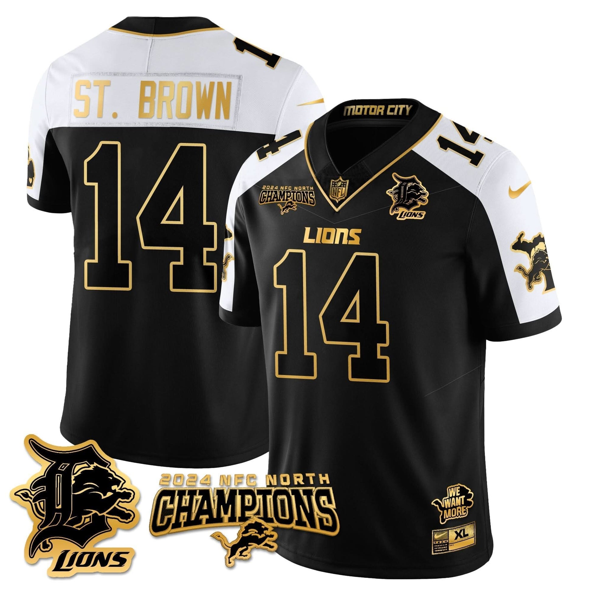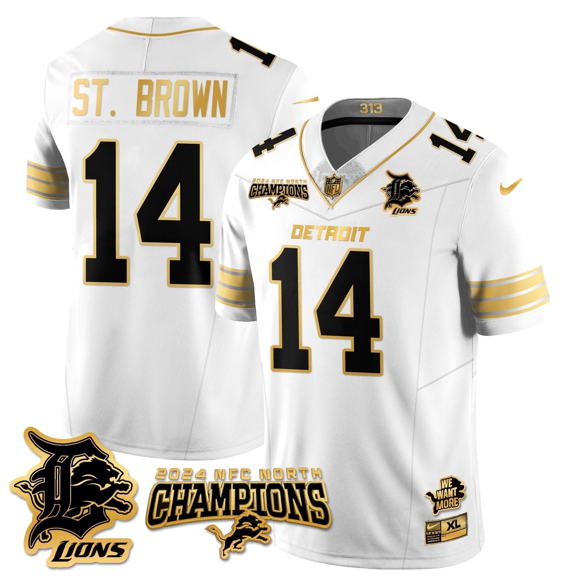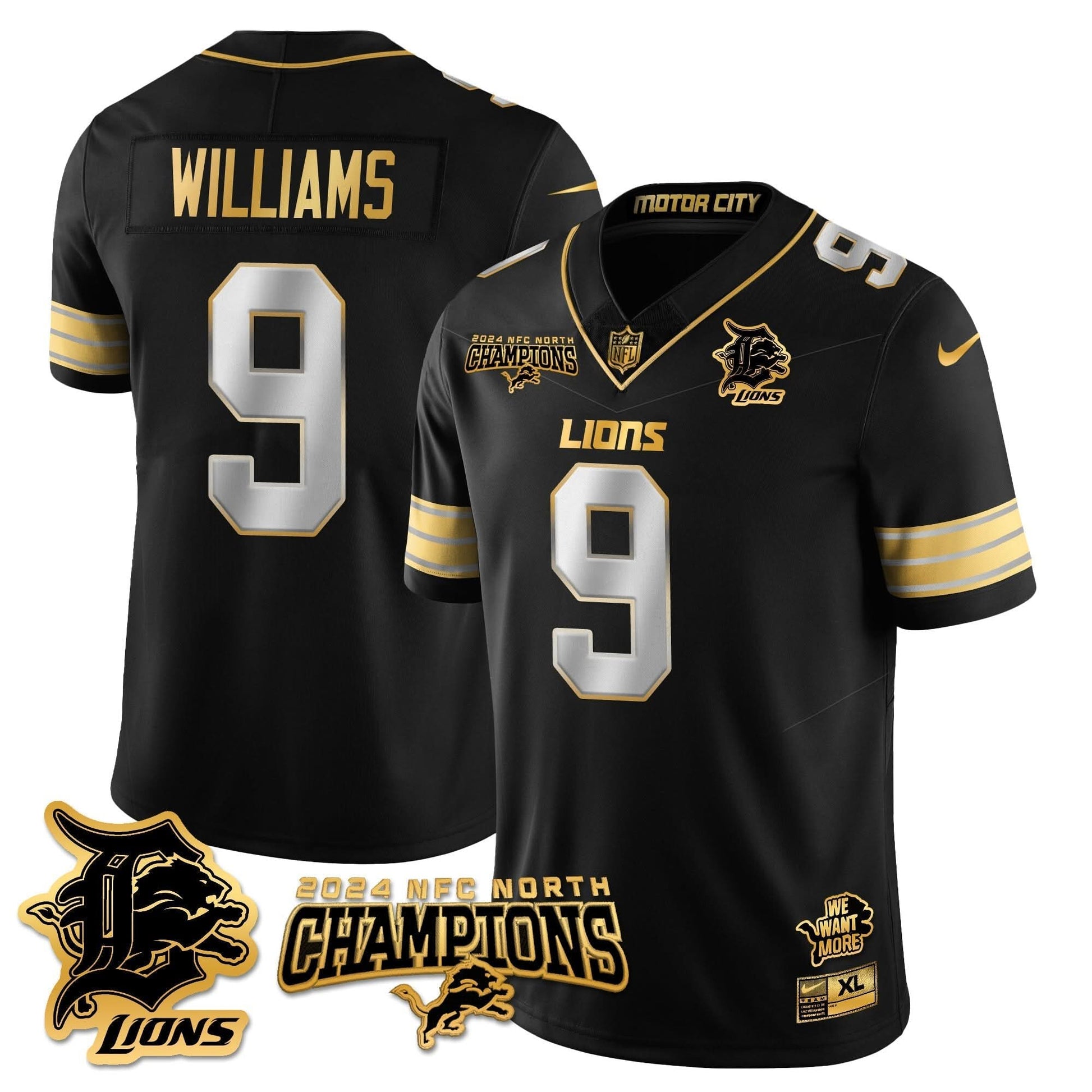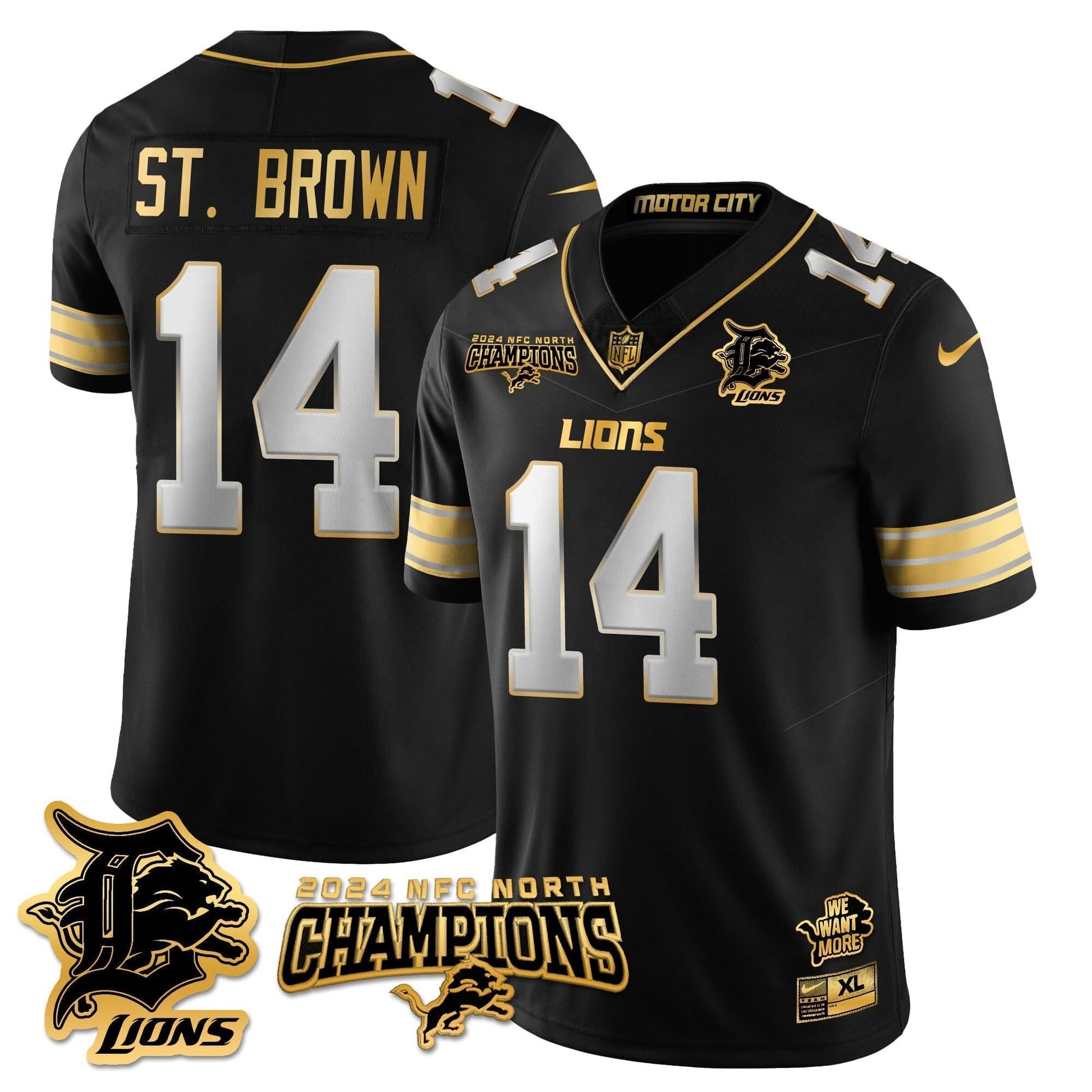 Detroit Lions 2024 NFC North Champions Gold Jersey N1 - All Stitched