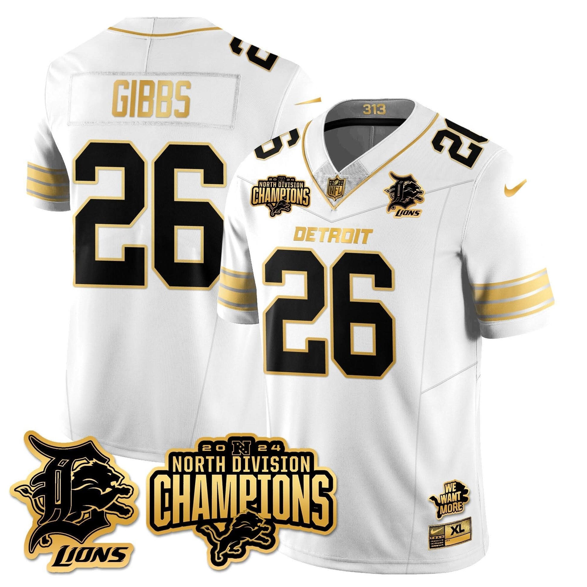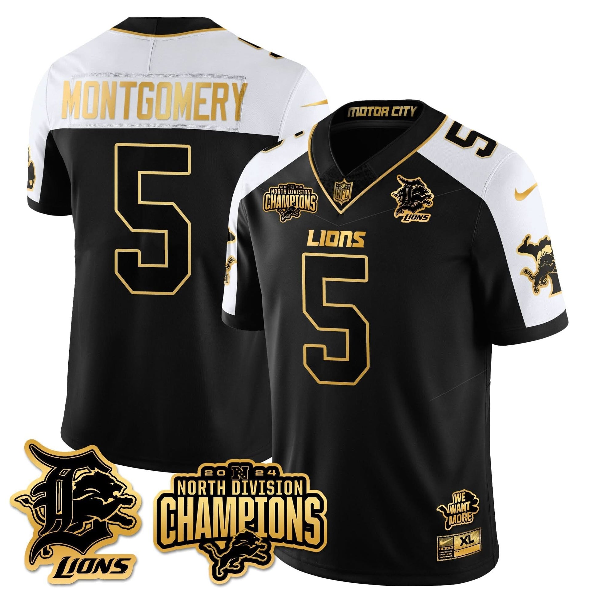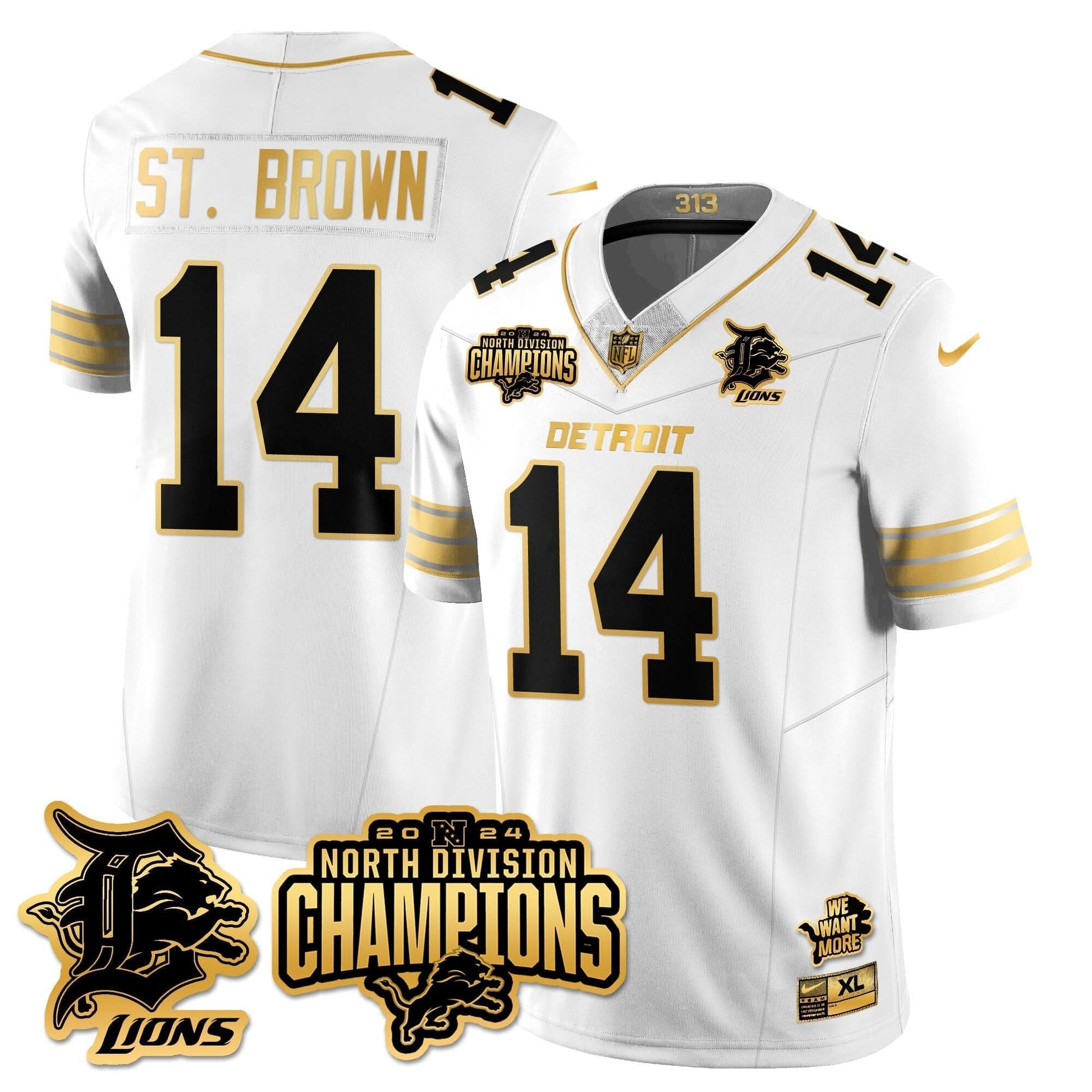 Detroit Lions 2024 NFC North Champions Gold Jersey N2 - All Stitched