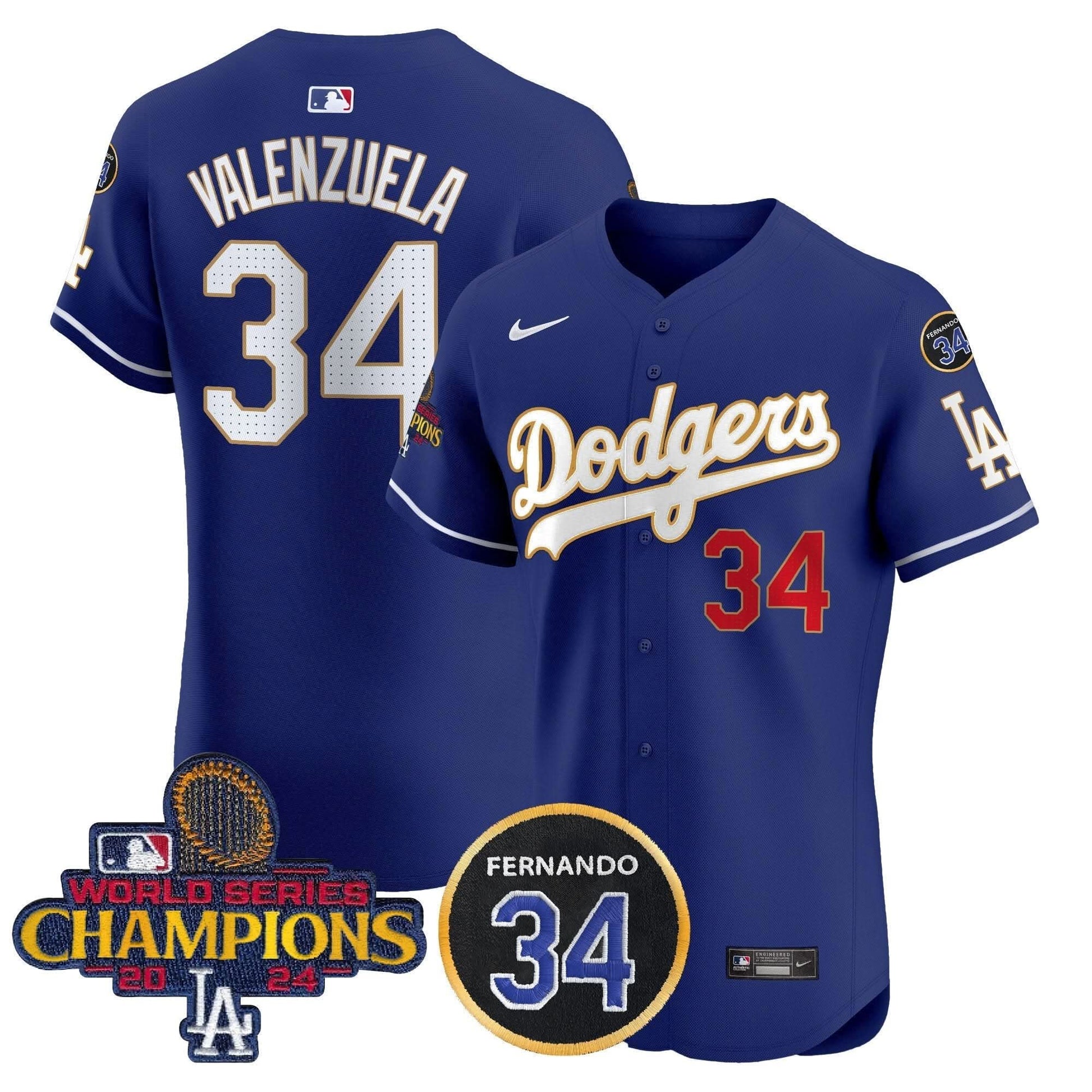Dodgers 2024 World Series Champions Gold Trim Vapor Premier Elite Jersey V2 - All Stitched