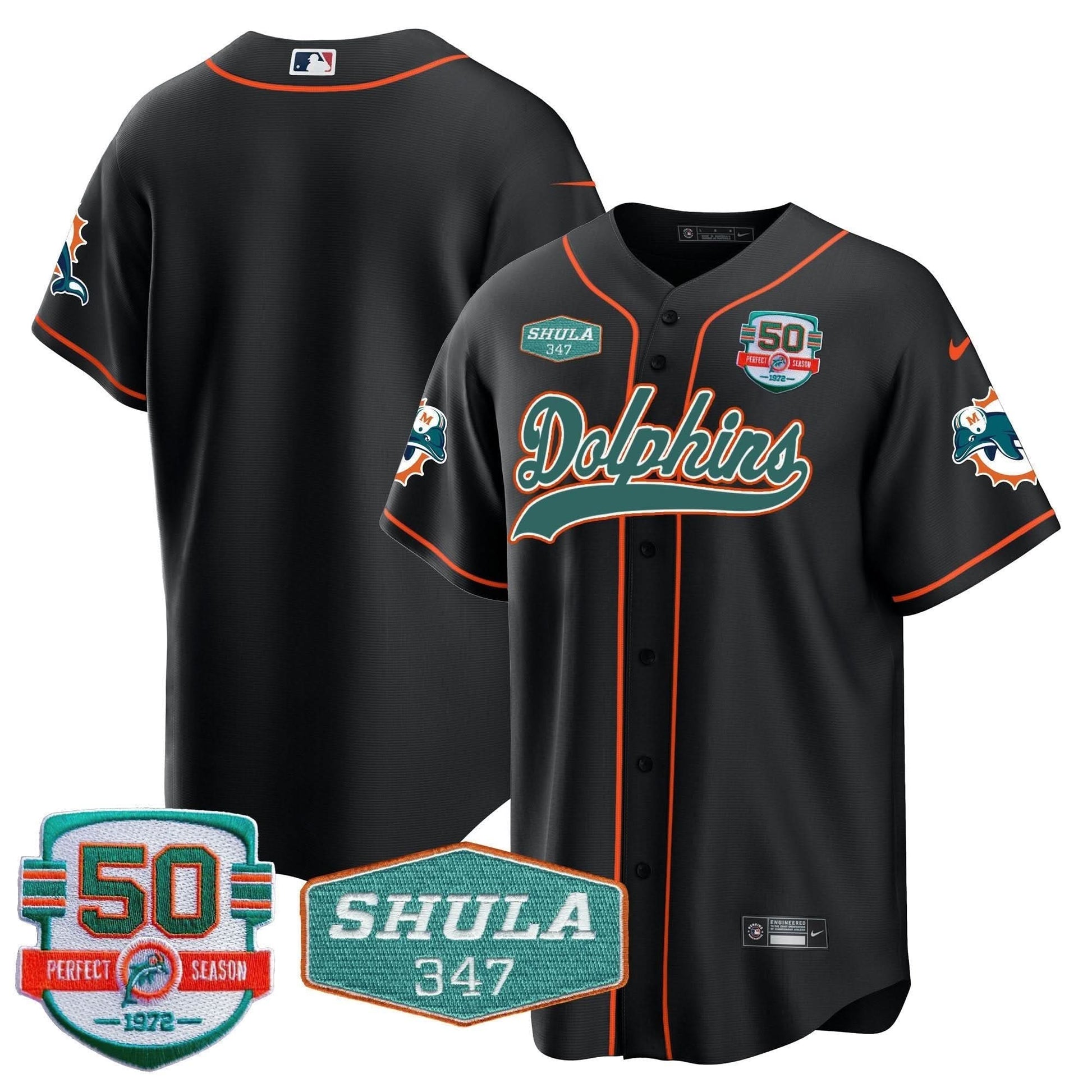 Dolphins 50th & Don Shula 347 Memorial Patch Baseball Jersey - All Stitched