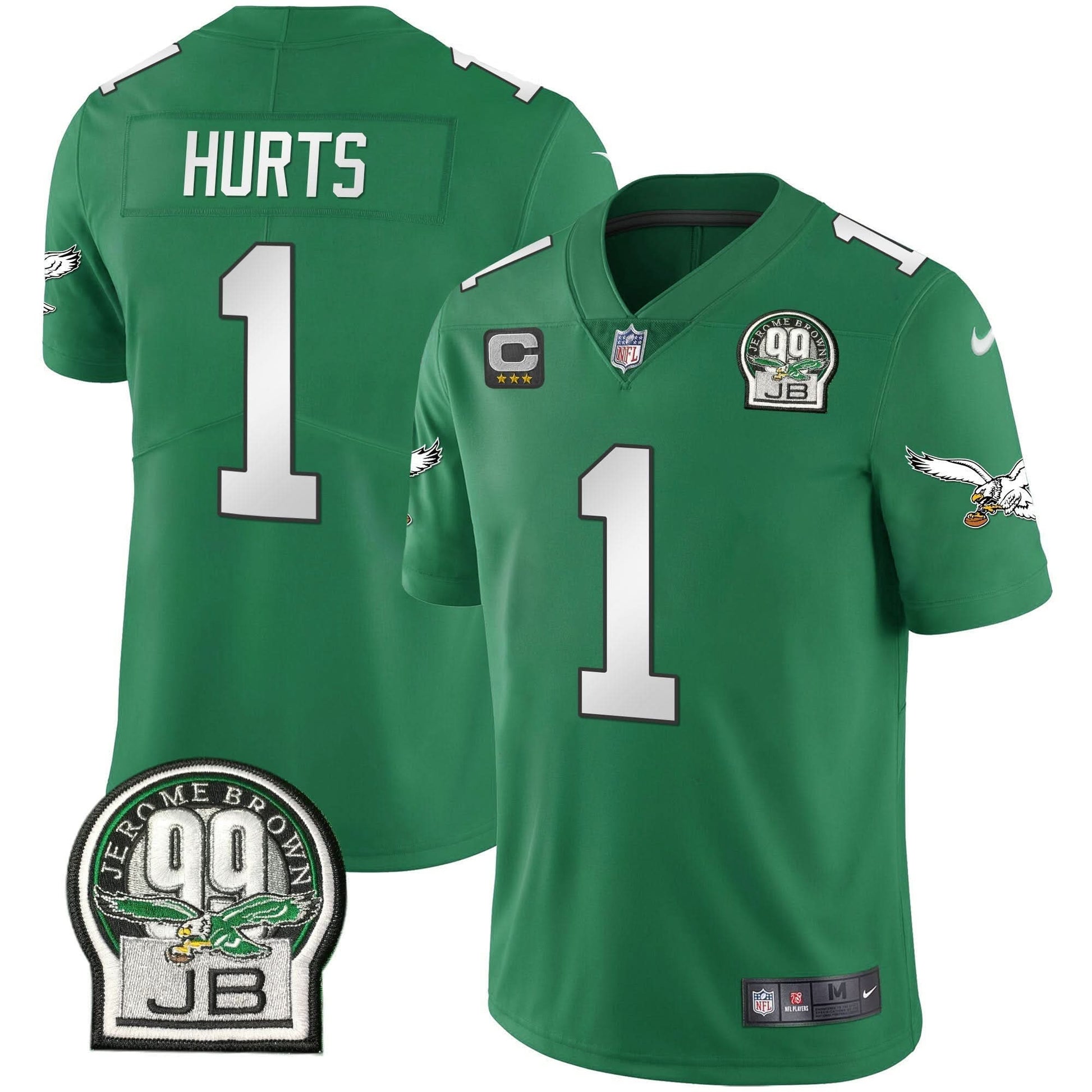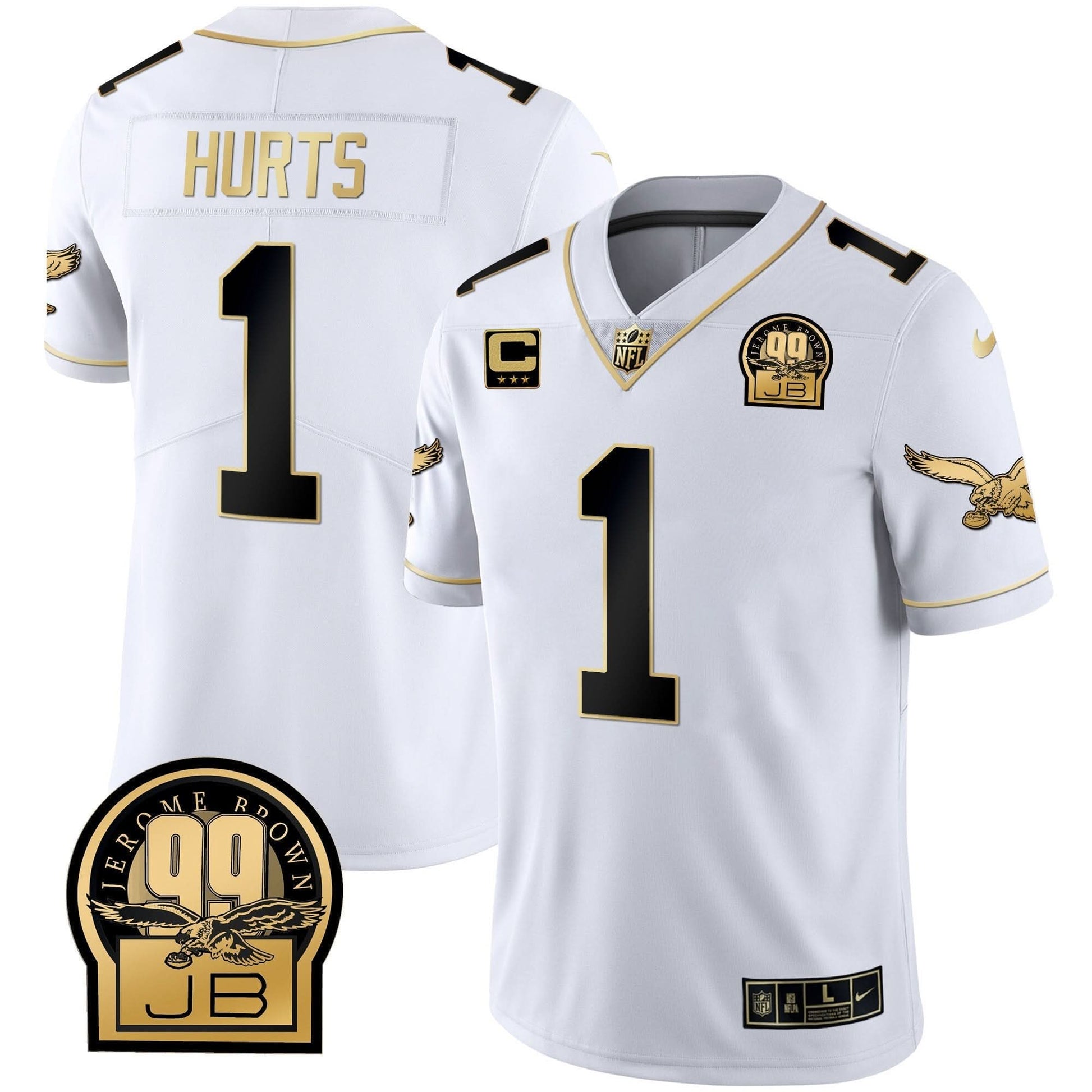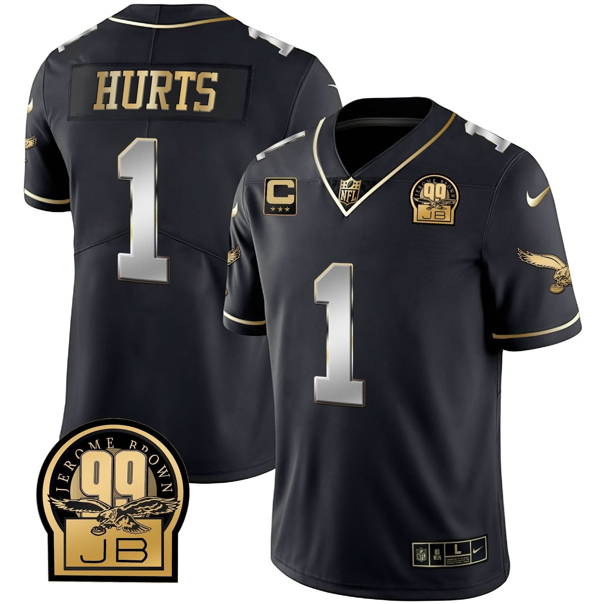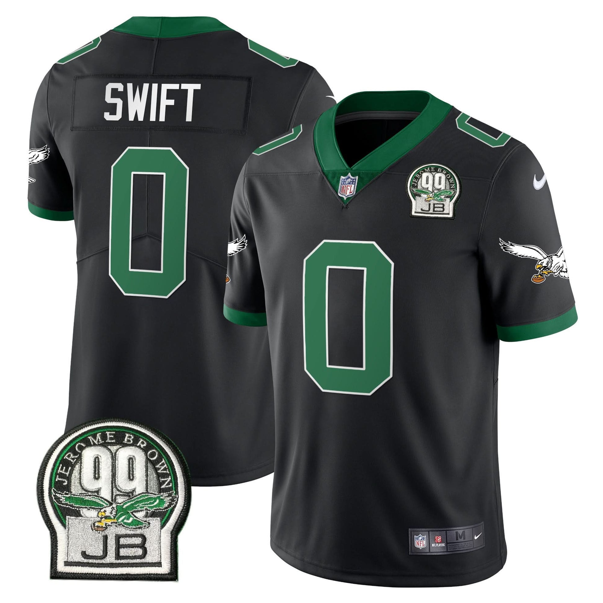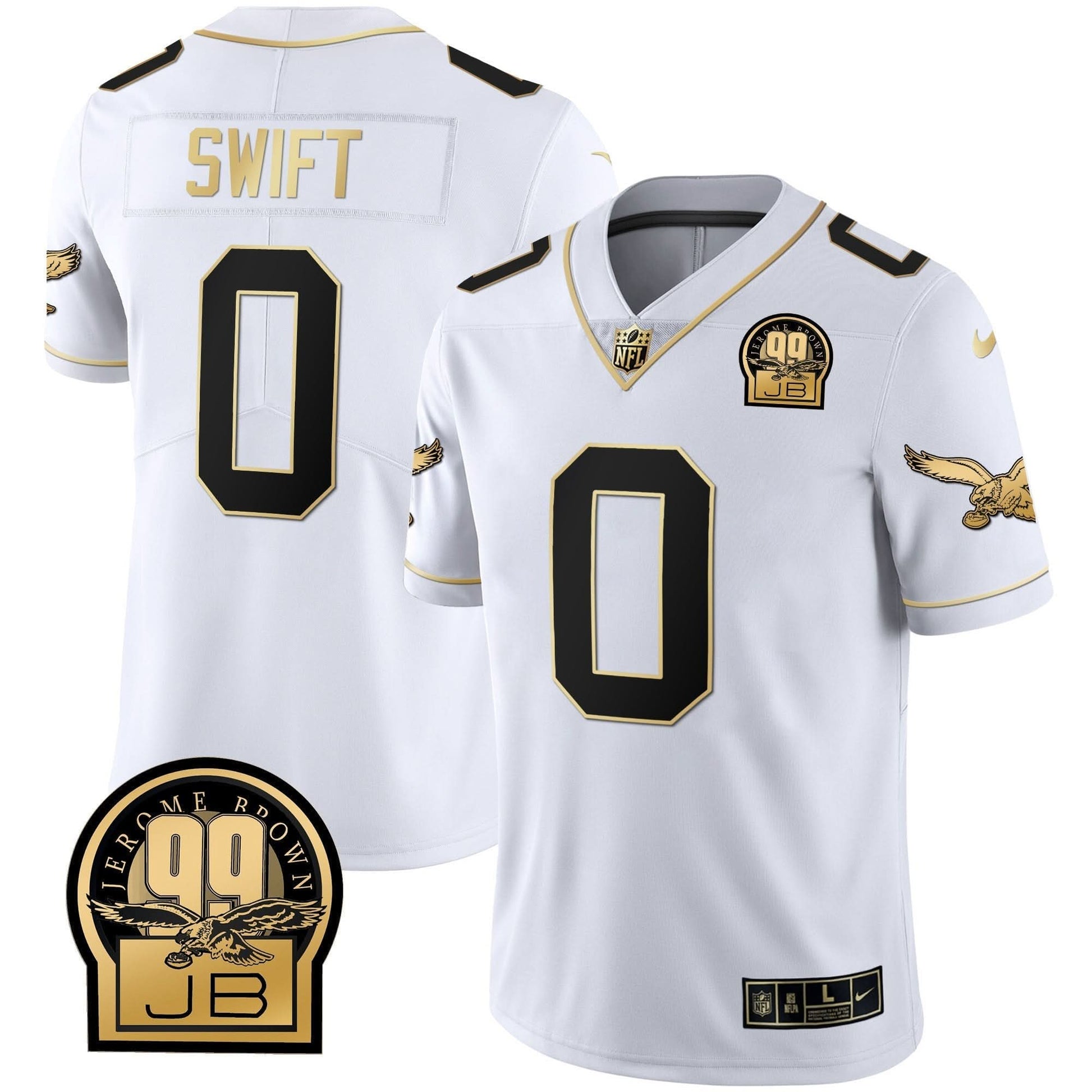 Eagles Jerome Brown Retired Patch Gold & Kelly Jersey - All Stitched