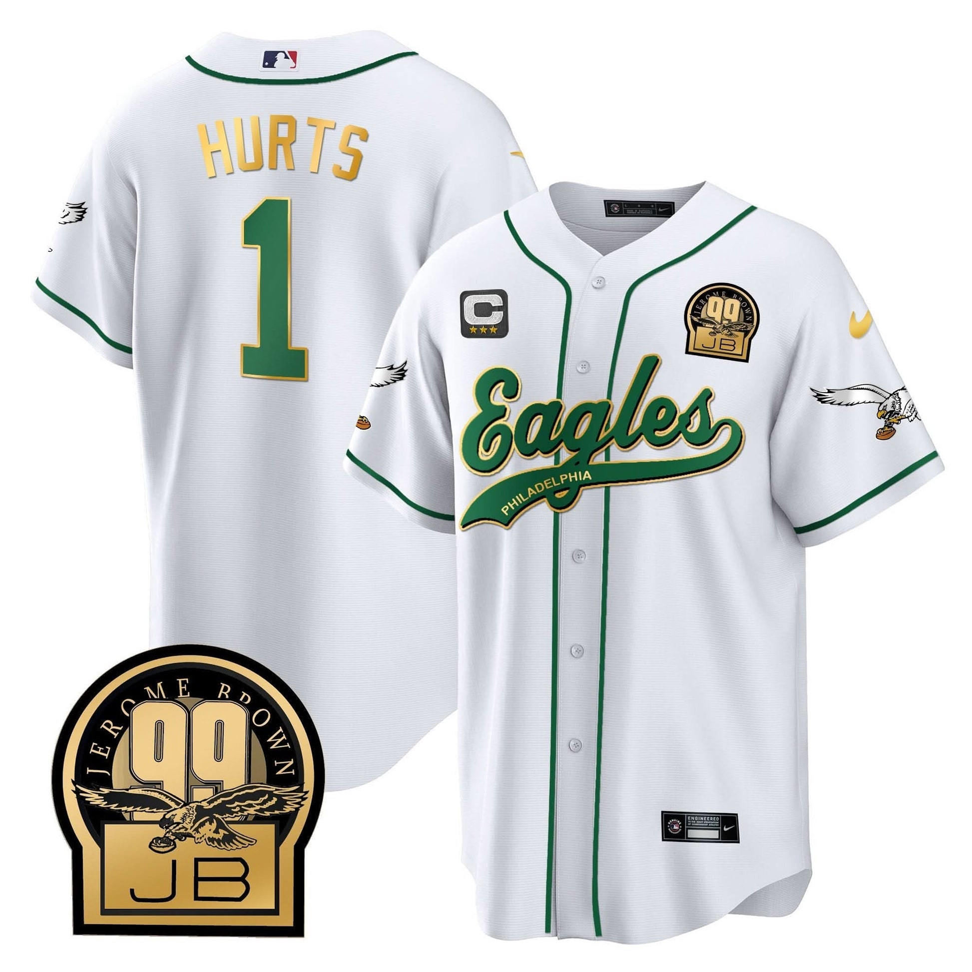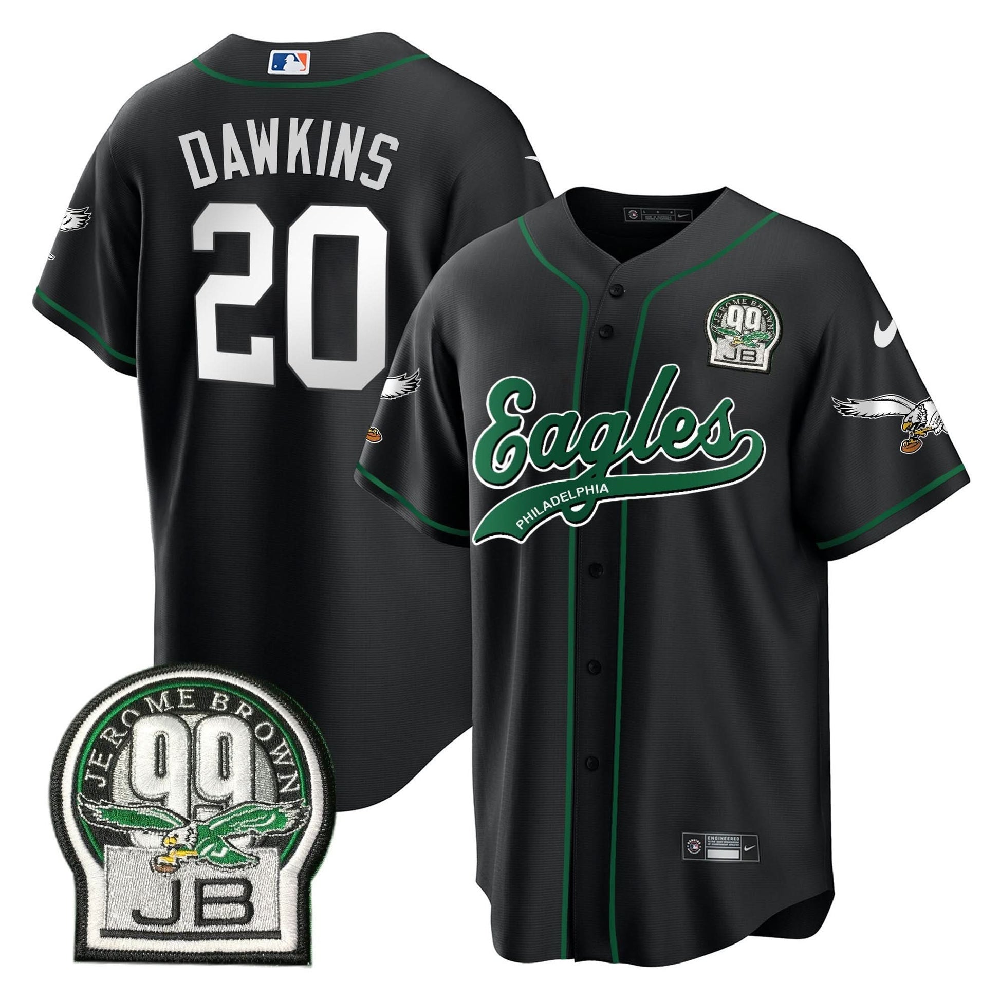 Eagles Jerome Brown Retired Patch Kelly Green Baseball Jersey - All Stitched