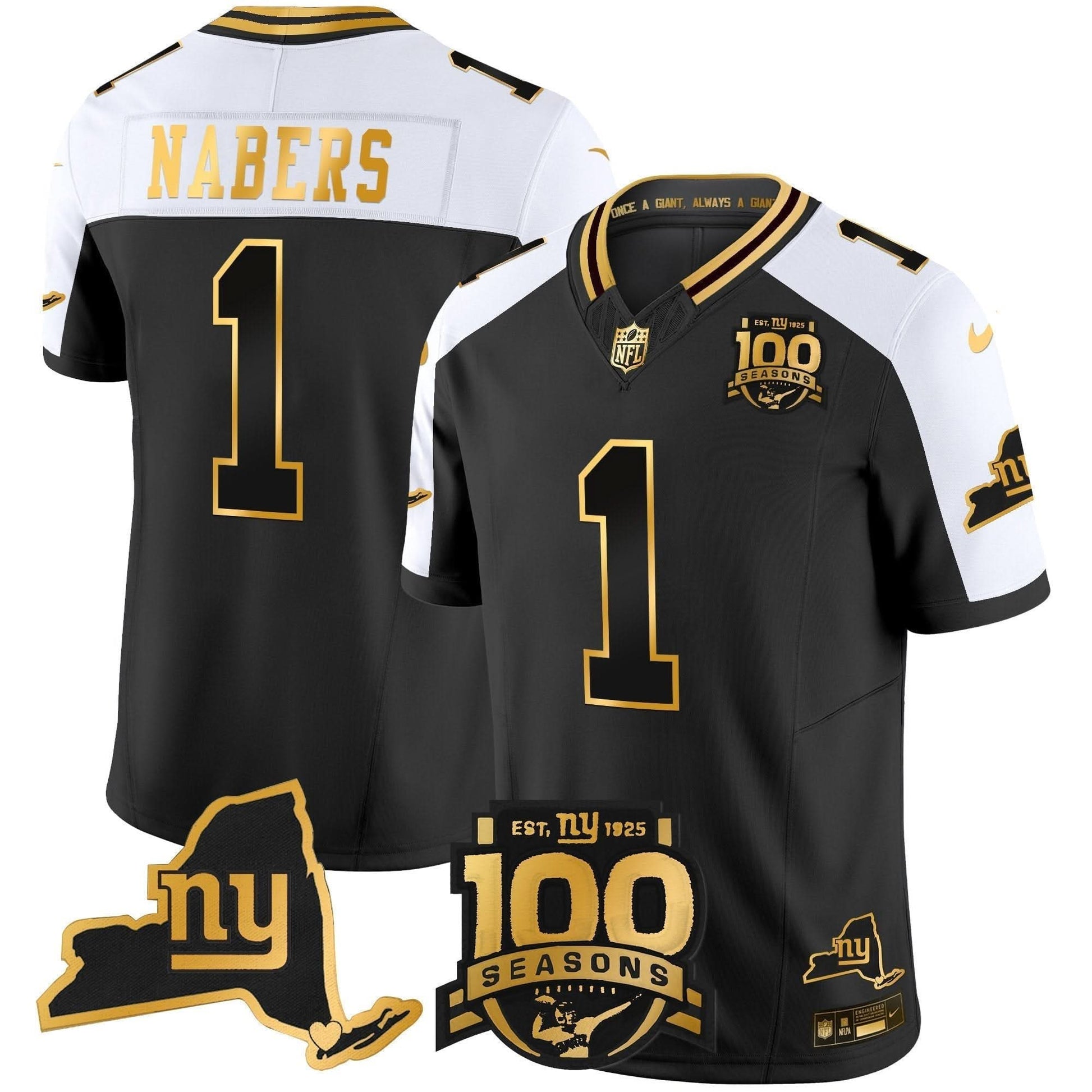 New York Giants 100th Season & State Patch Gold Vapor Limited Jersey - All Stitched