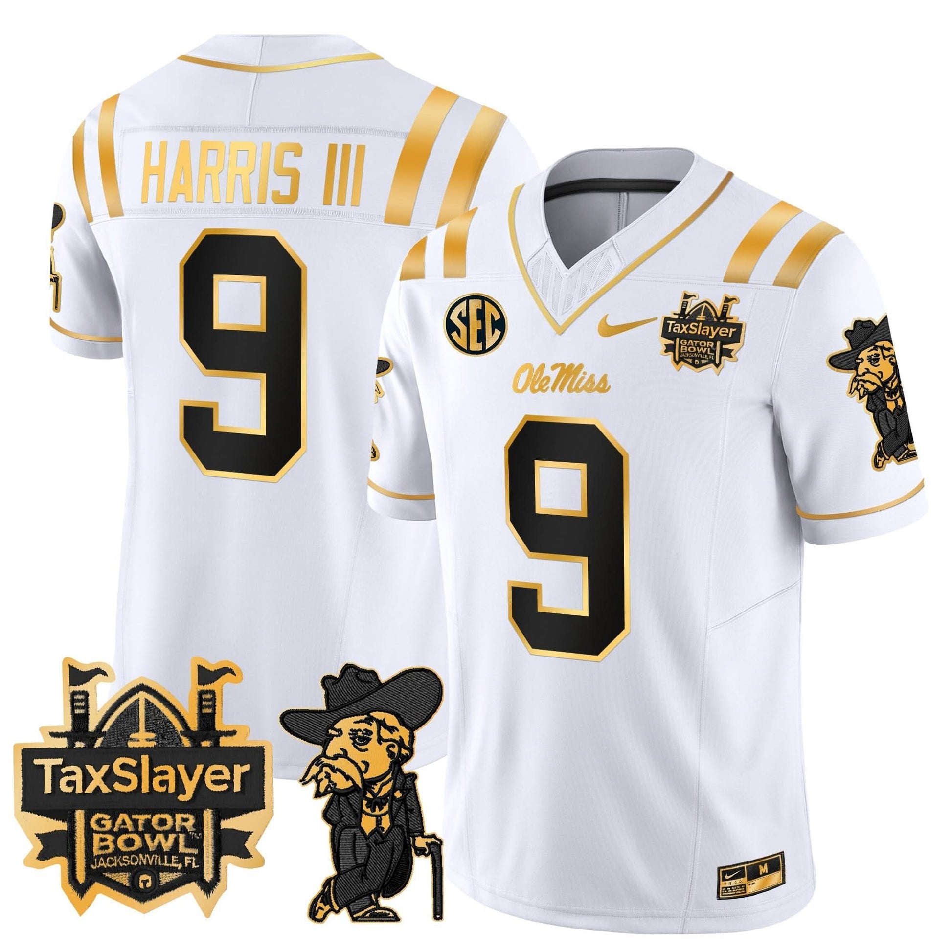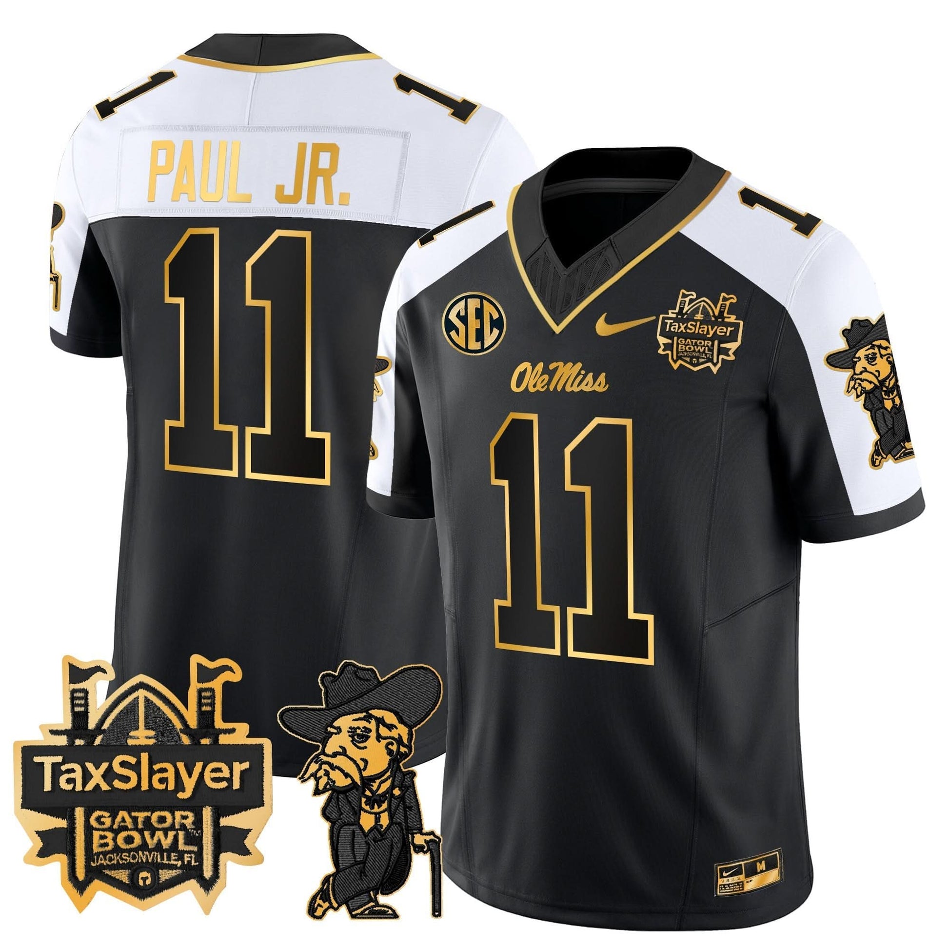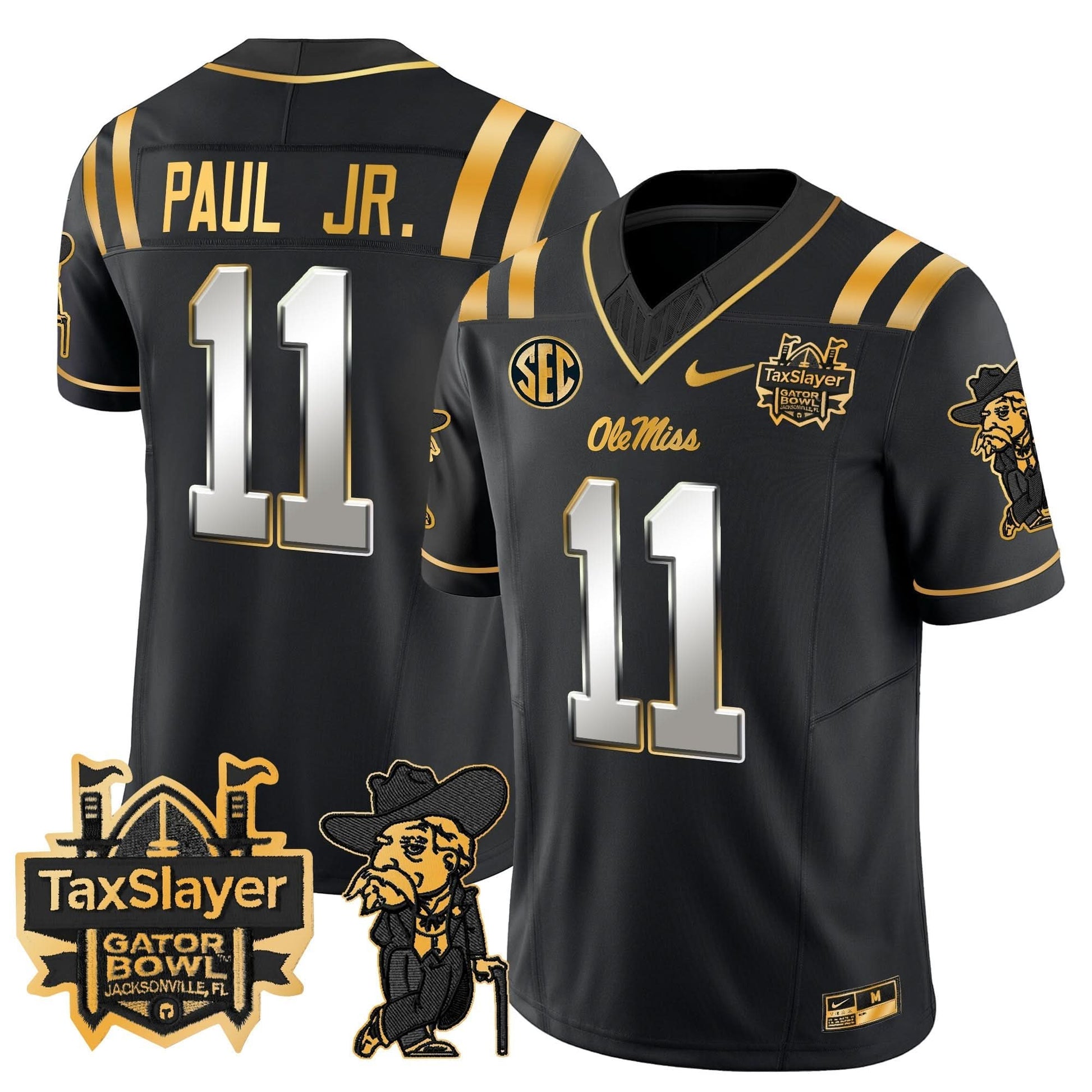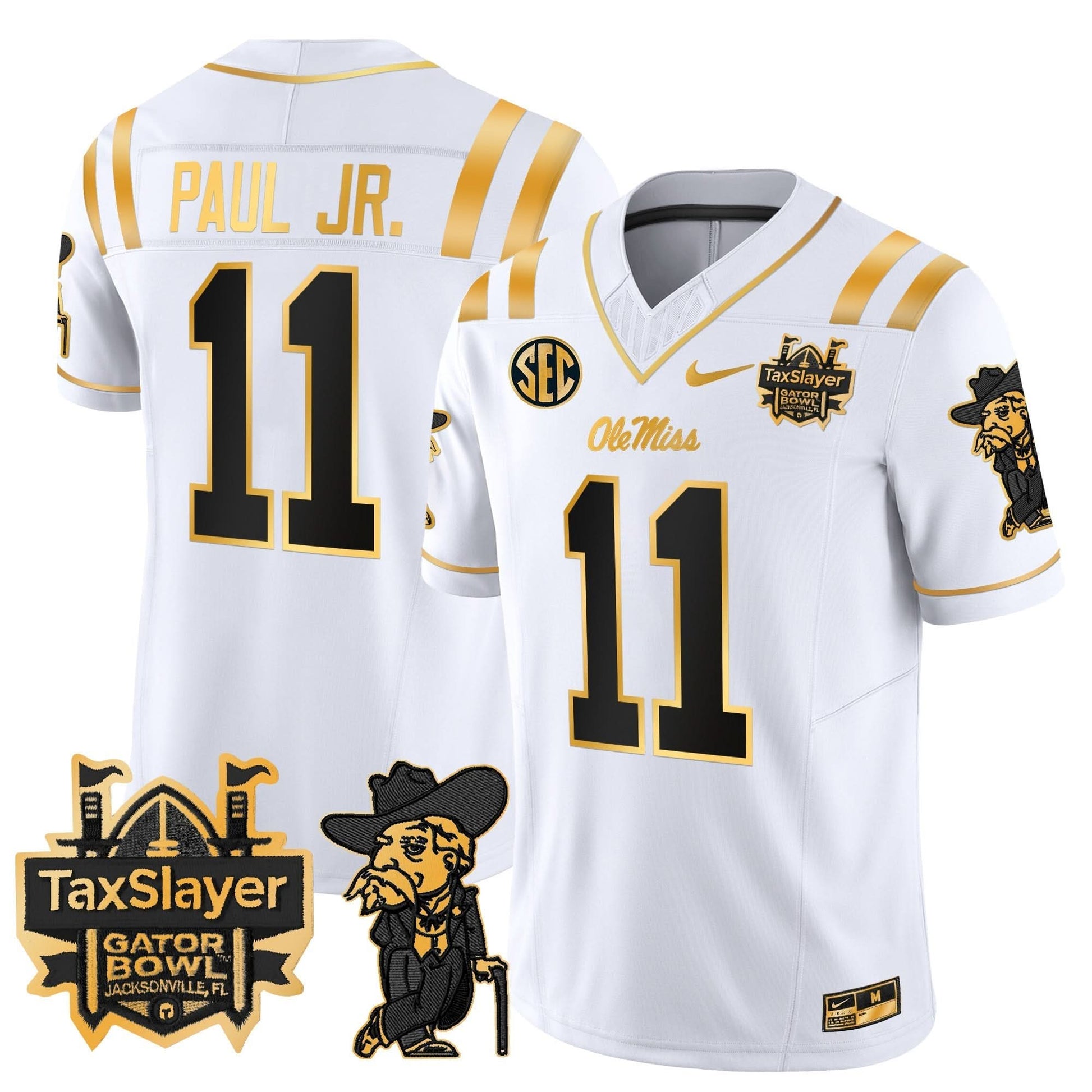Ole Miss Rebels 2024 Gator Bowl Patch Gold Vapor Limited Jersey - All Stitched