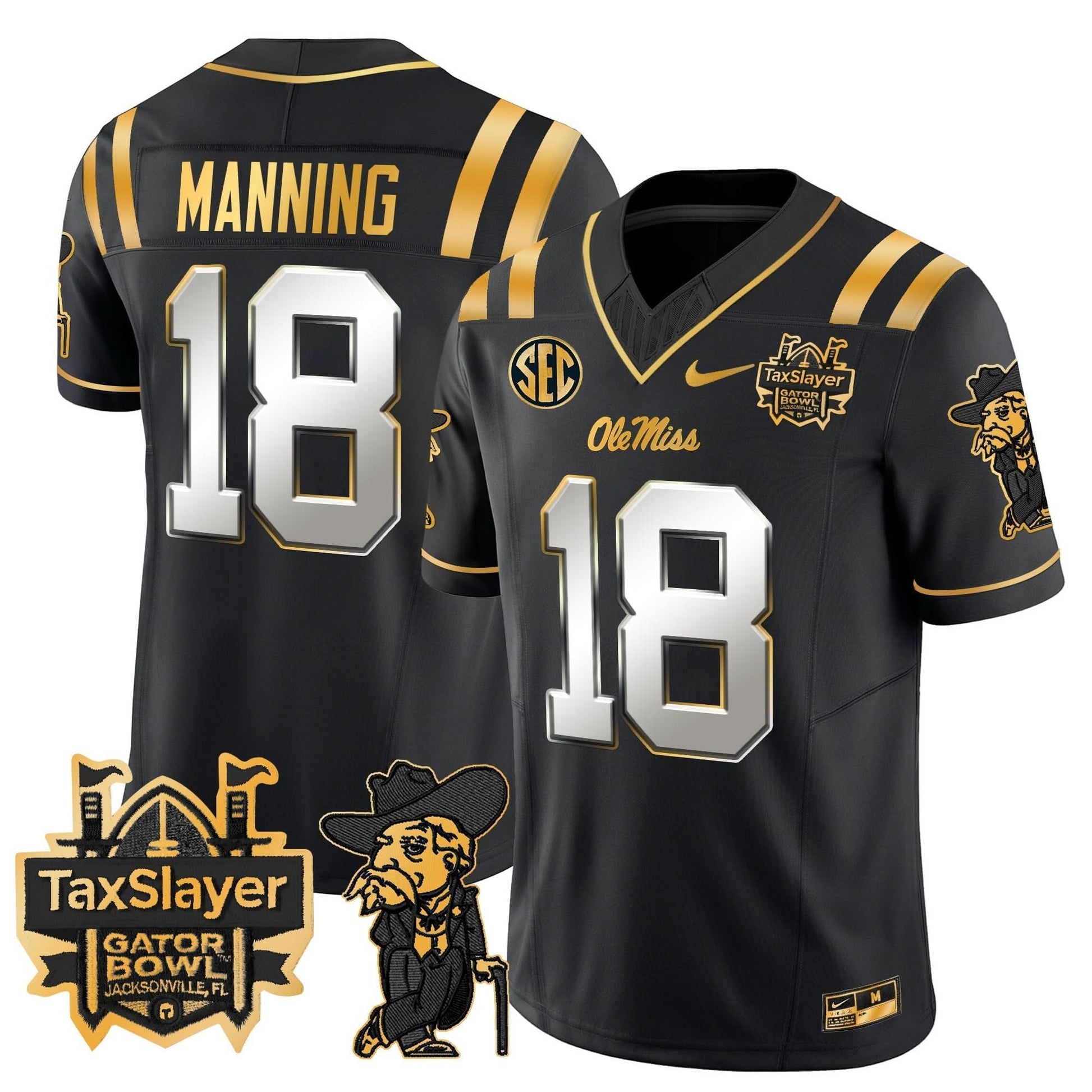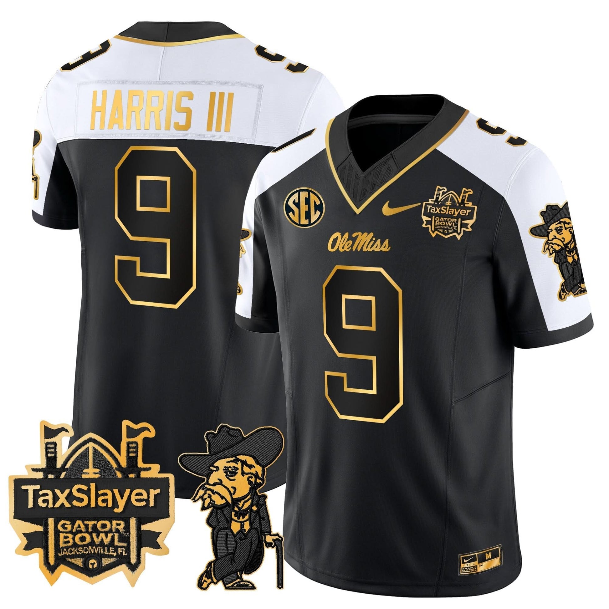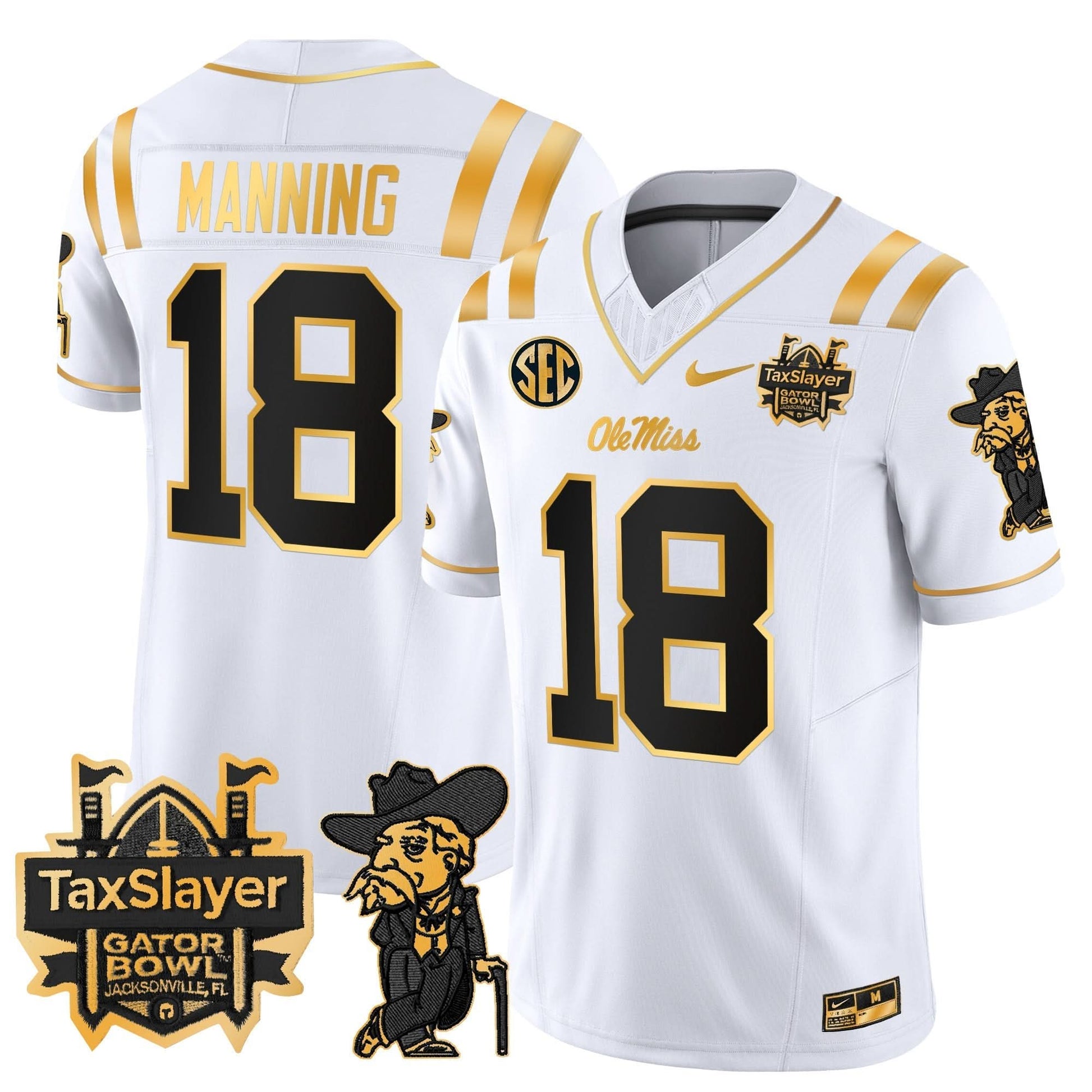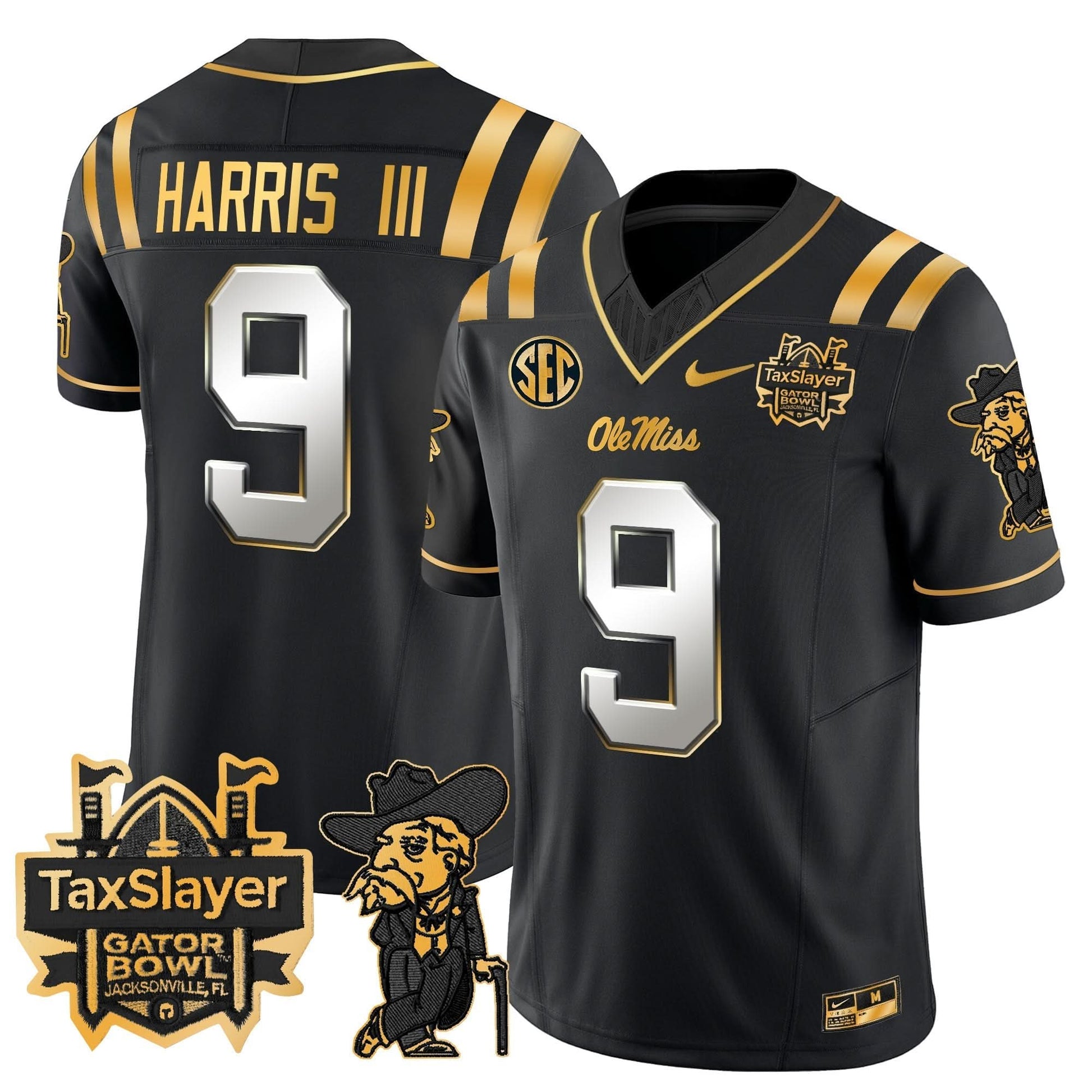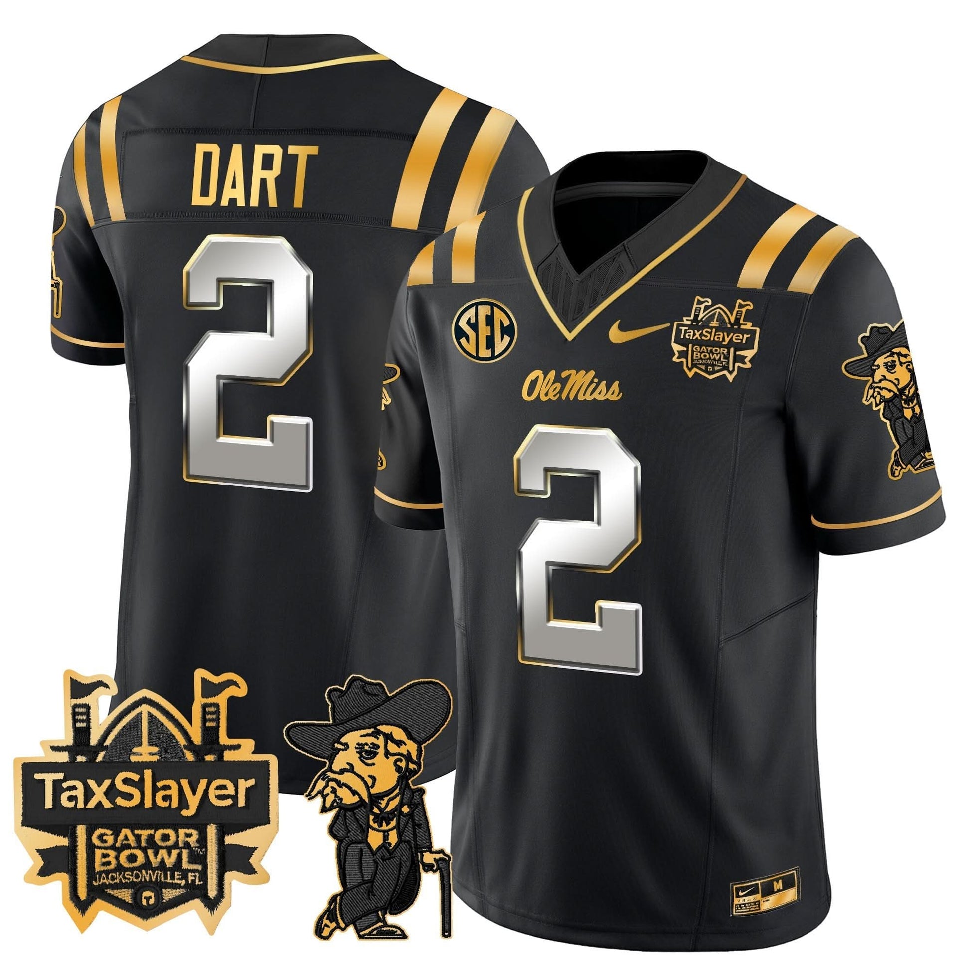 Ole Miss Rebels 2024 Gator Bowl Patch Gold Vapor Limited Jersey - All Stitched