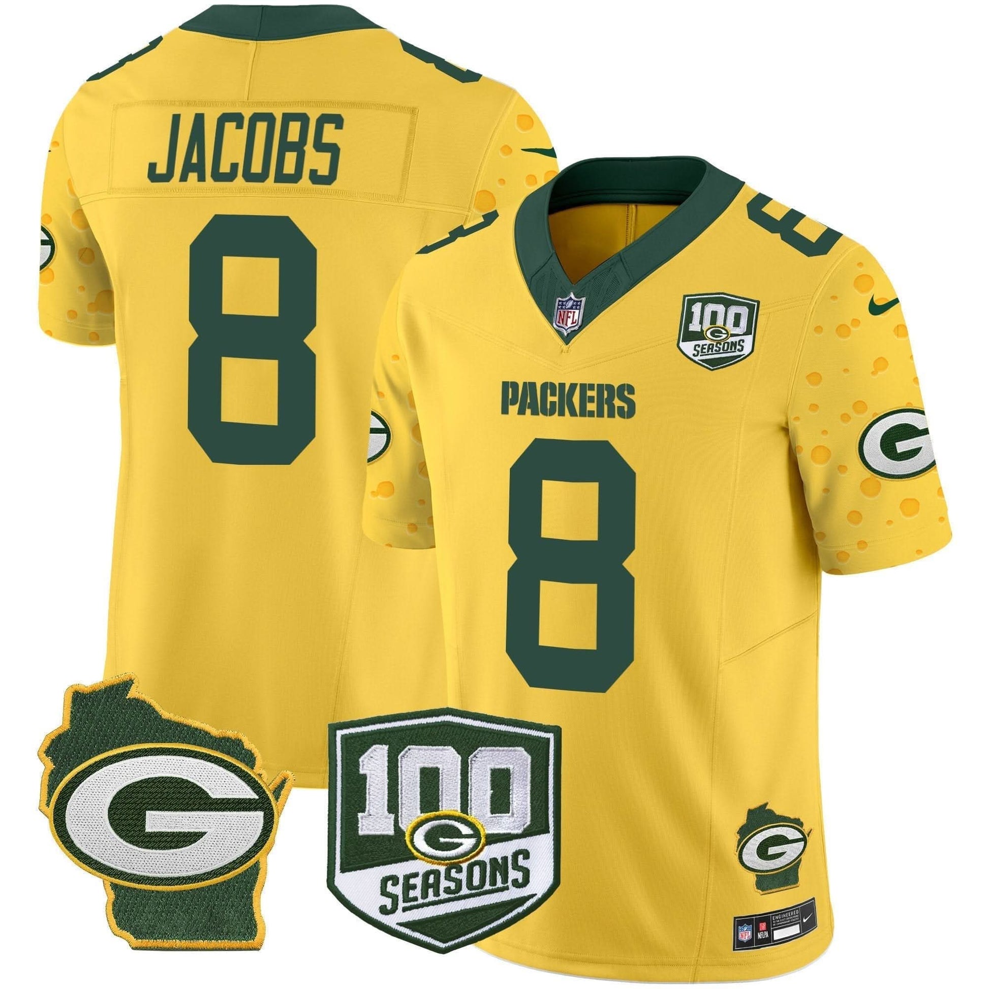 Packers 100th Season & Home Patch Cheese Vapor Limited Jersey - All Stitched