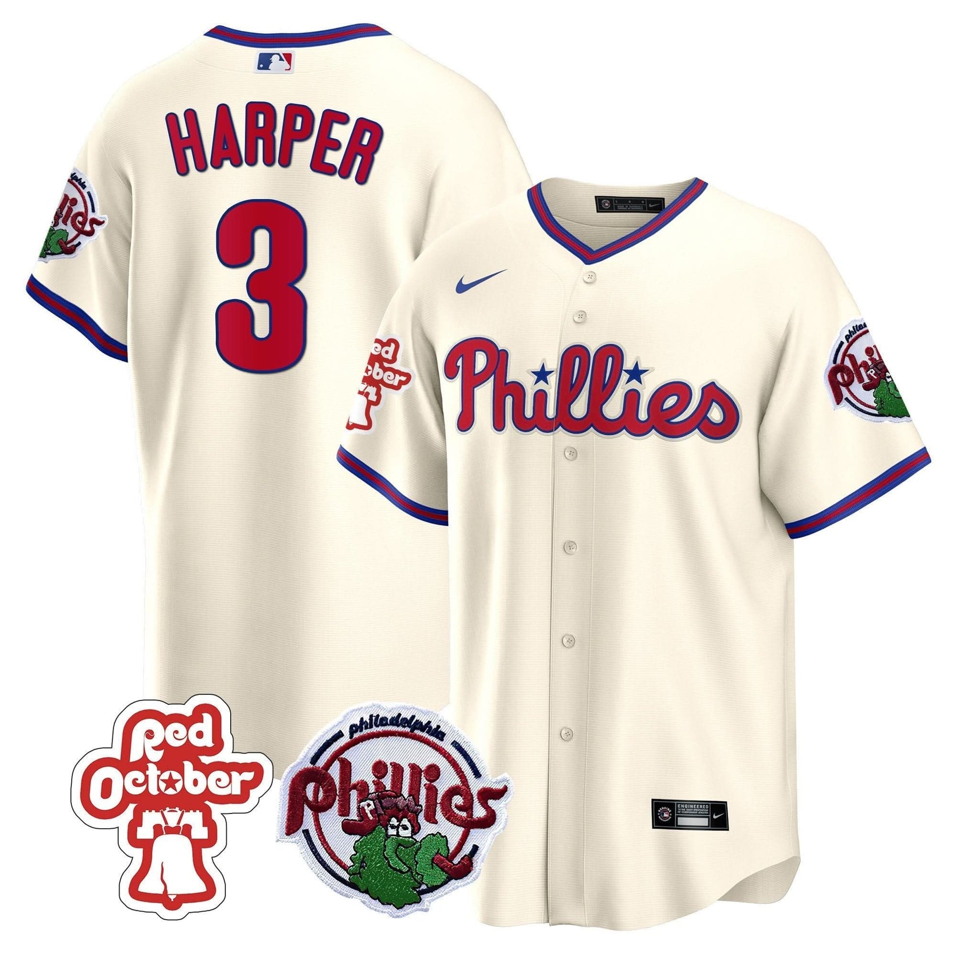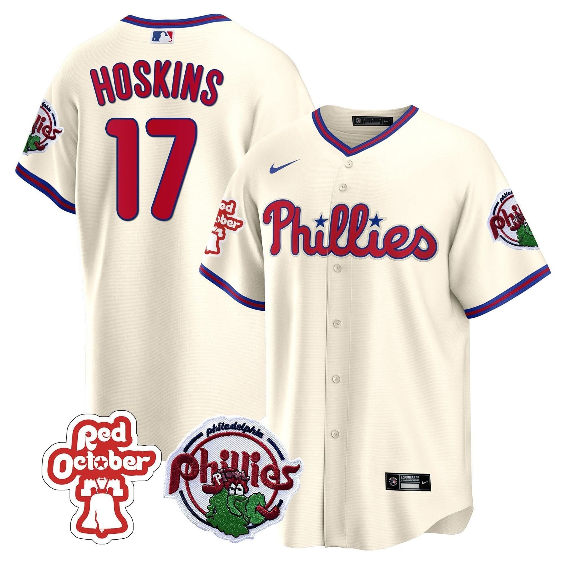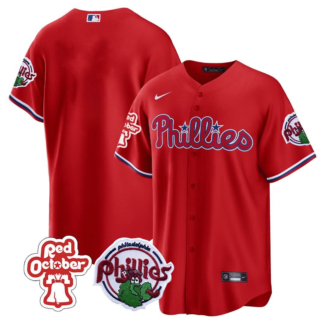 Philadelphia Phillies Red October Patch Cool Base Jersey - All Stitched