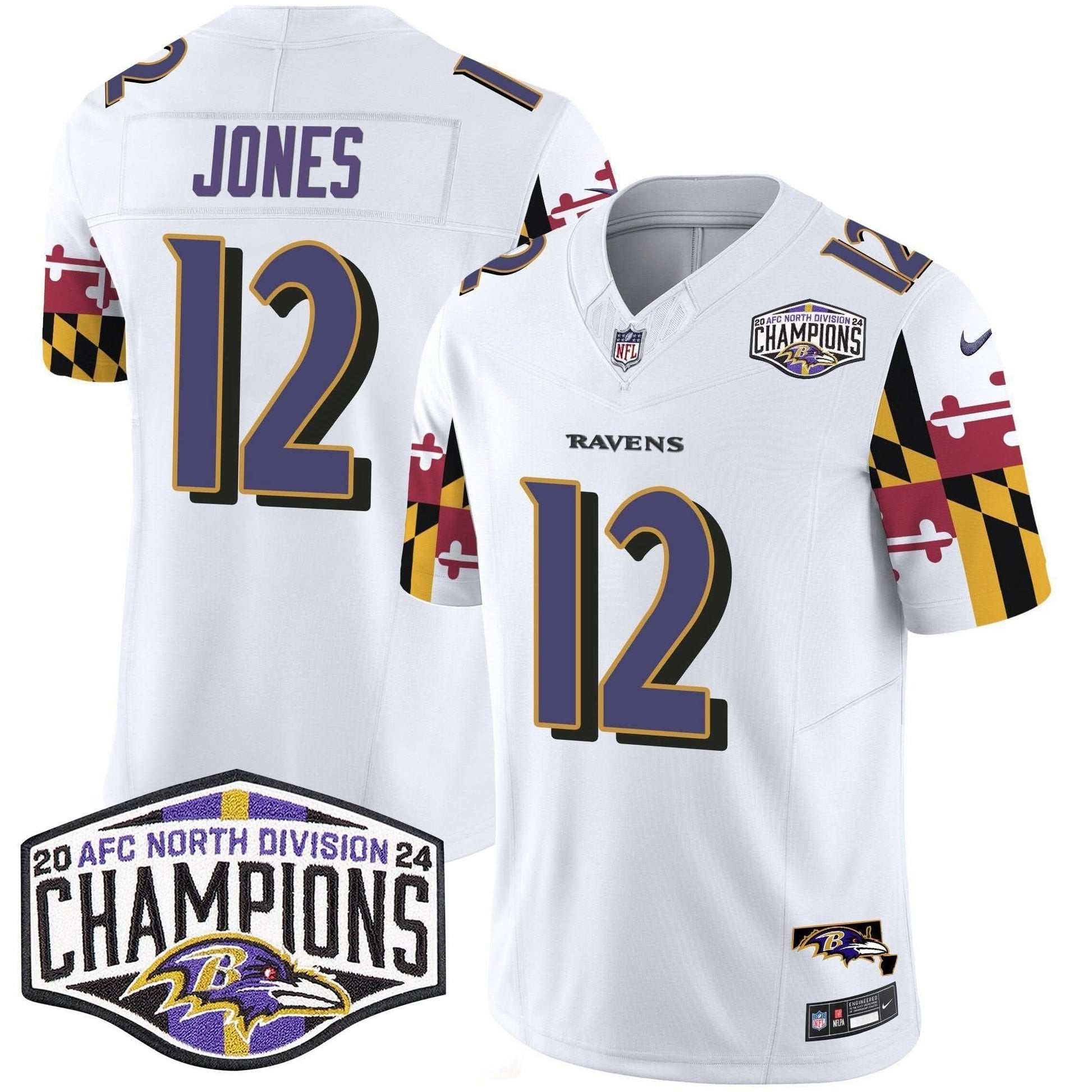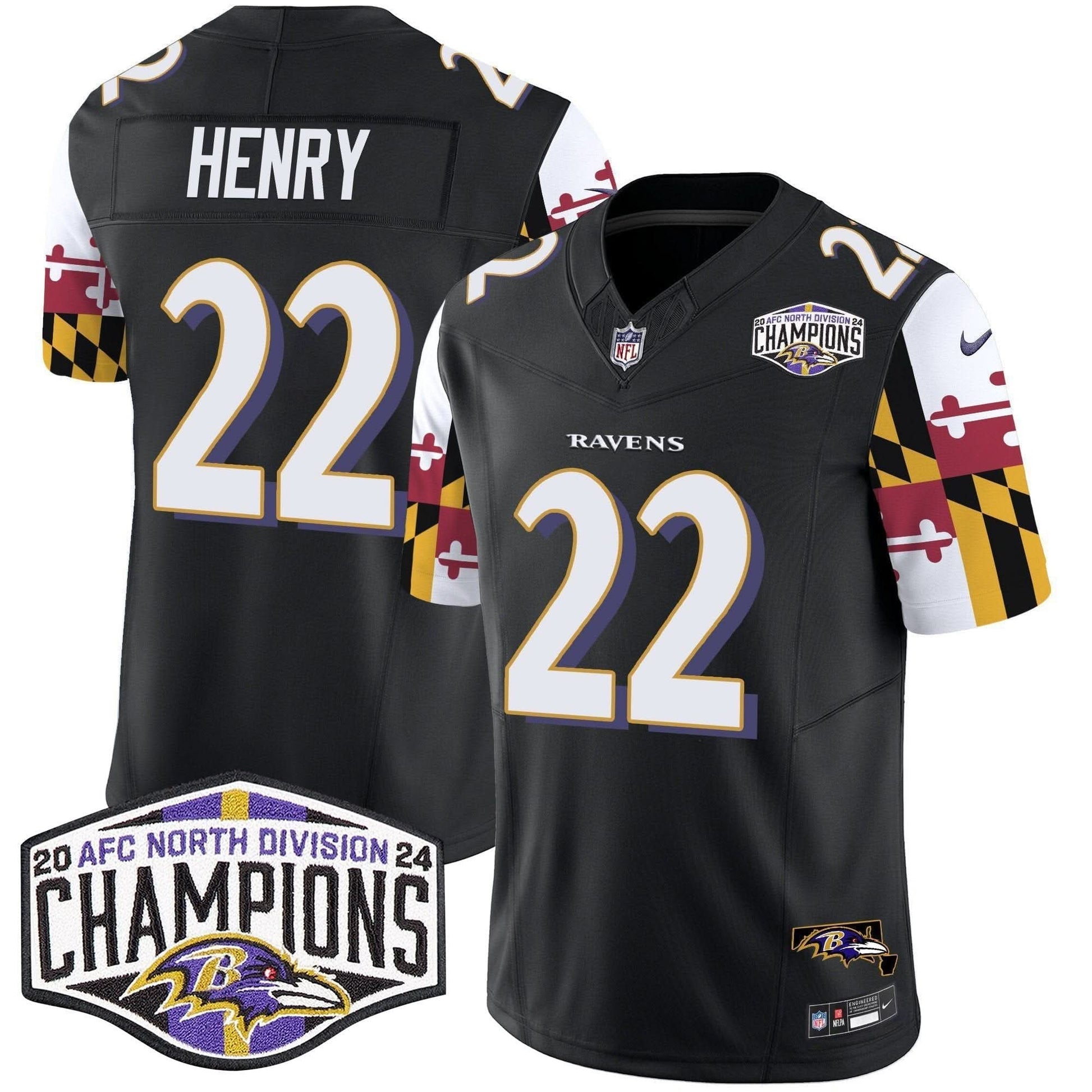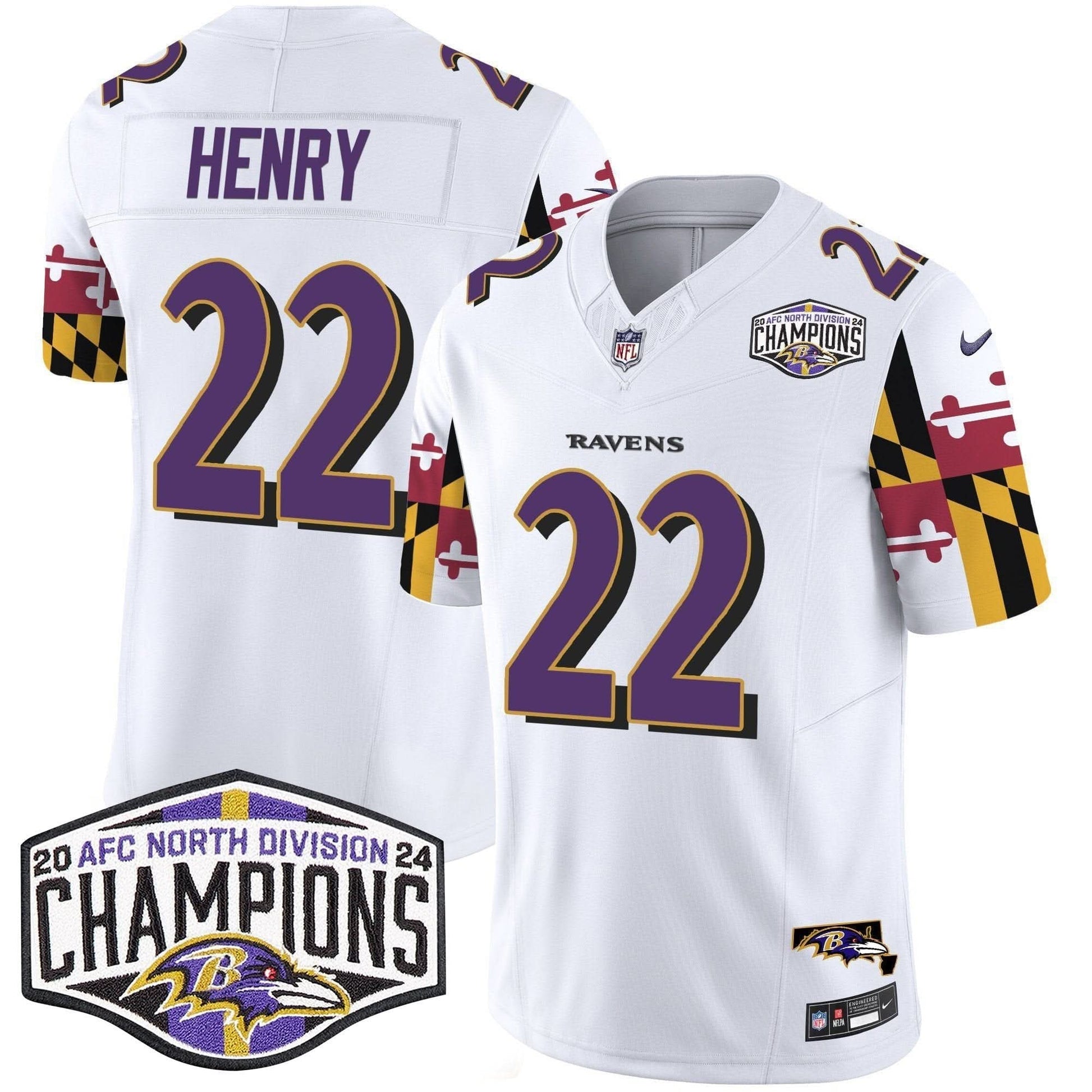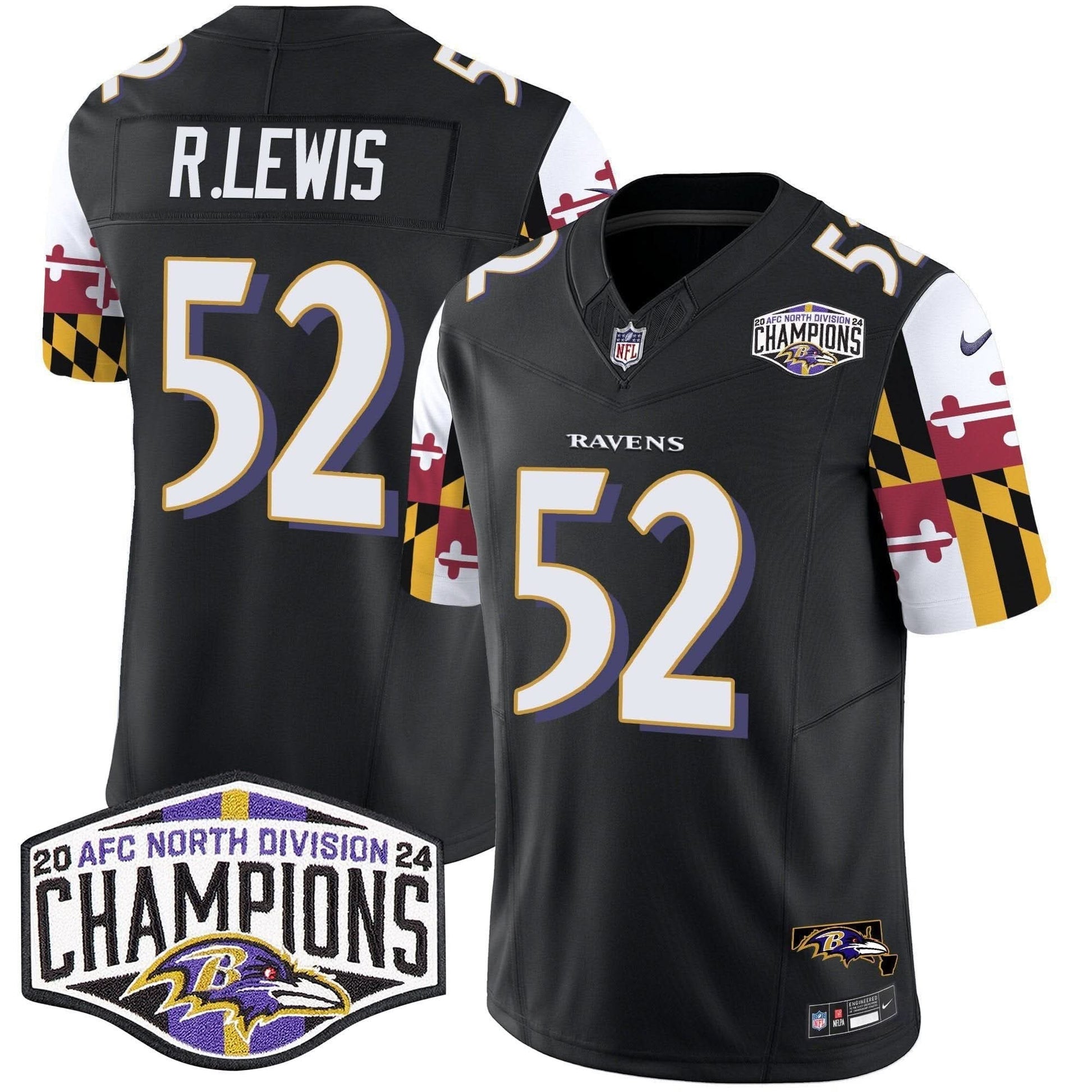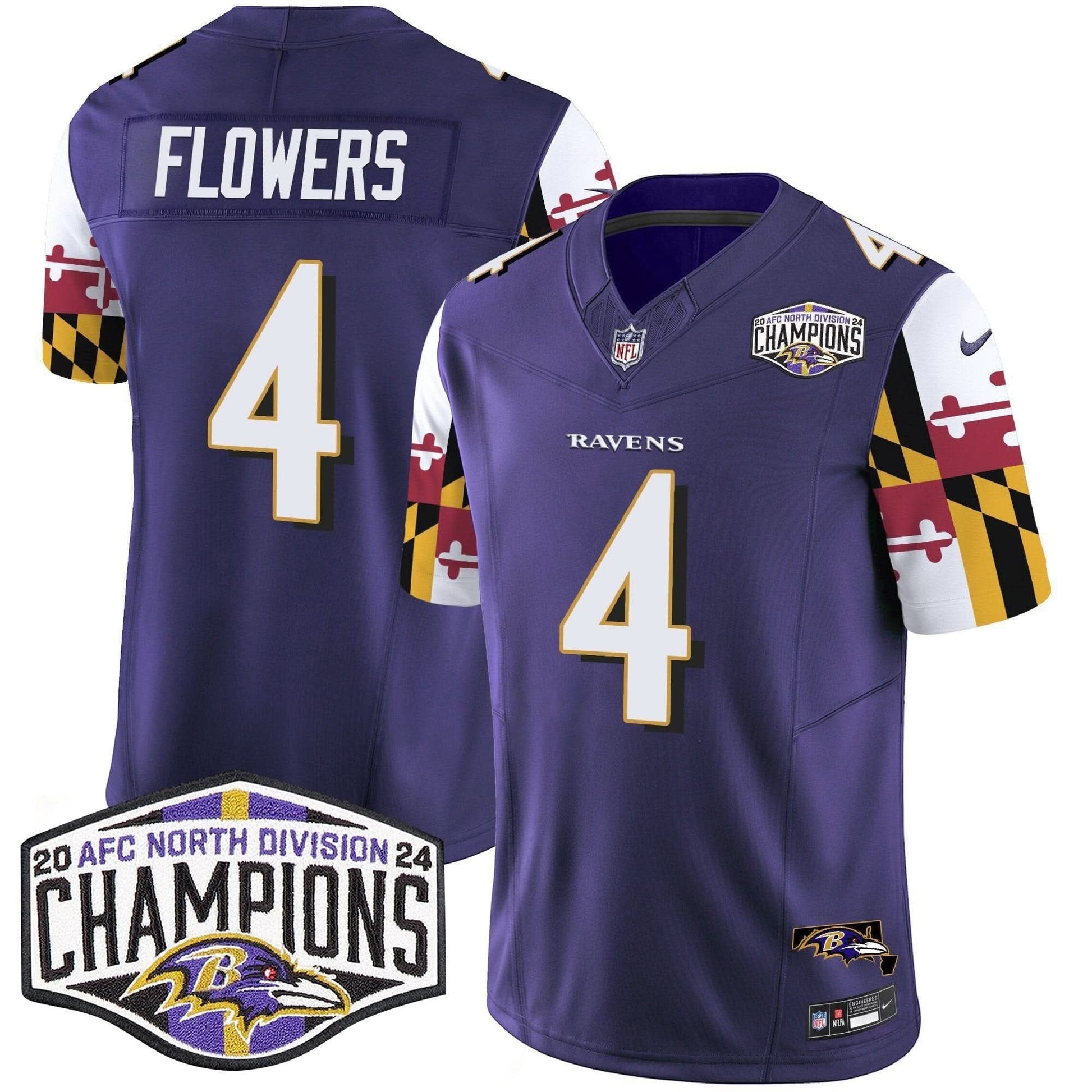 Ravens Maryland Flag 2024 AFC North Division Champions Patch Vapor Limited Jersey - All Stitched