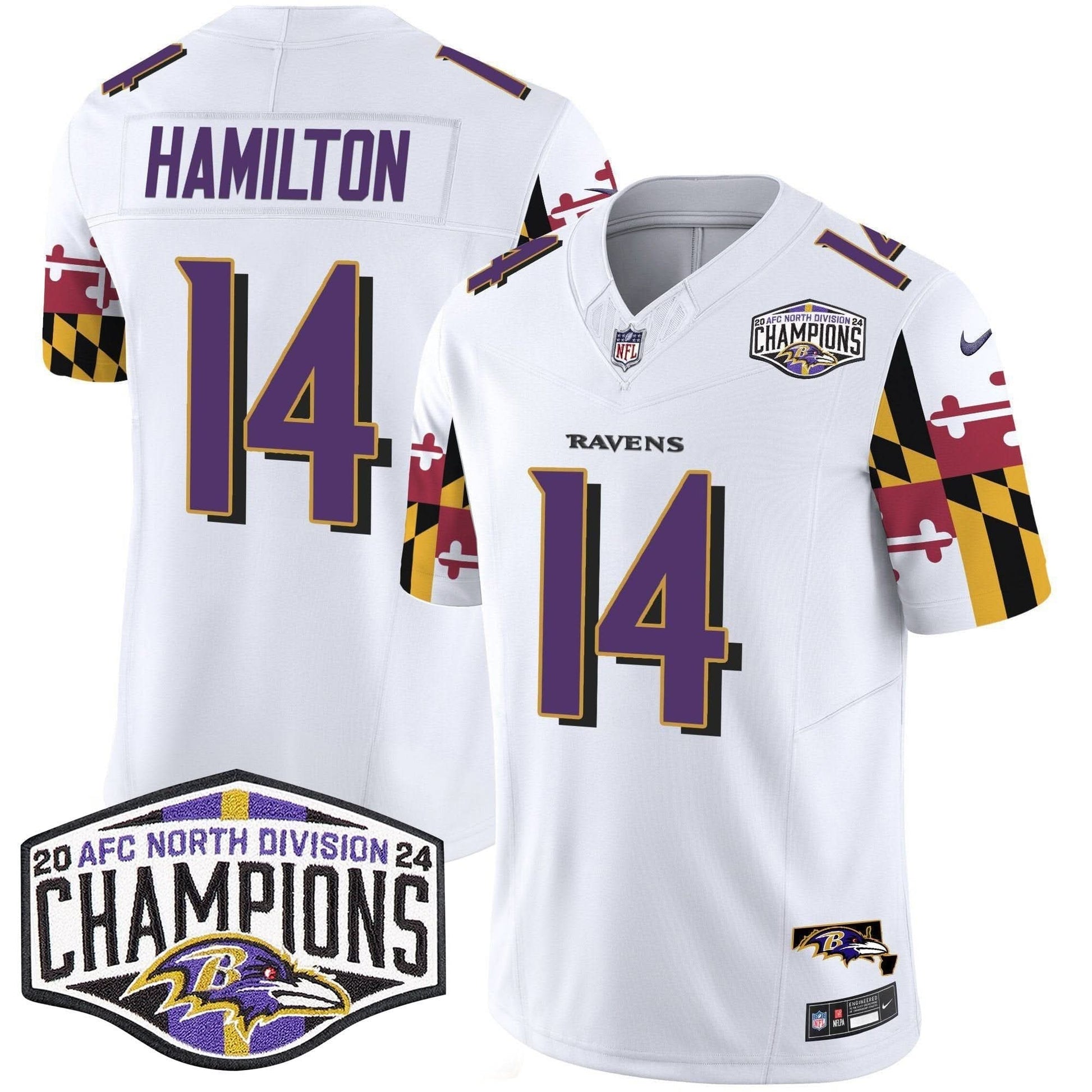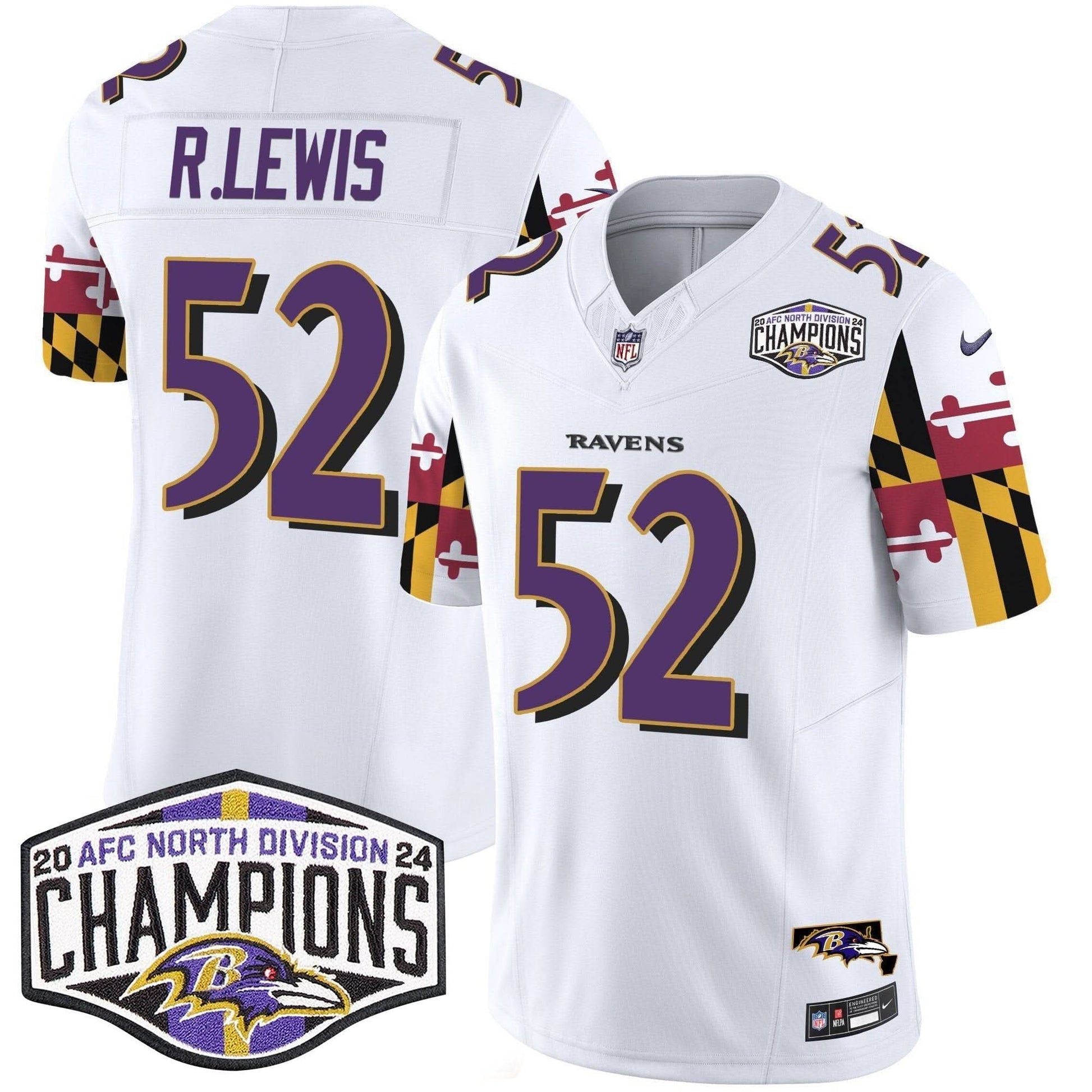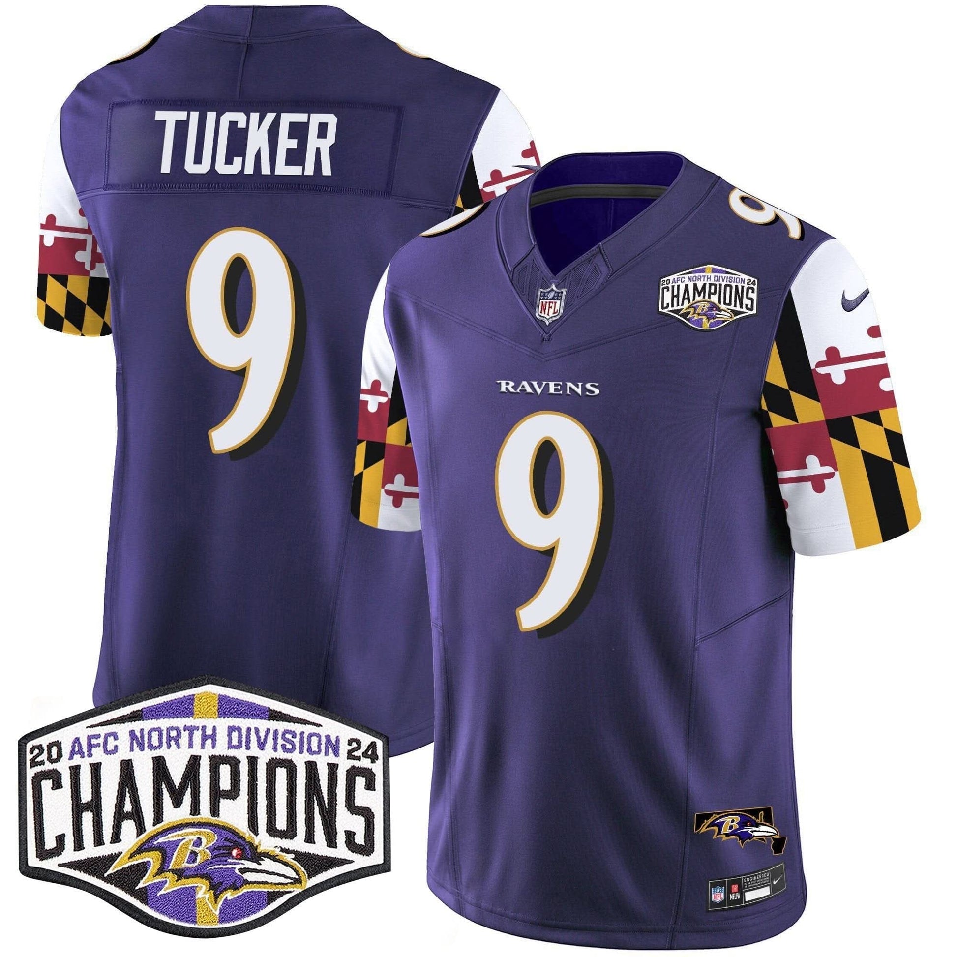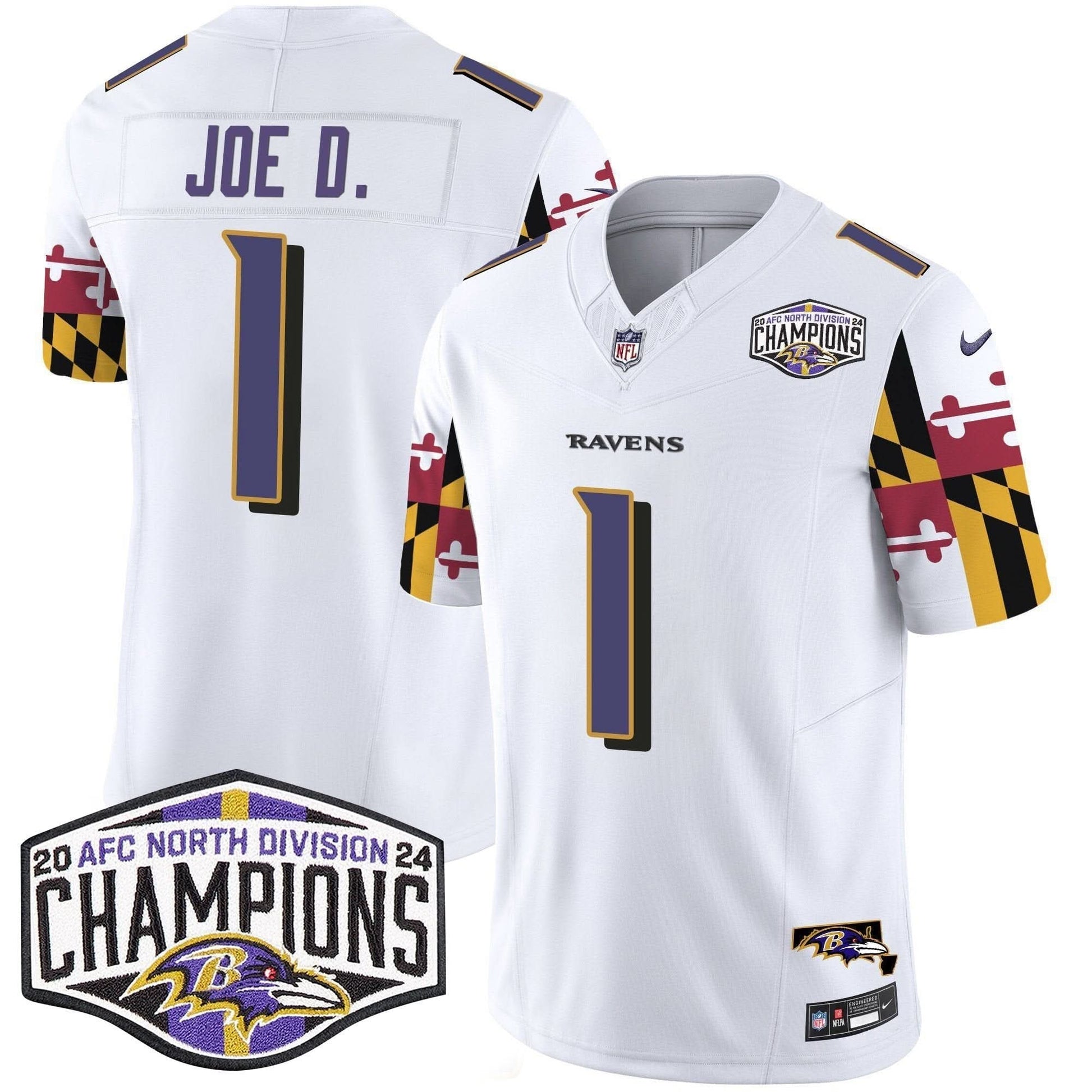 Ravens Maryland Flag 2024 AFC North Division Champions Patch Vapor Limited Jersey - All Stitched