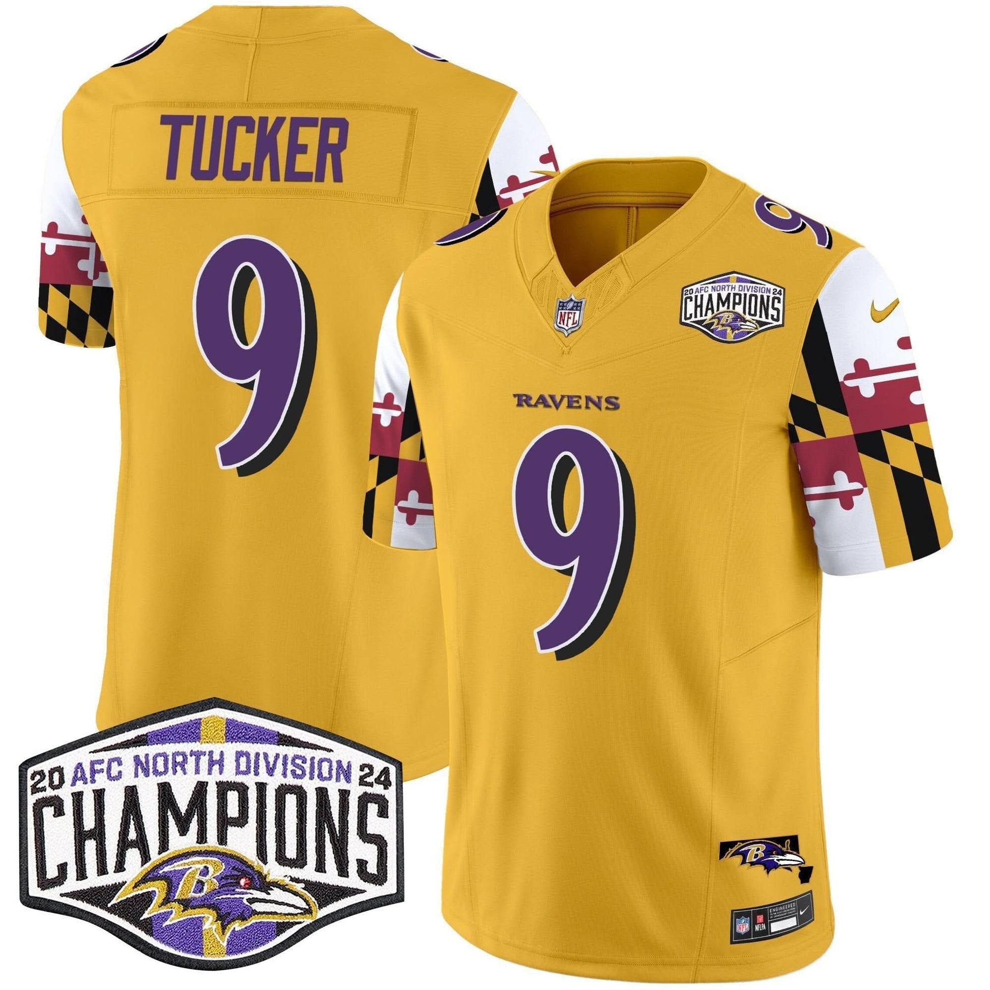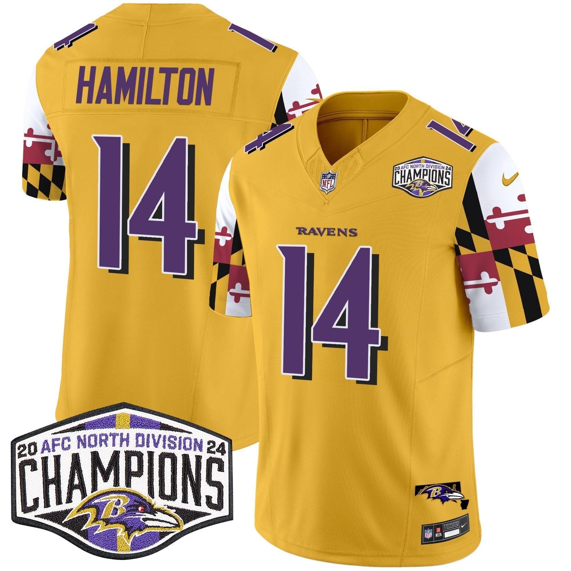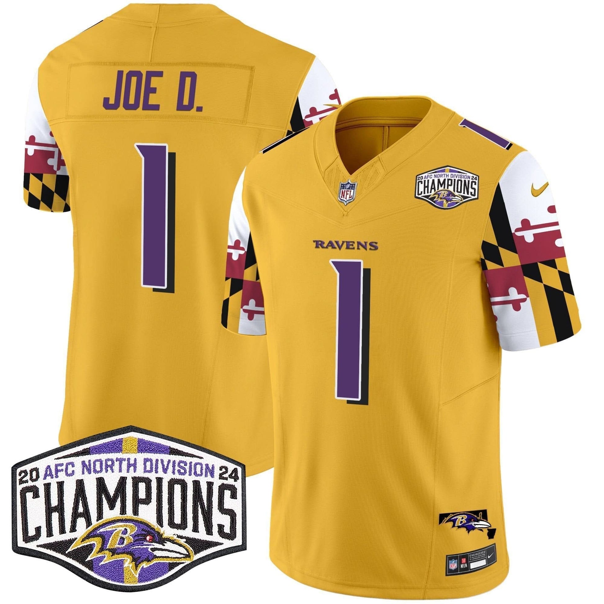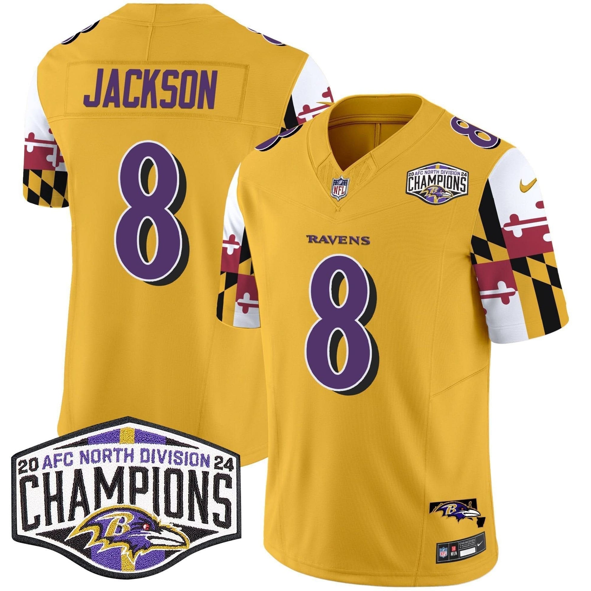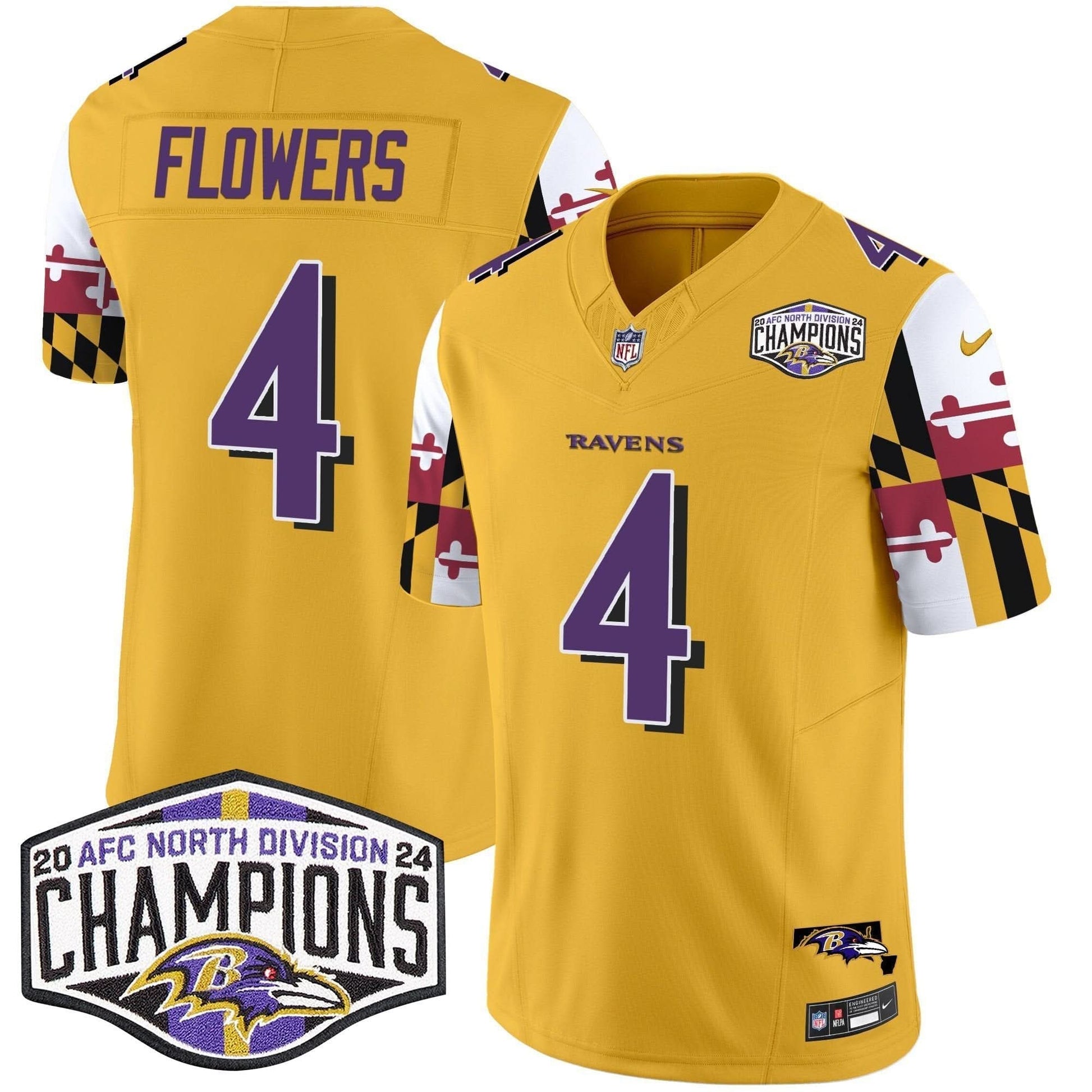 Ravens Maryland Flag 2024 AFC North Division Champions Patch Vapor Limited Jersey - All Stitched
