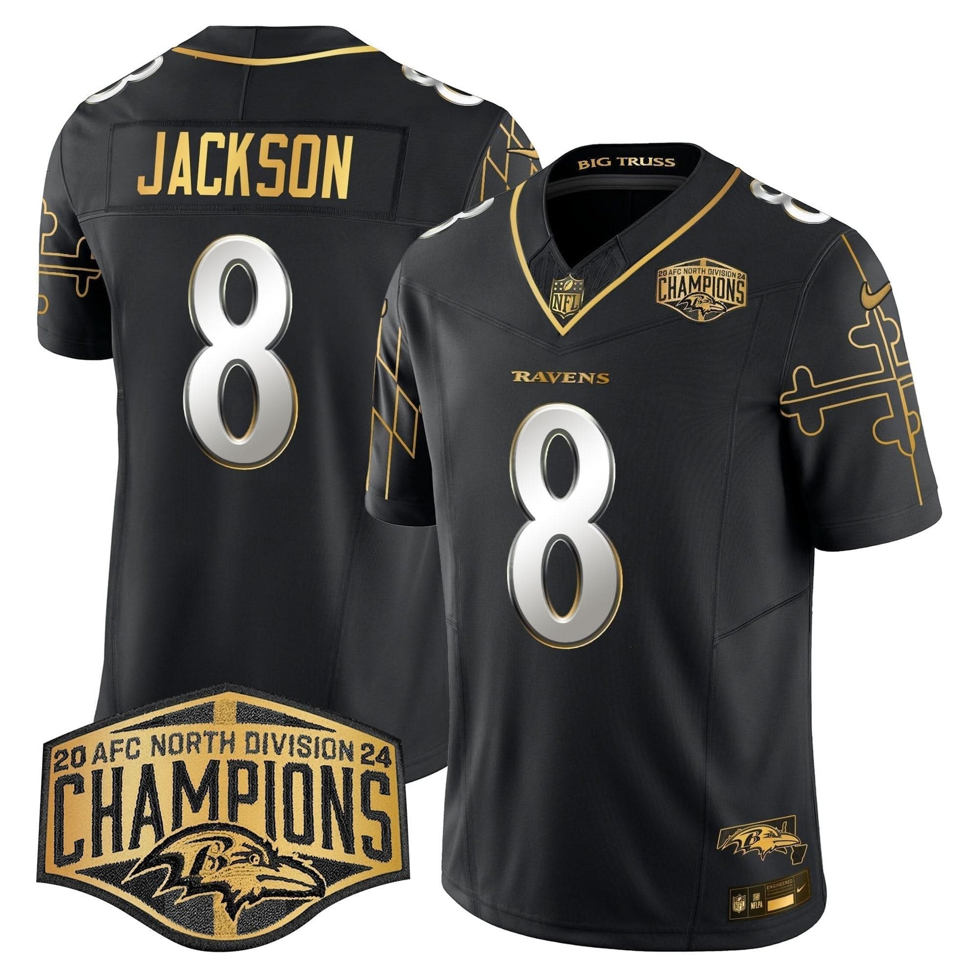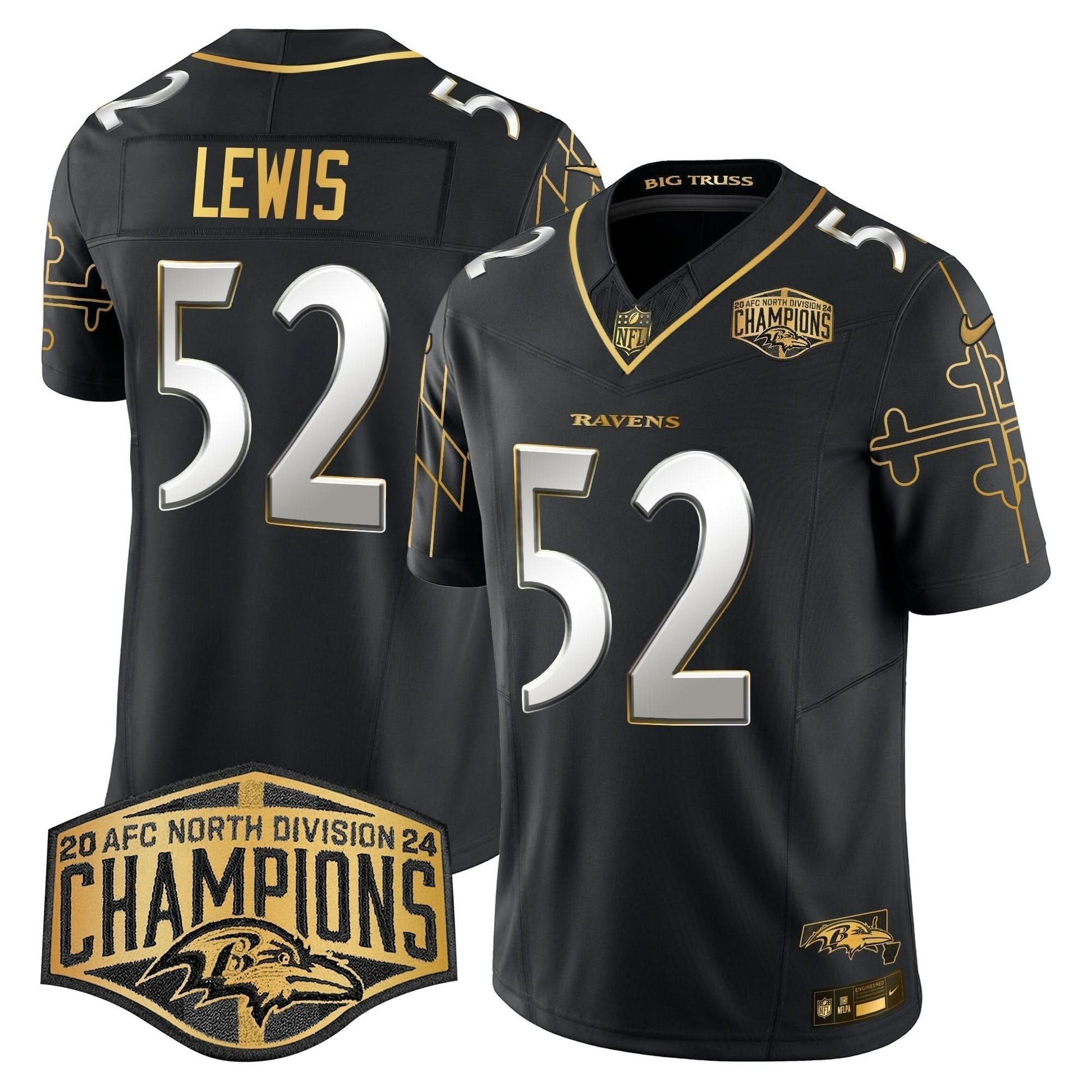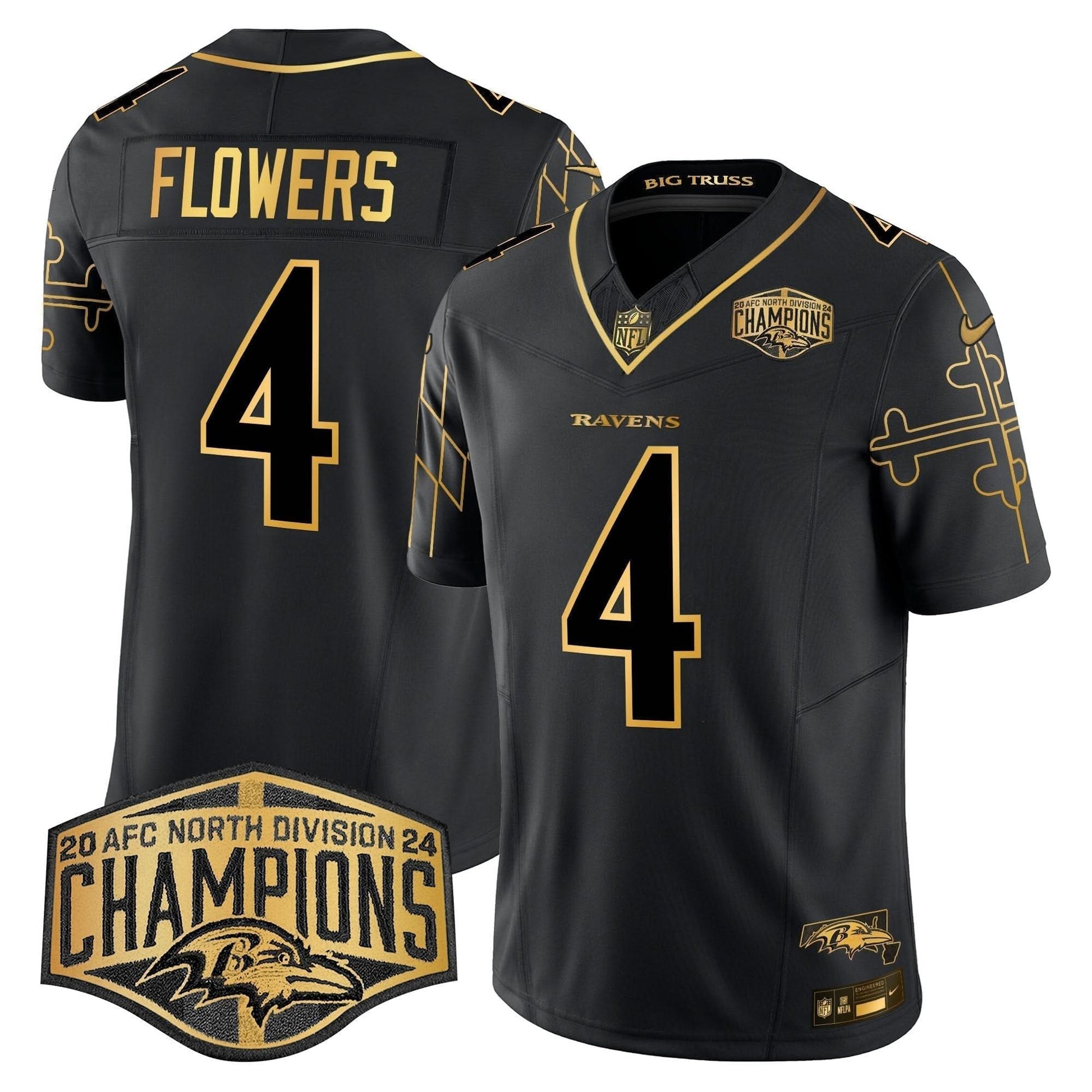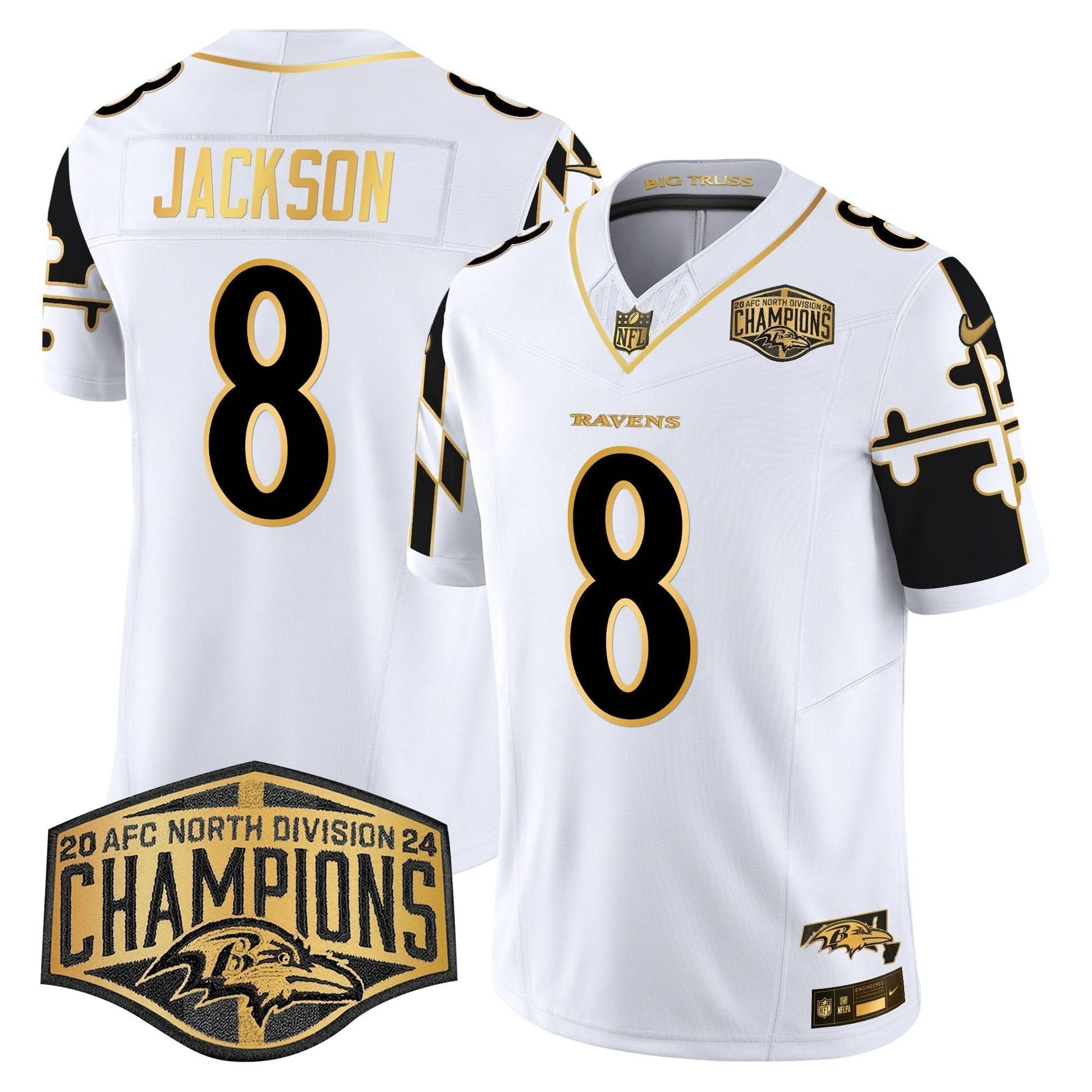 Ravens Maryland Flag Map 2024 AFC North Division Champions Patch Gold Vapor Limited Jersey - All Stitched