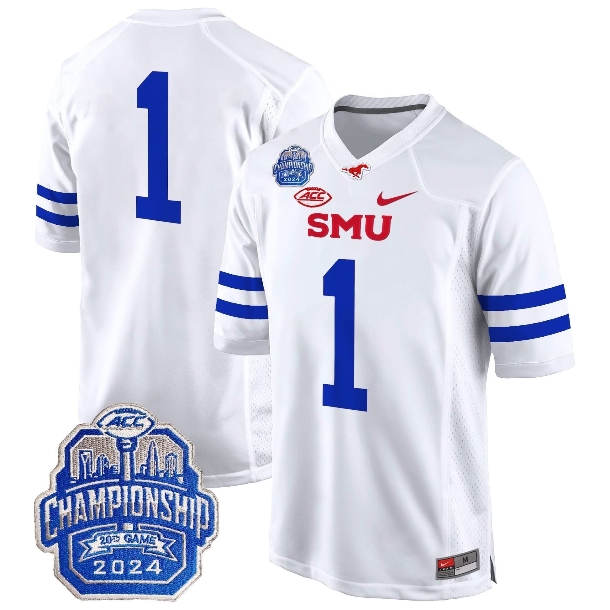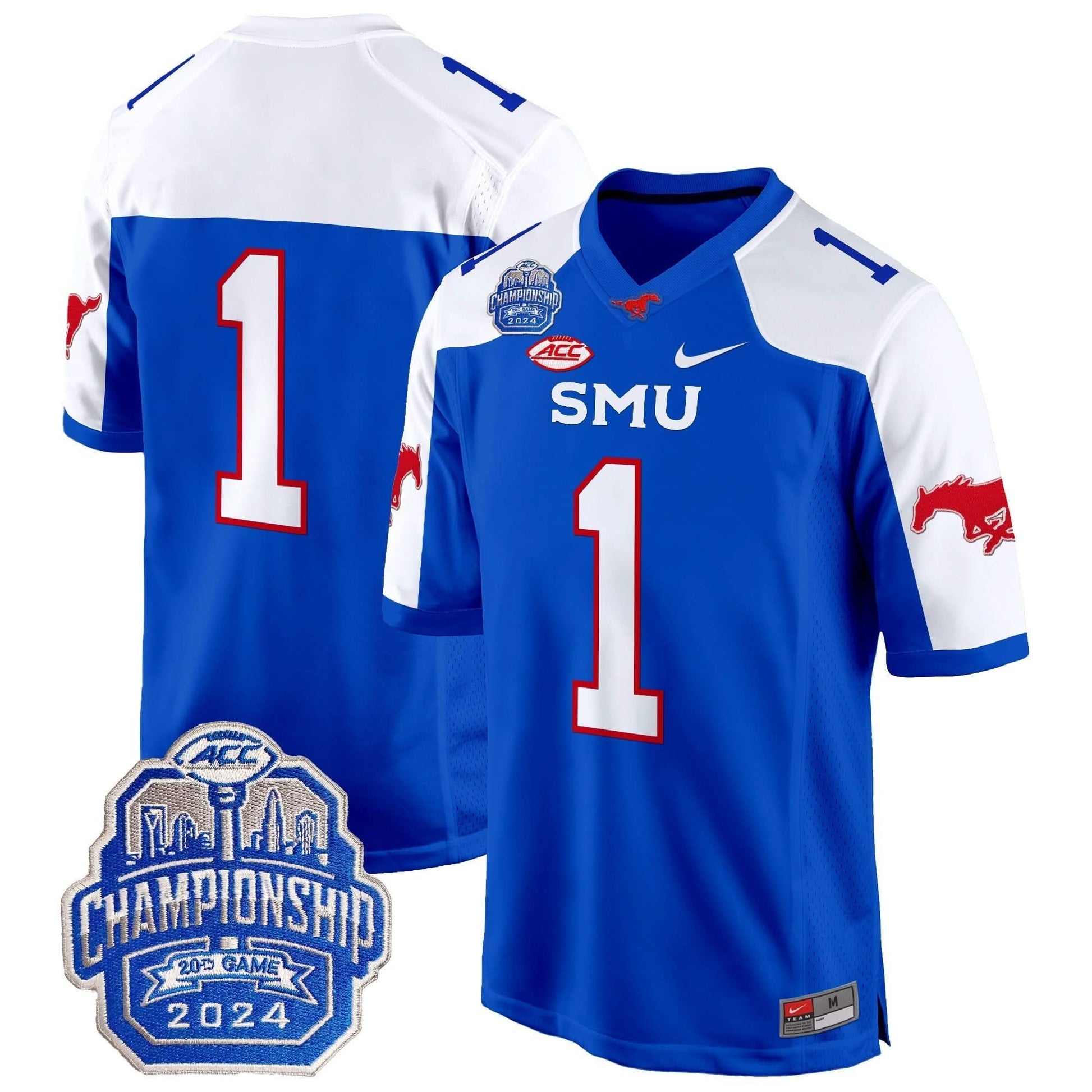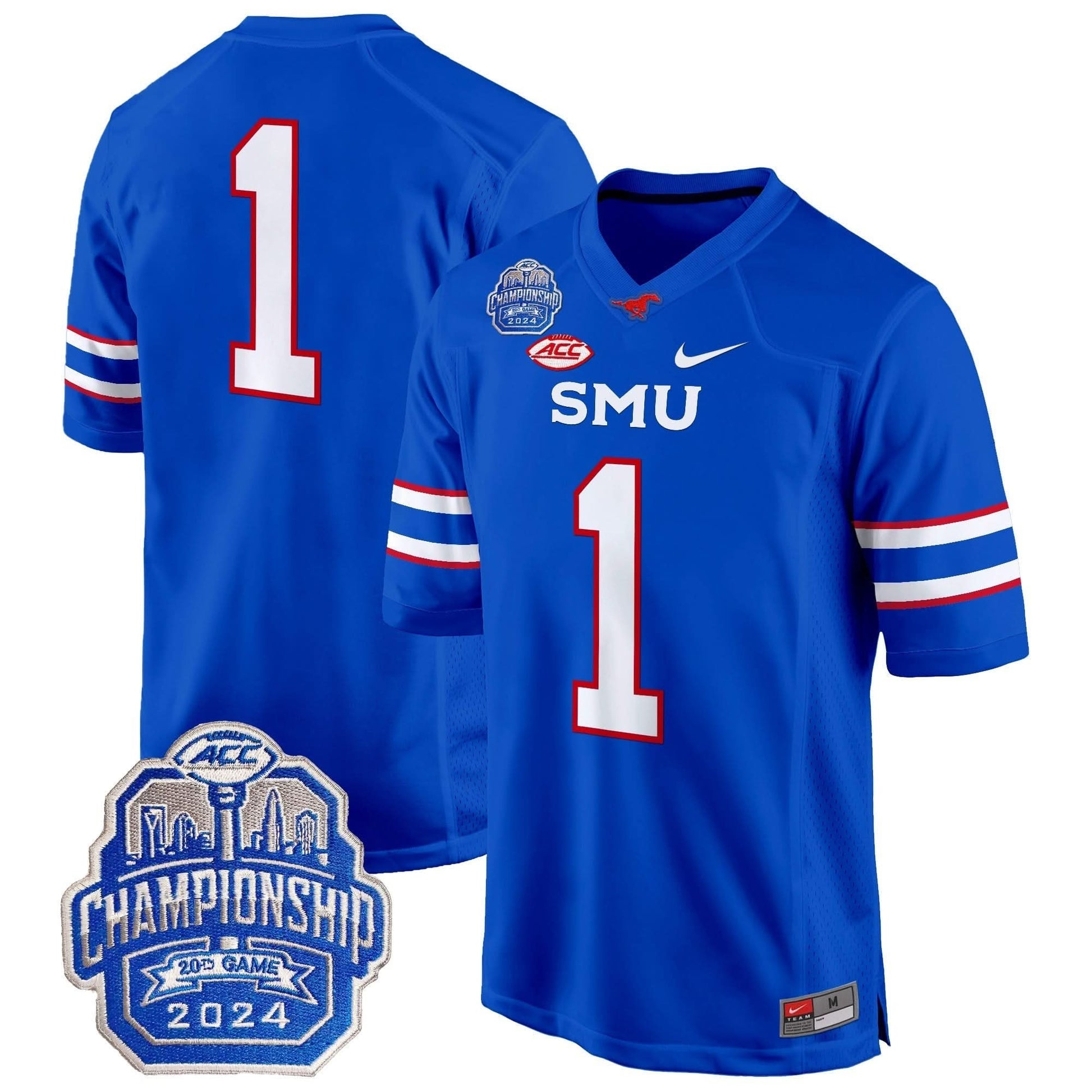 SMU Mustangs 2024 ACC Championship Patch Game Jersey - All Stitched