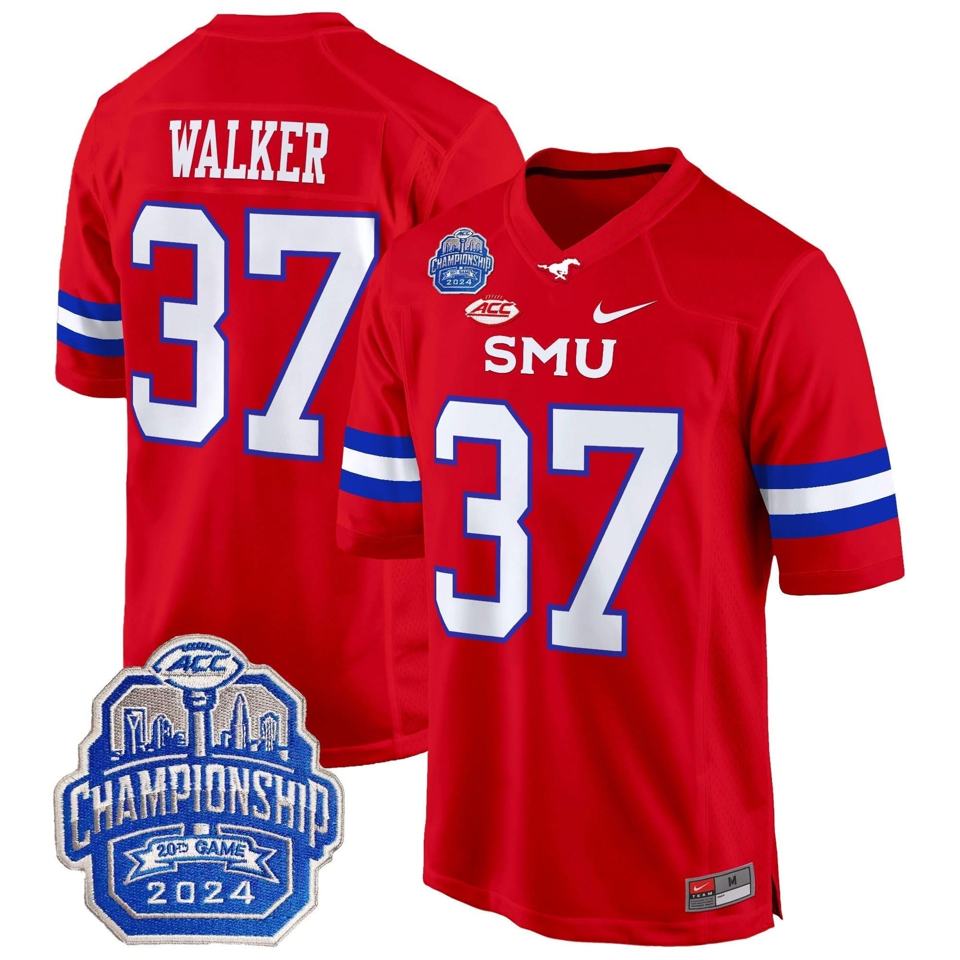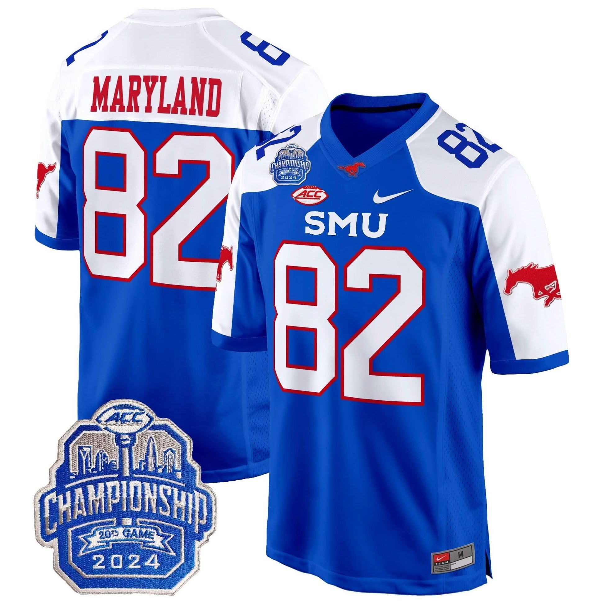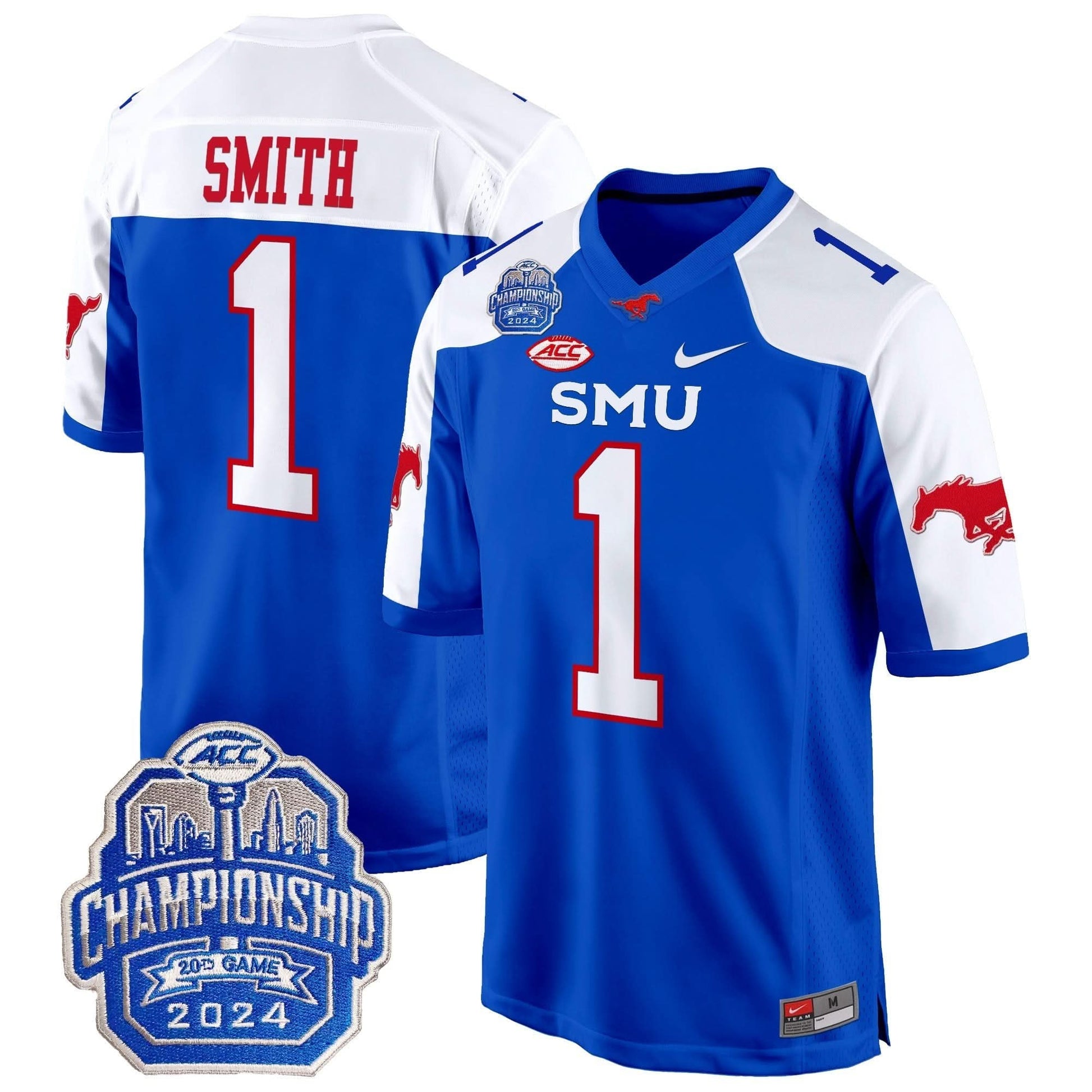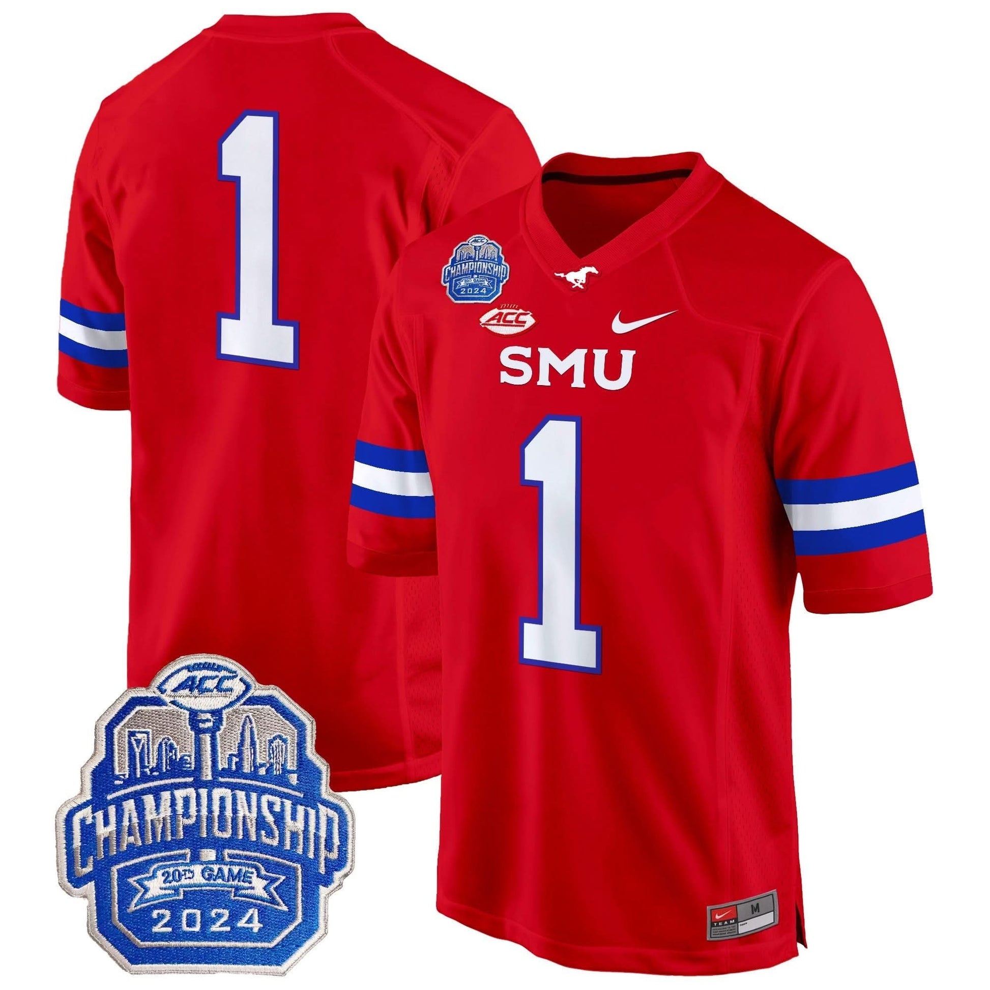 SMU Mustangs 2024 ACC Championship Patch Game Jersey - All Stitched