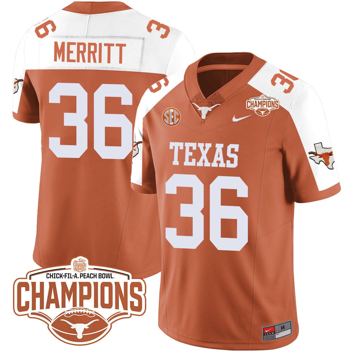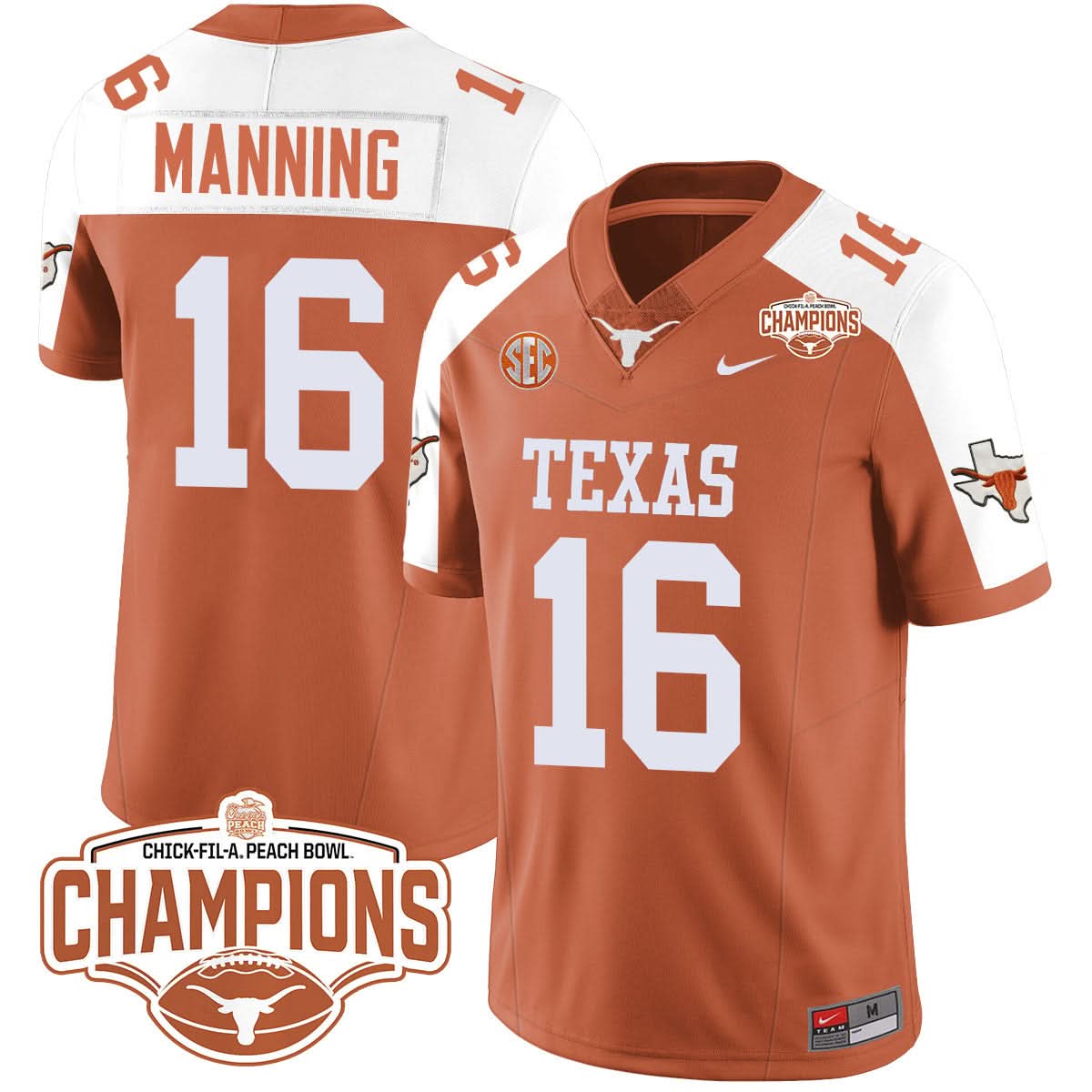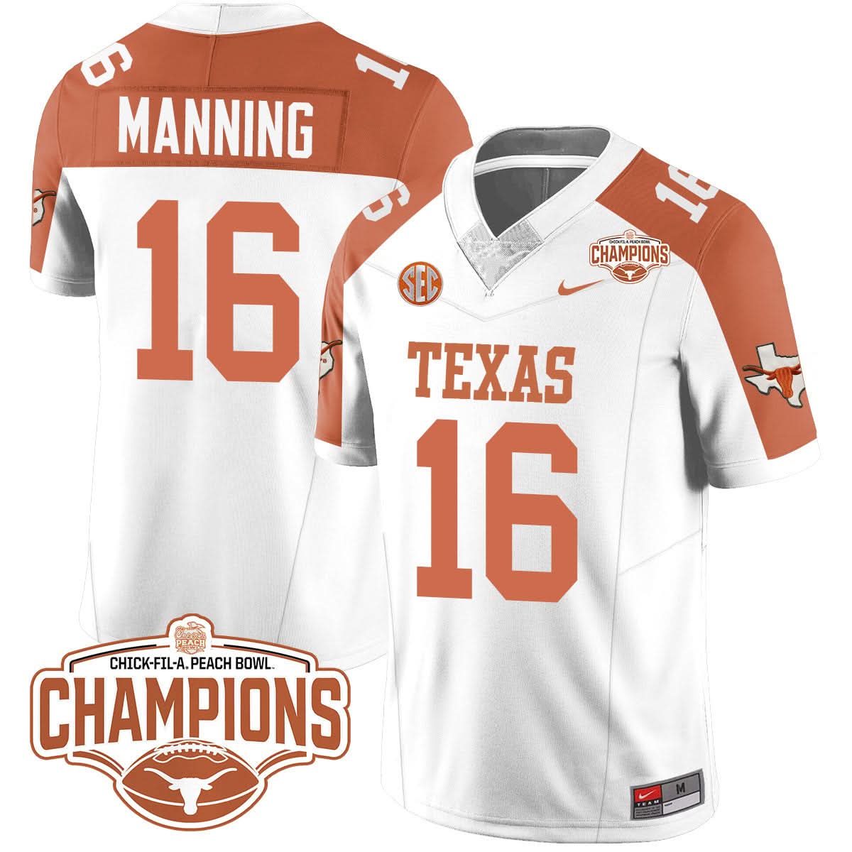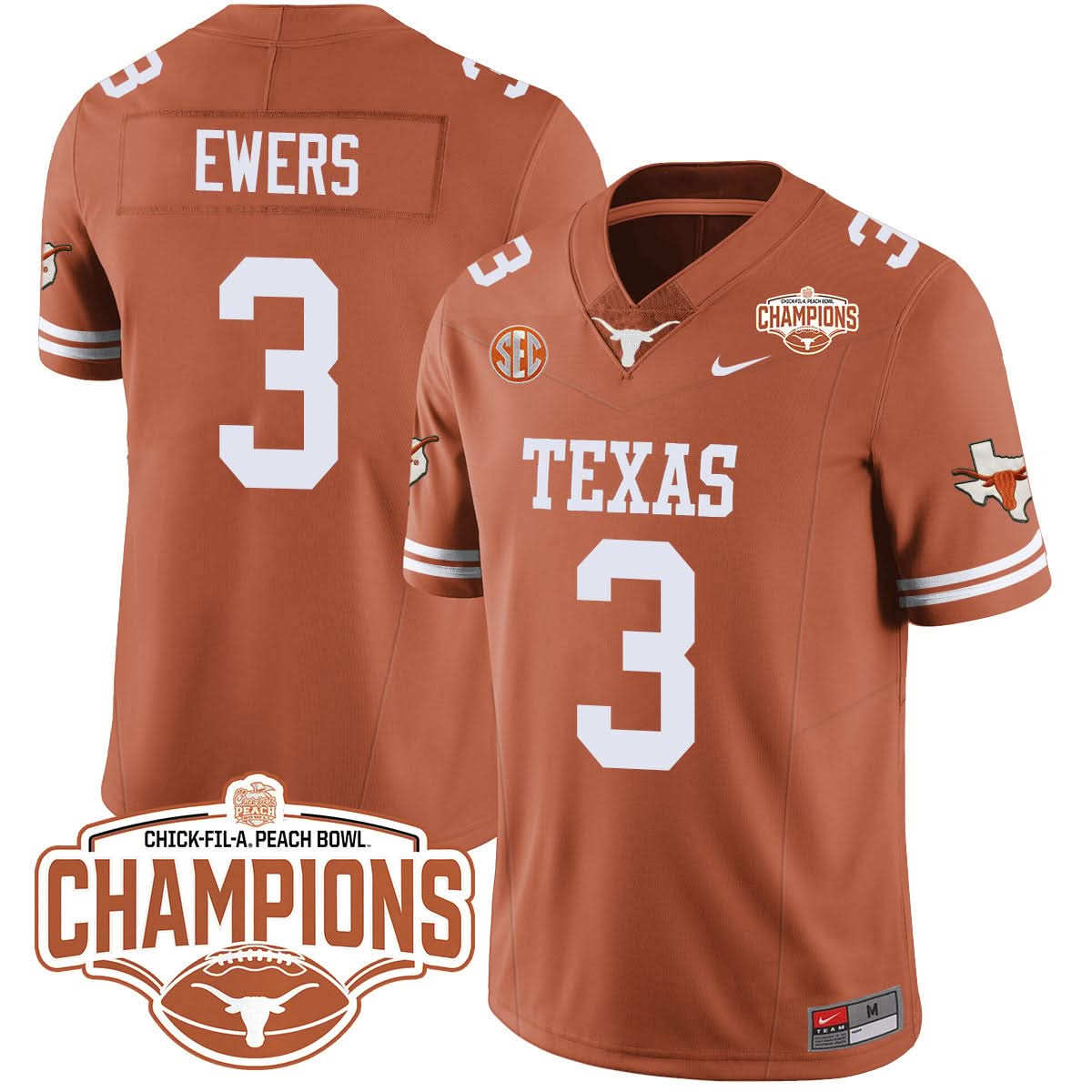 Texas Longhorns 2024 Peach Bowl Champions Jersey - All Stitched