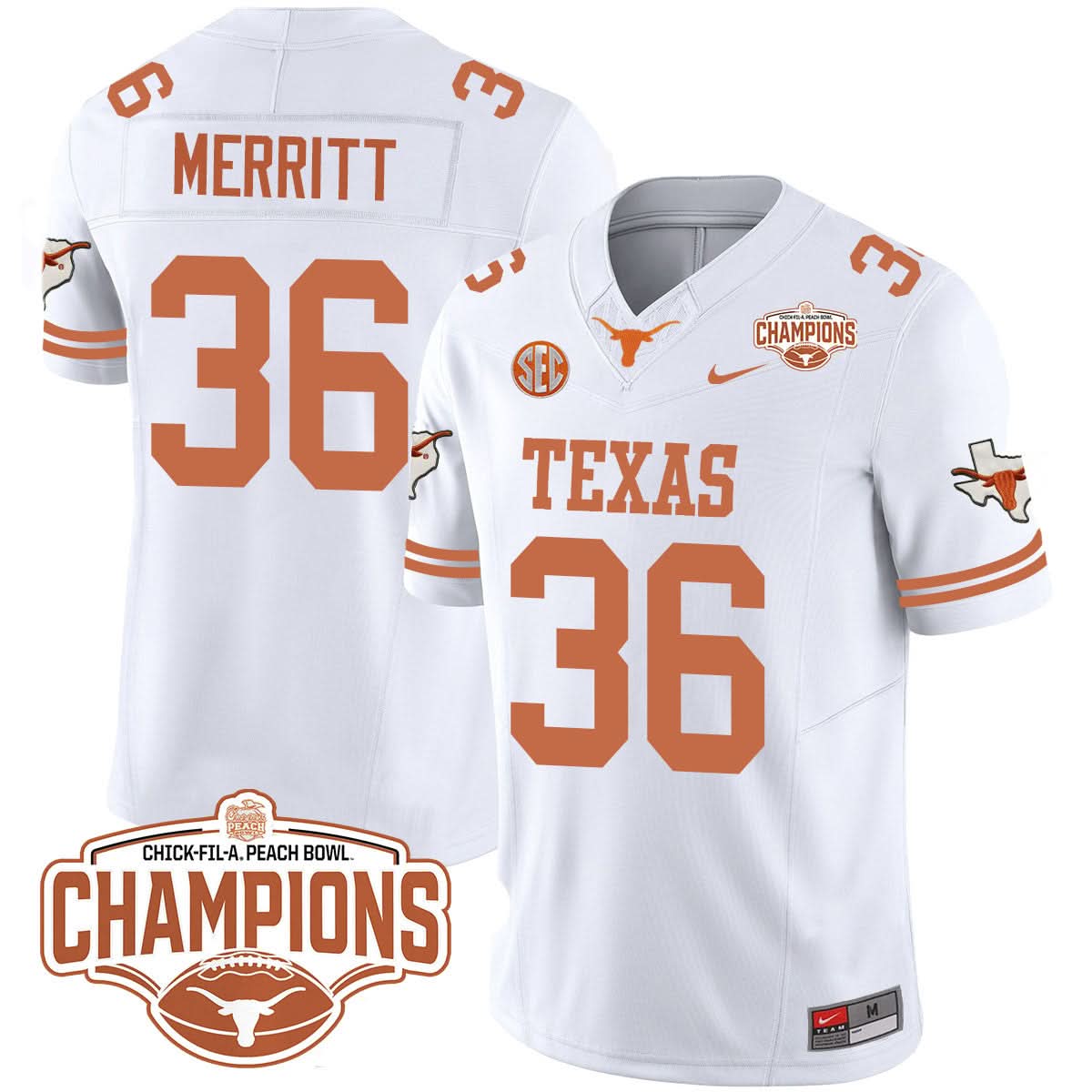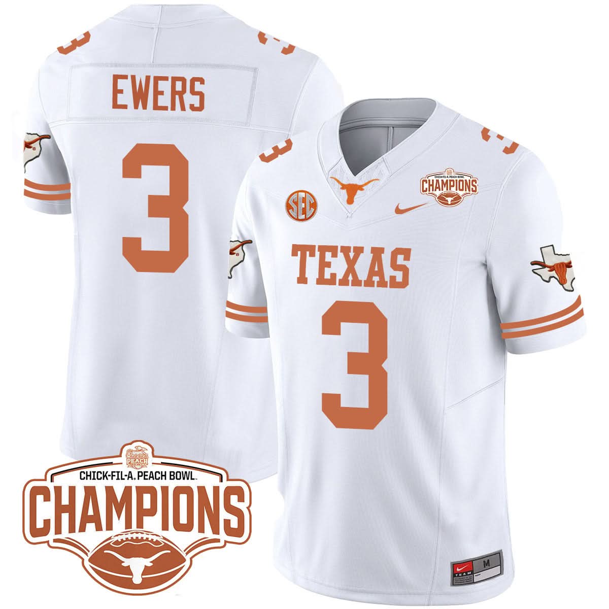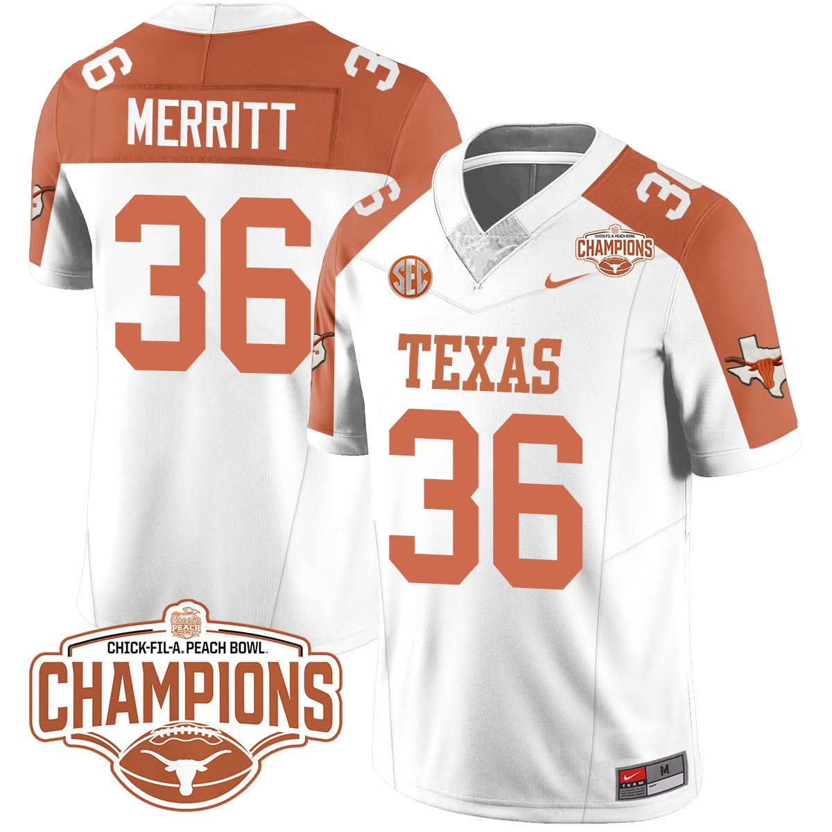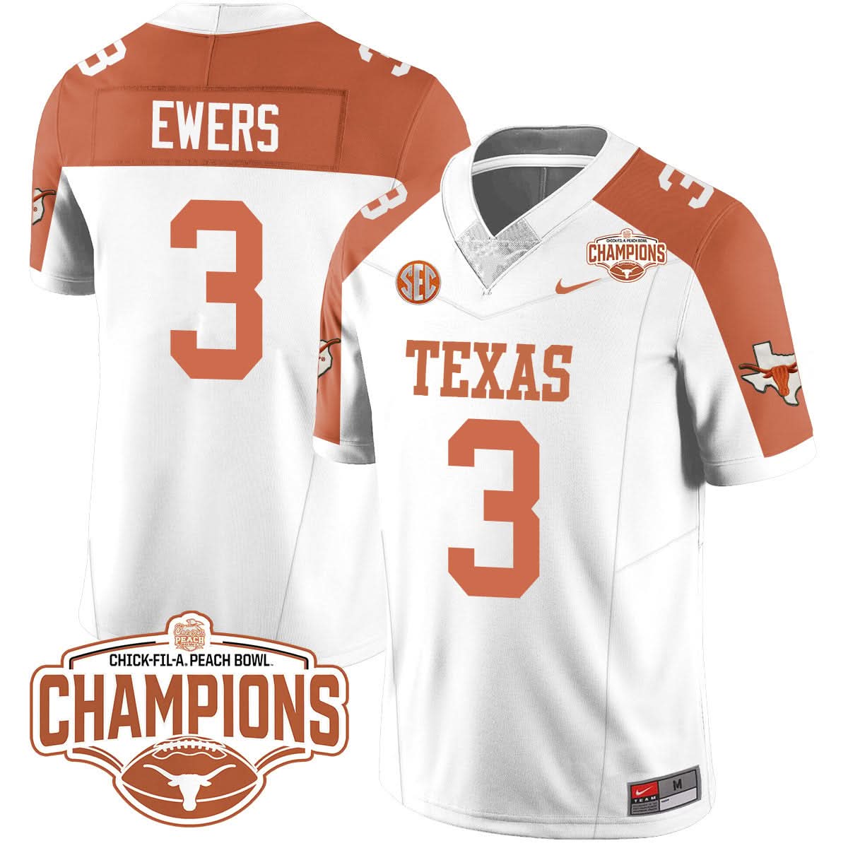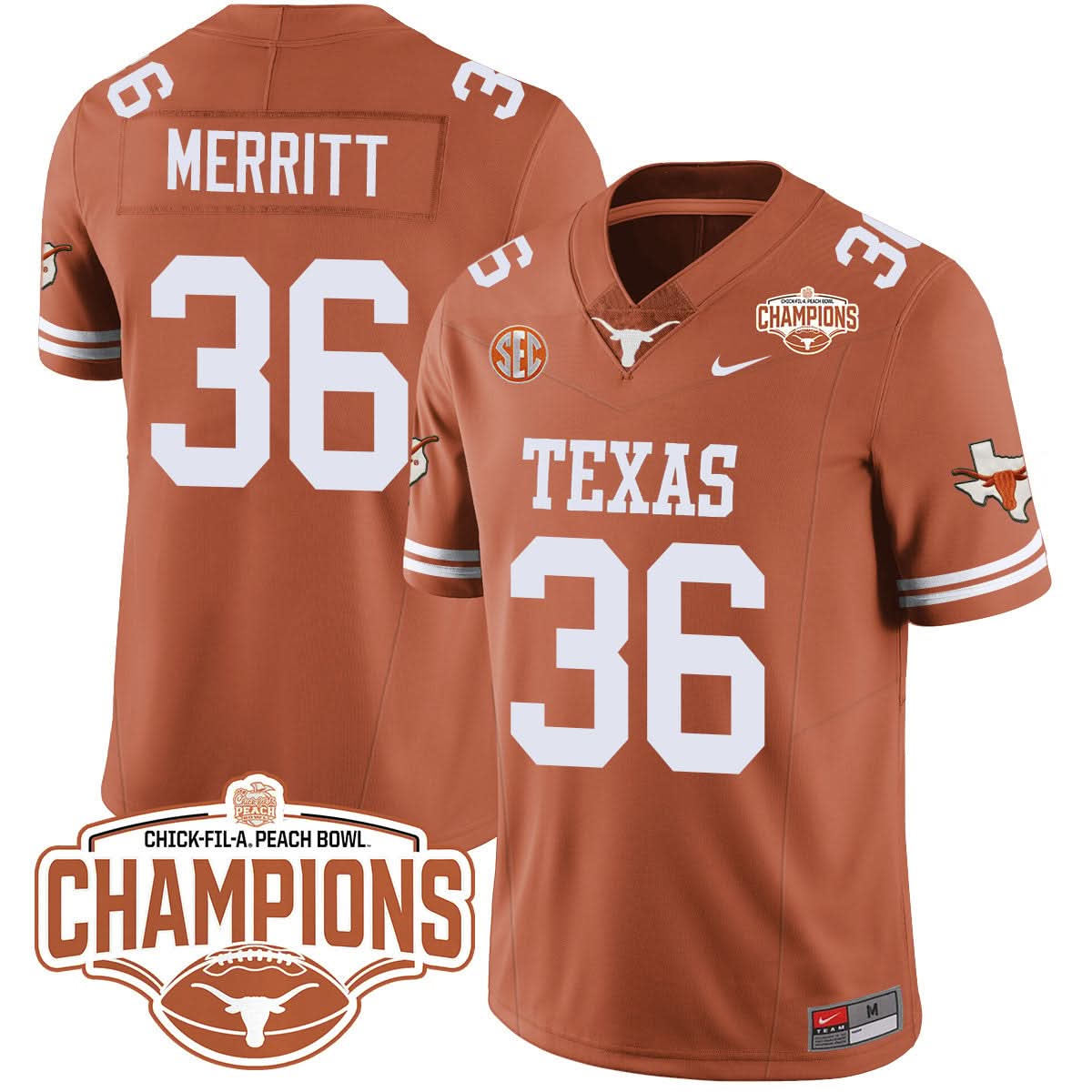 Texas Longhorns 2024 Peach Bowl Champions Jersey - All Stitched
