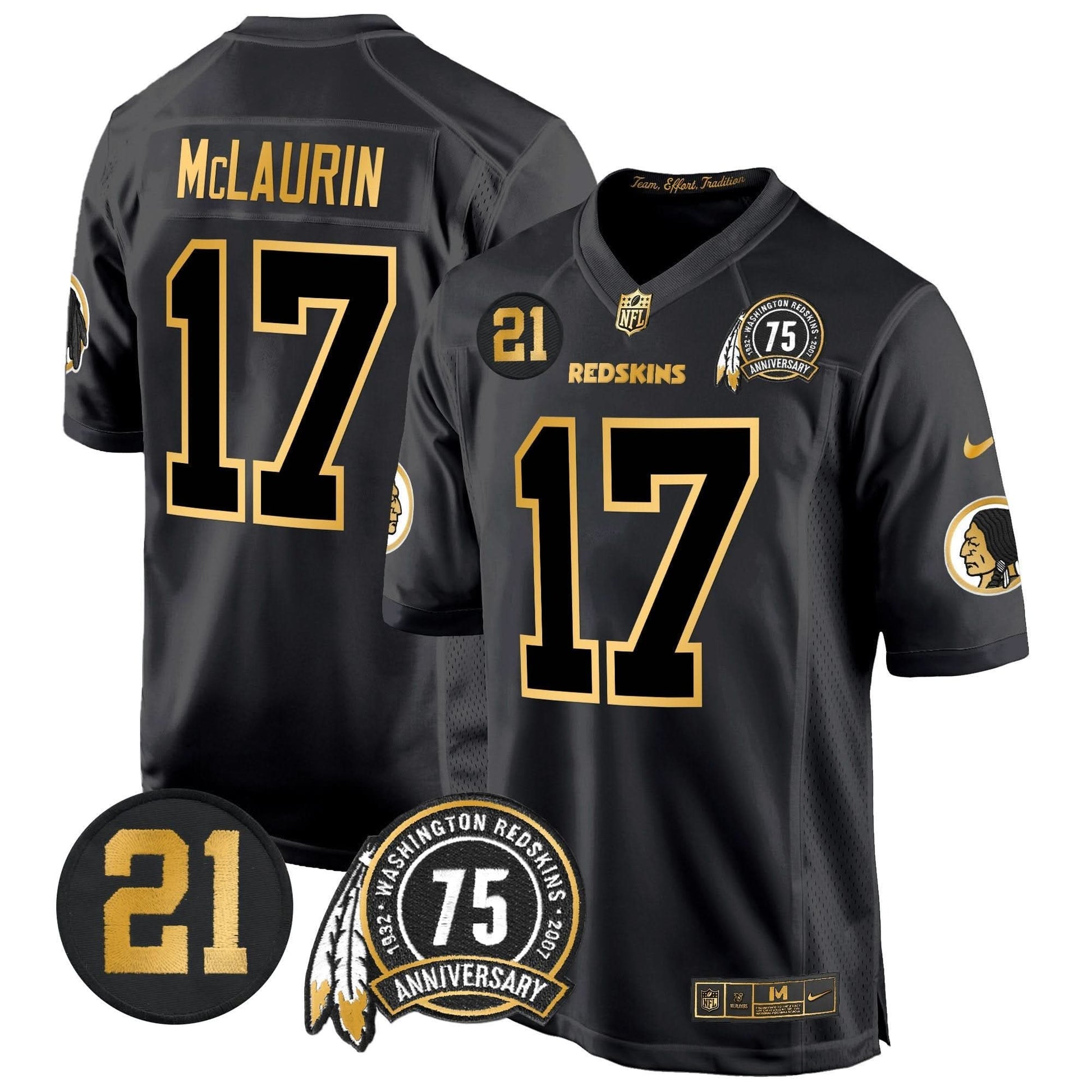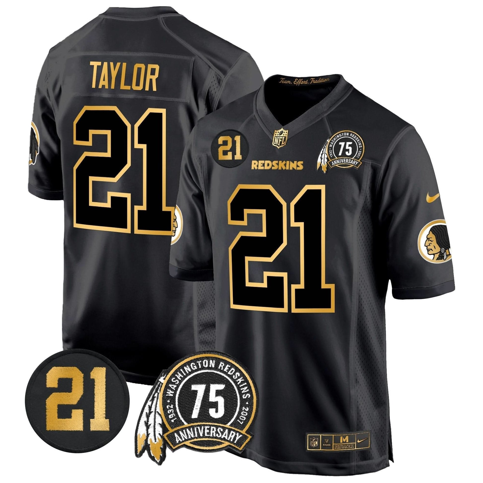 Washington Redskins 75th & Sean Taylor Patch Gold Game Jersey - All Stitched
