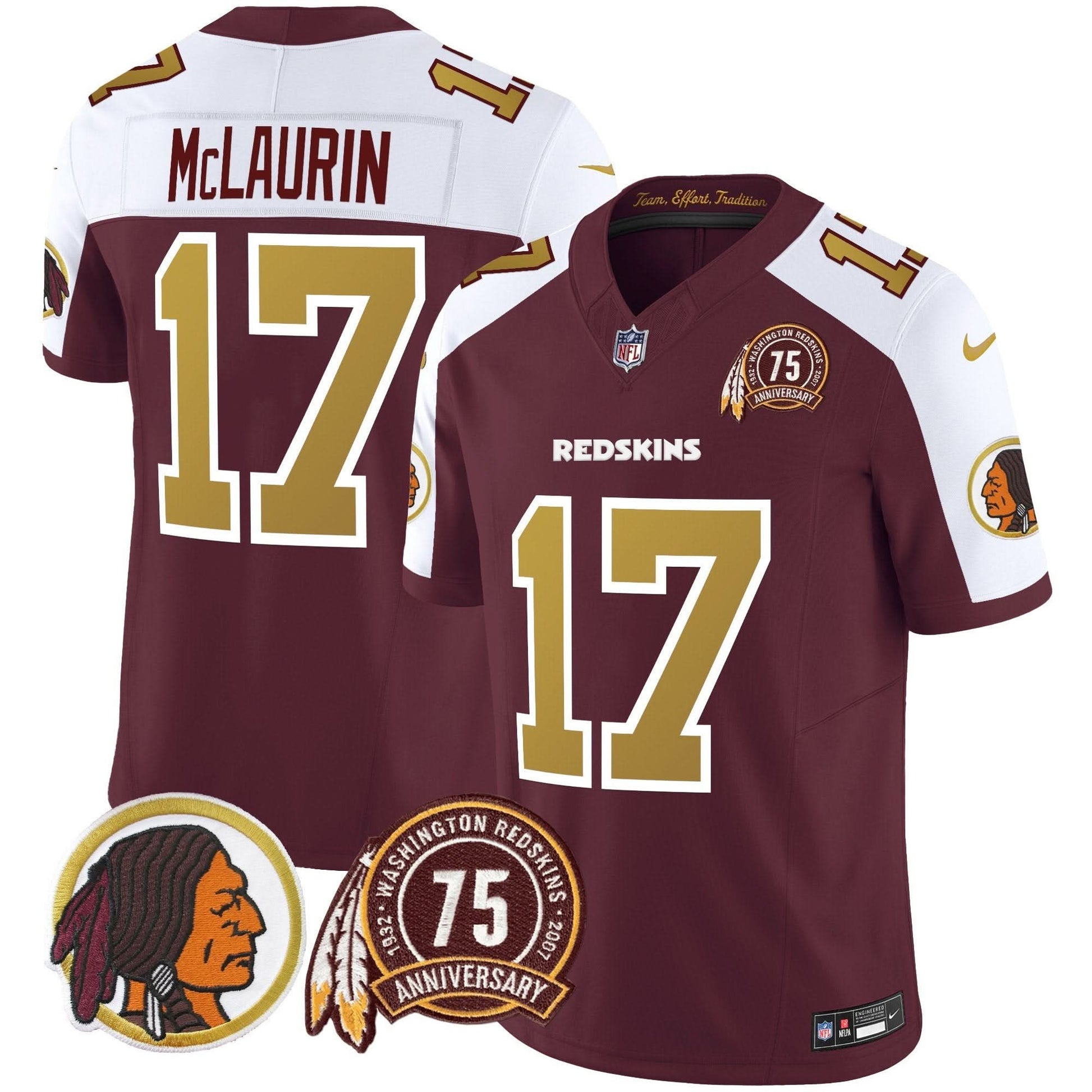 Washington Redskins Throwback 75th Patch Vapor Limited Jersey - All Stitched