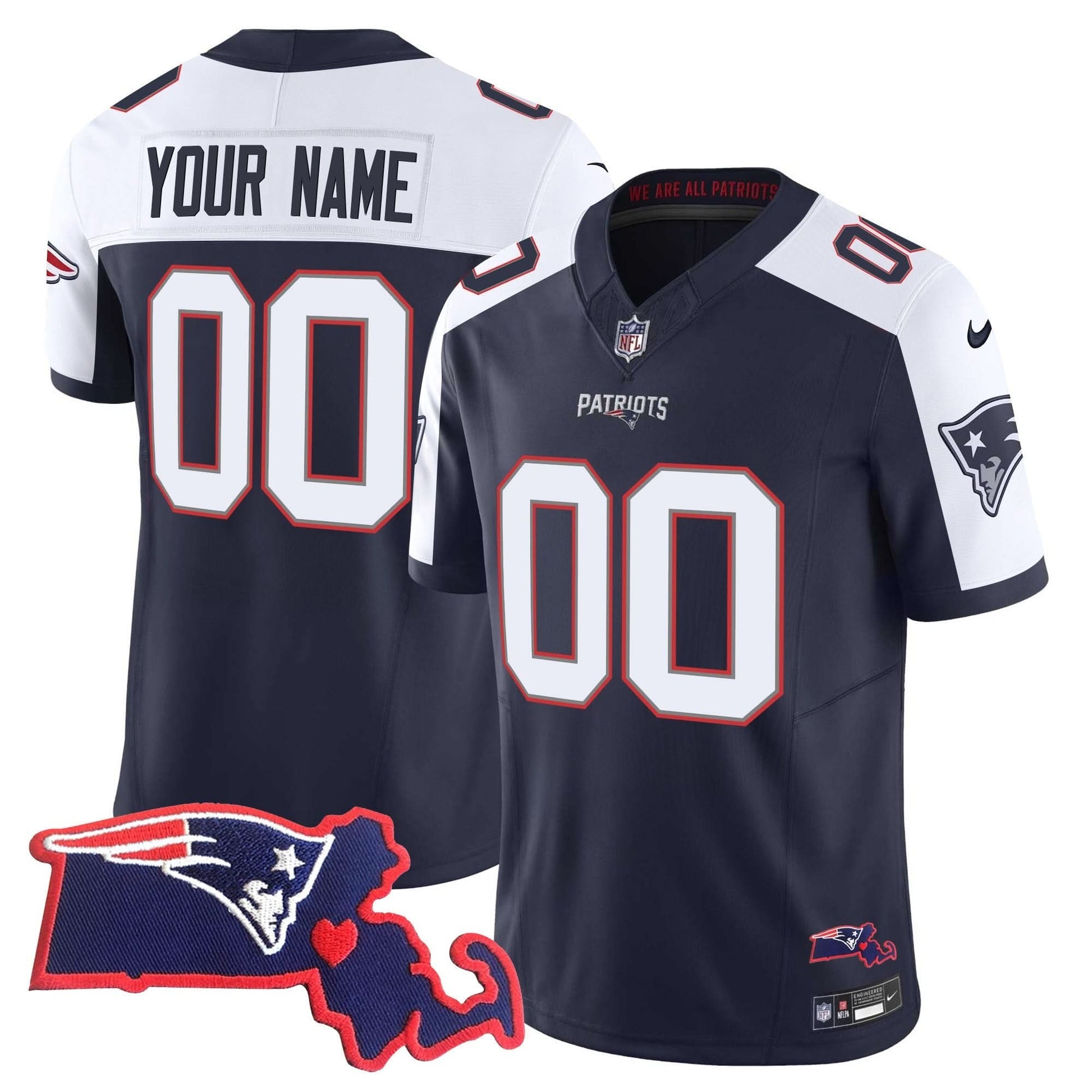 Patriots Massachusetts Patch Vapor Custom Jersey - All Stitched