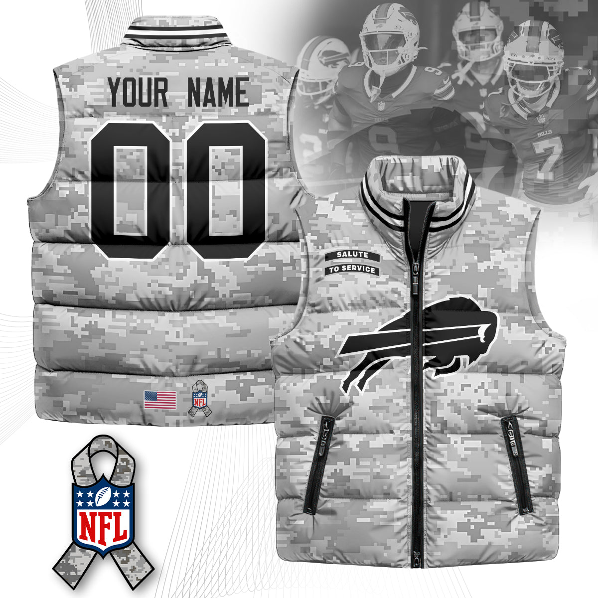 Personalized Buffalo Bills Salute To Service Puffer Vest