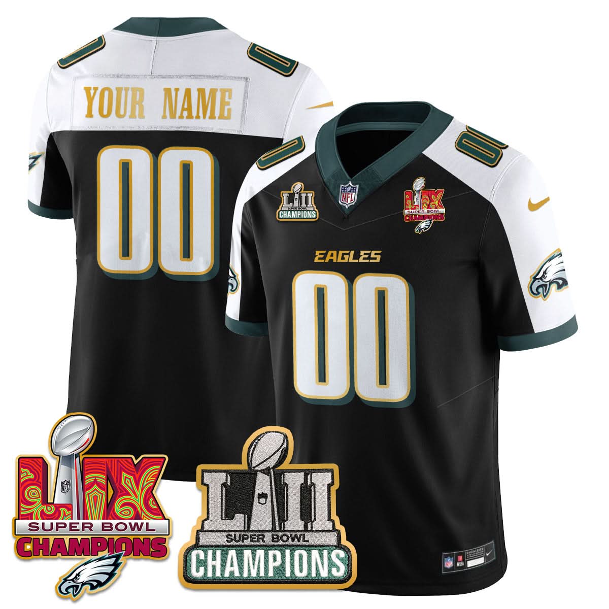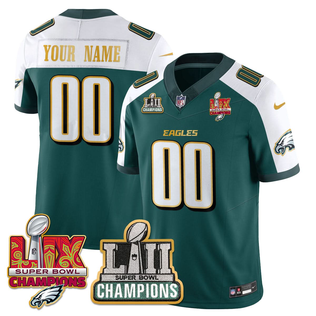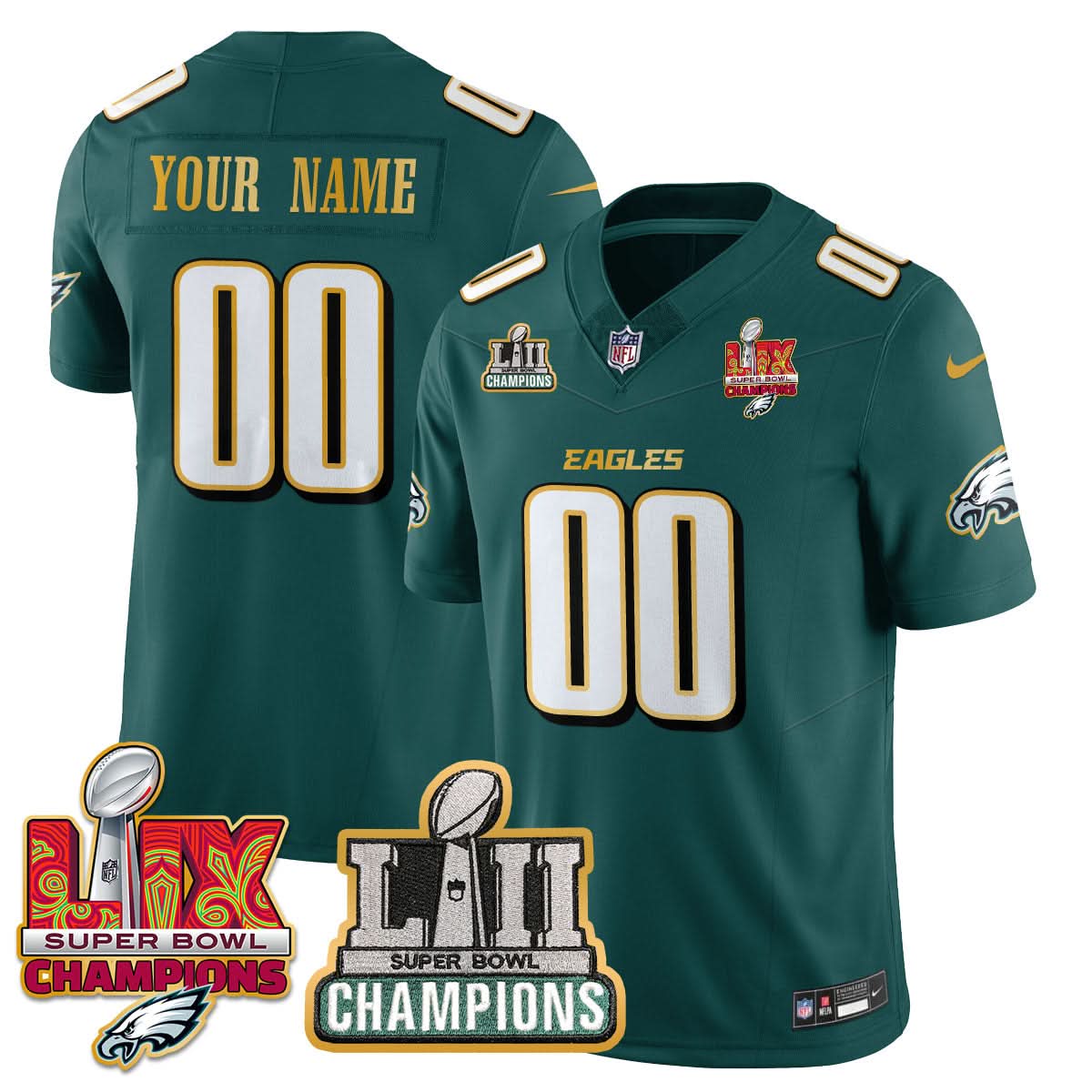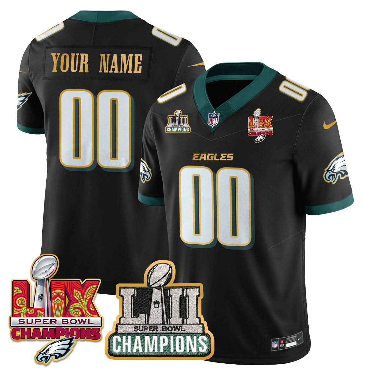 Philadelphia Eagles LII-LIX Super Bowl Champions Gold Custom Jersey - All Stitched