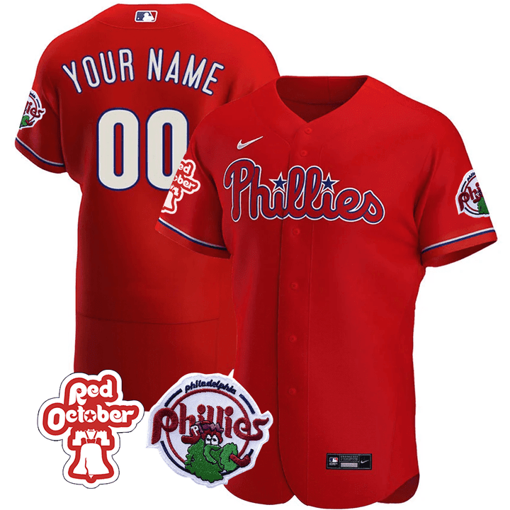 Philadelphia Phillies Red October Patch Custom Jersey - All Stitched