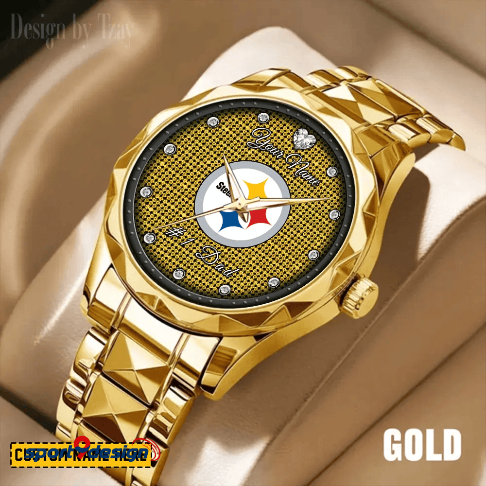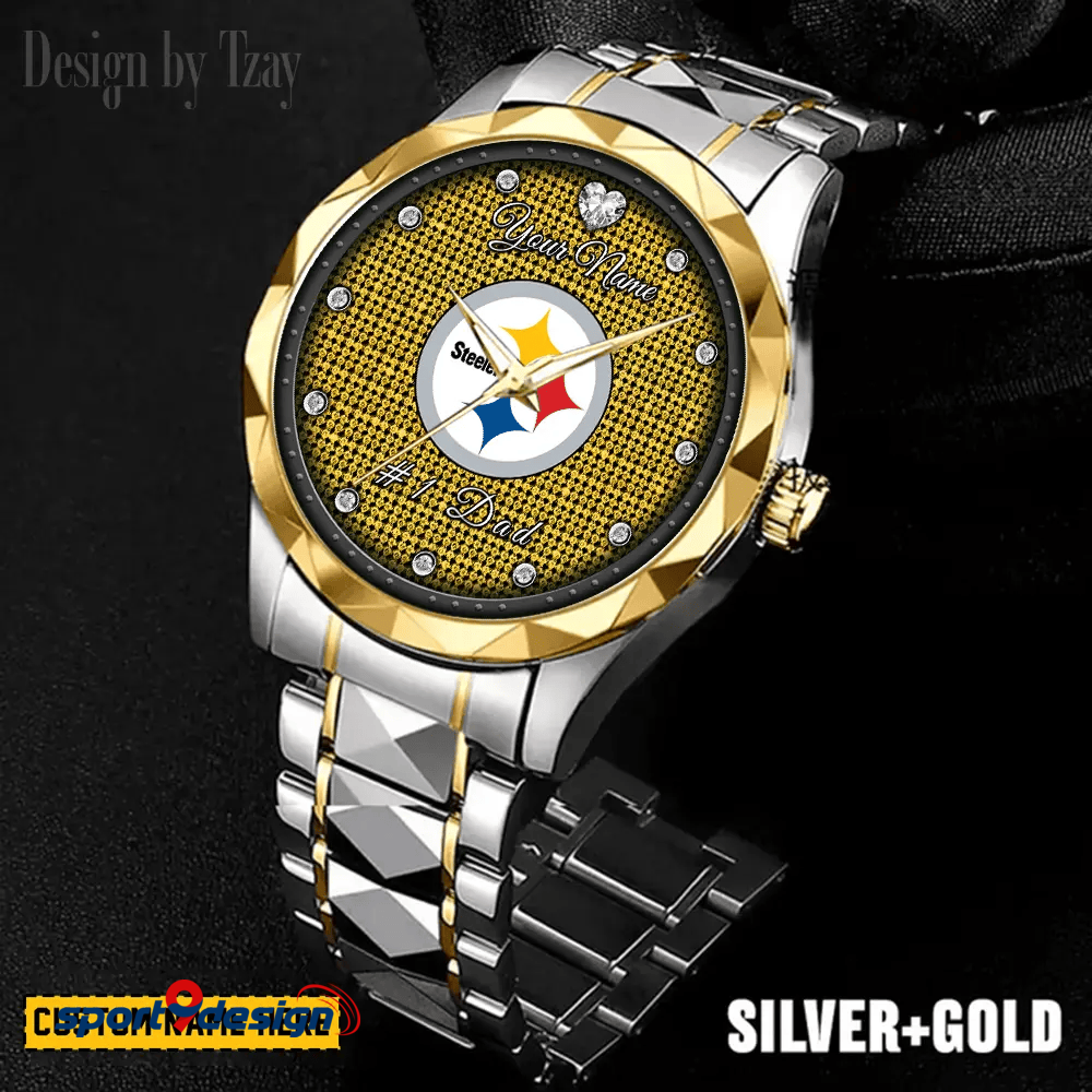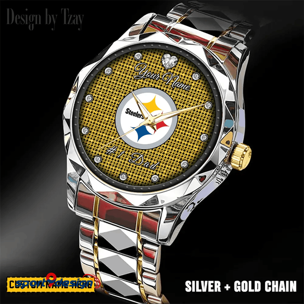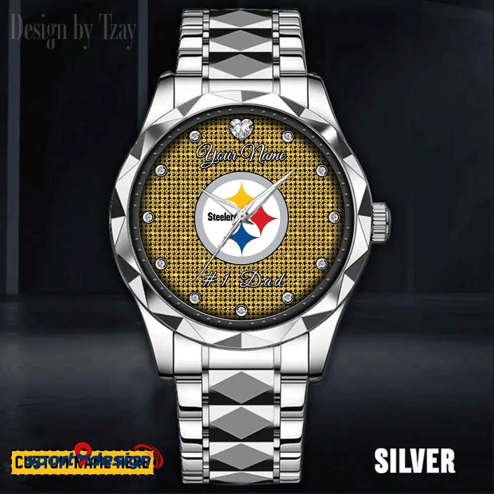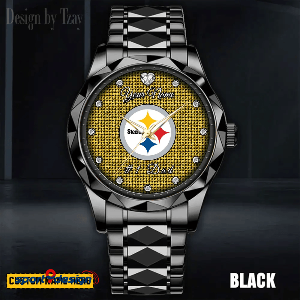 Pittsburgh Steelers #1 Dad Luxury Diamond Men Watch Father's Day Gift