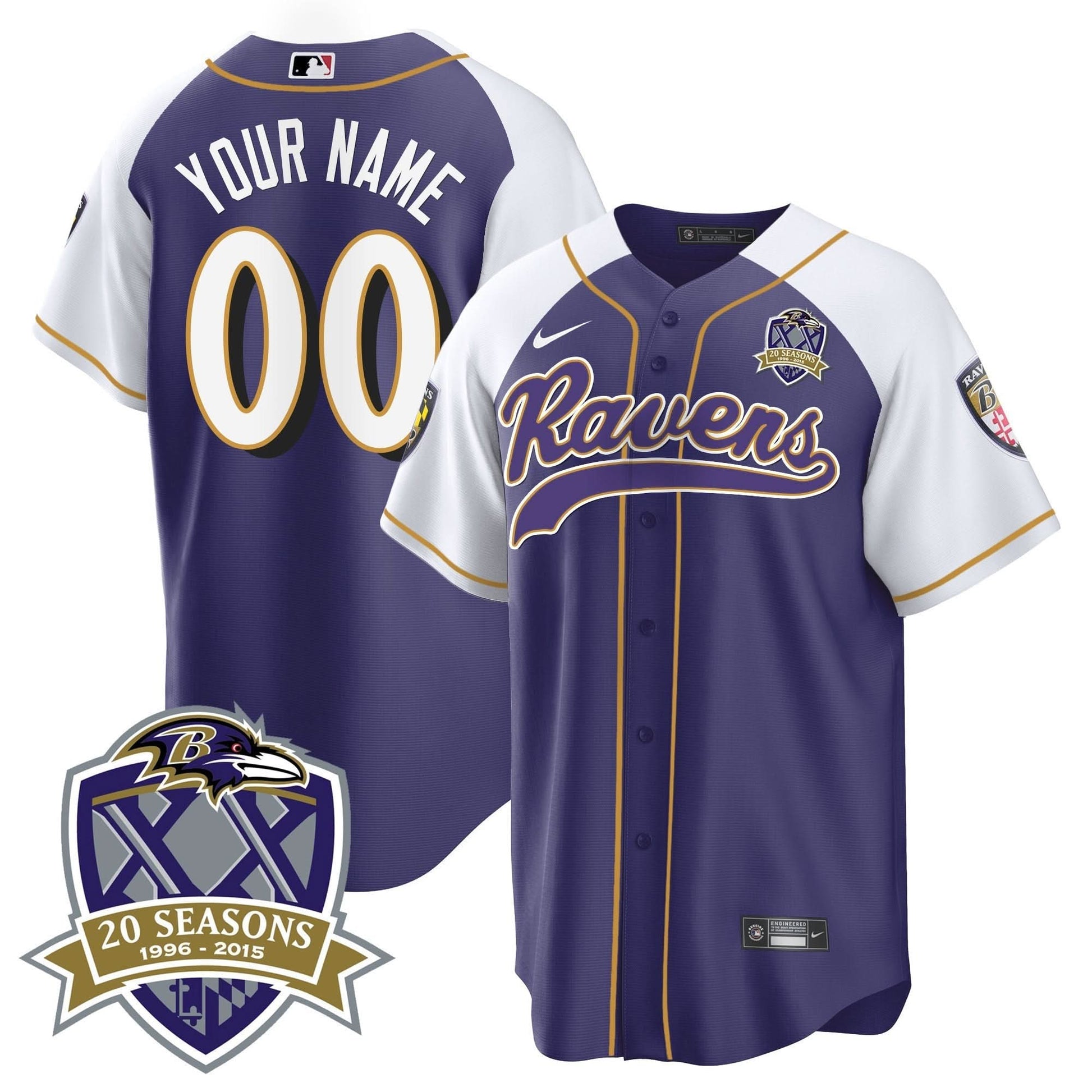 Ravens 20th Season Patch Baseball Custom Jersey - All Stitched