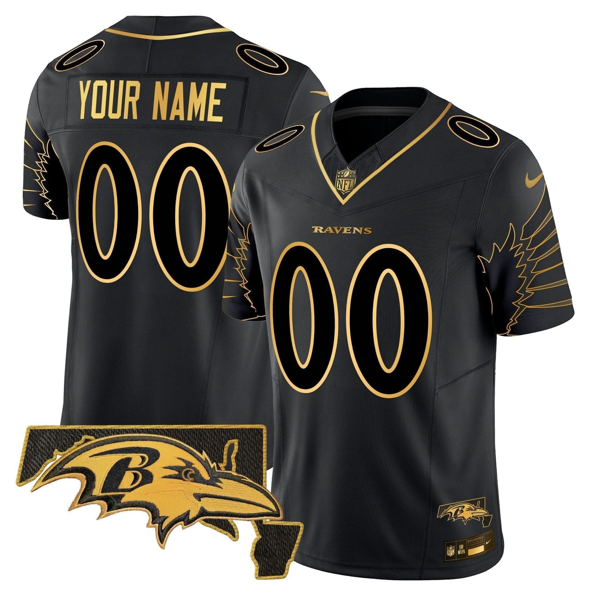Ravens Maryland Patch Gold Vapor Limited Custom Jersey V2 - All Stitched