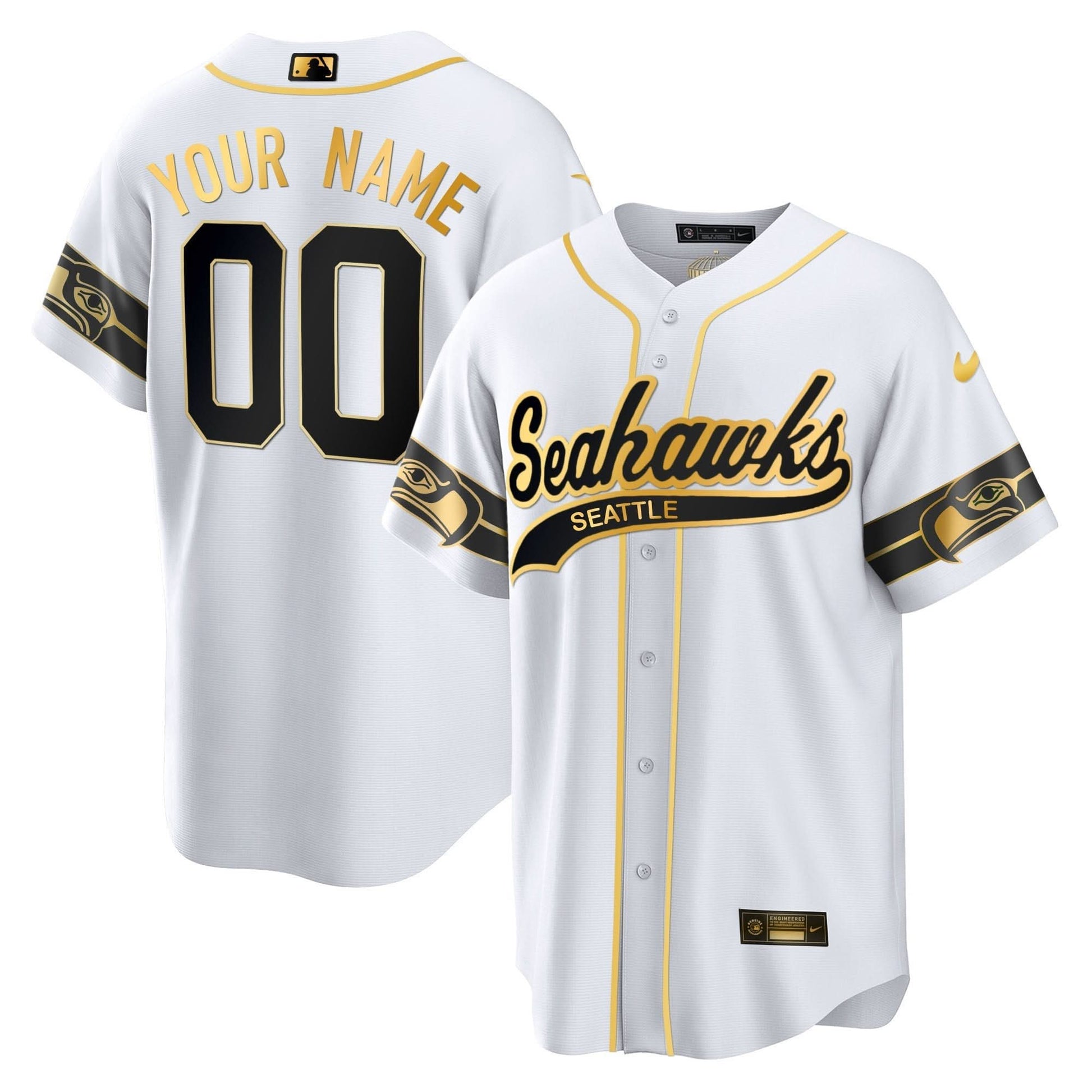 Seahawks Throwback & Gold Cool Base Custom Jersey - All Stitched