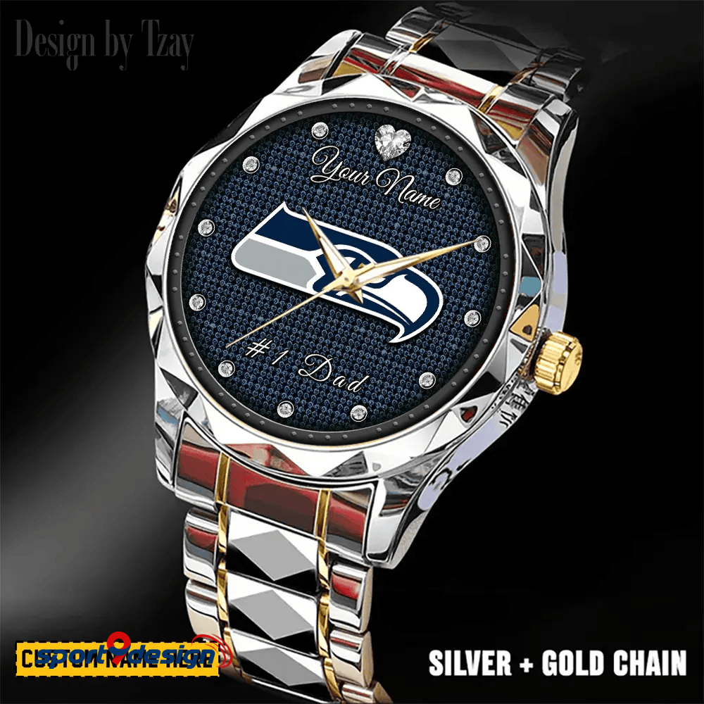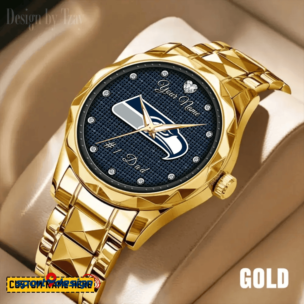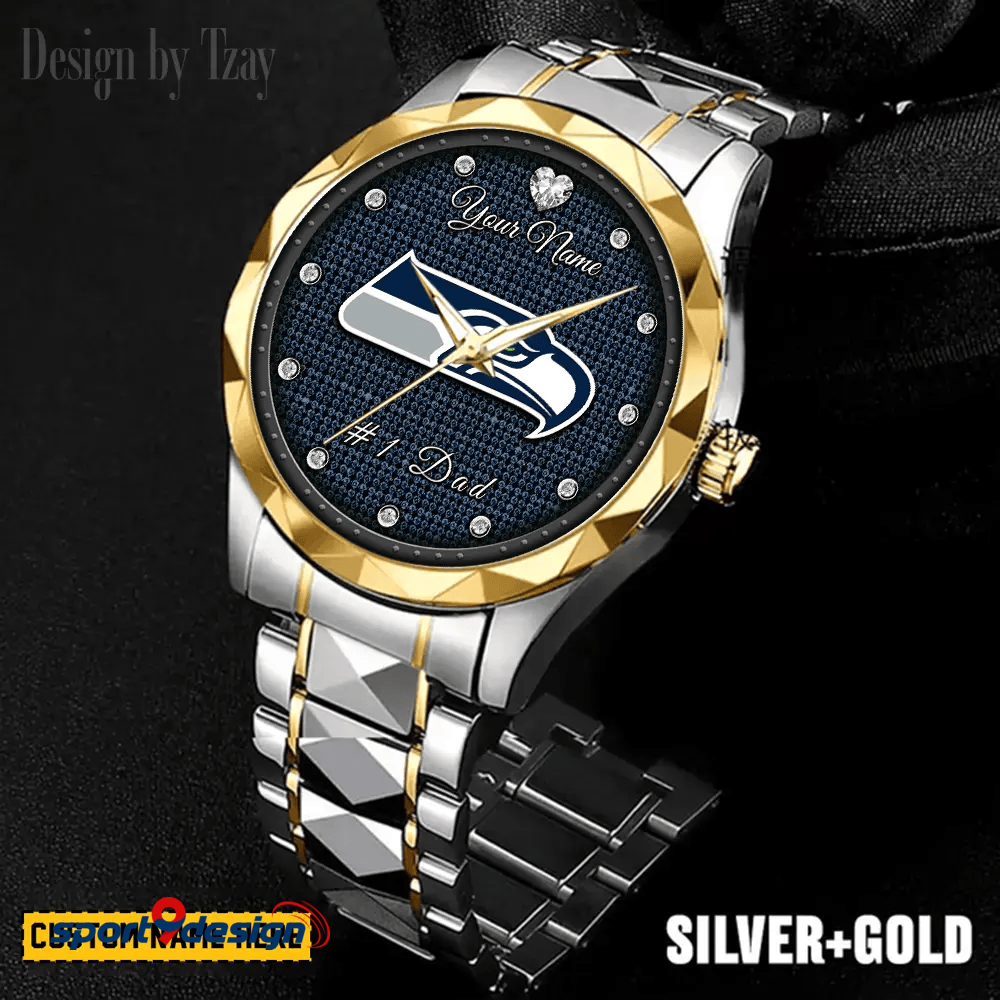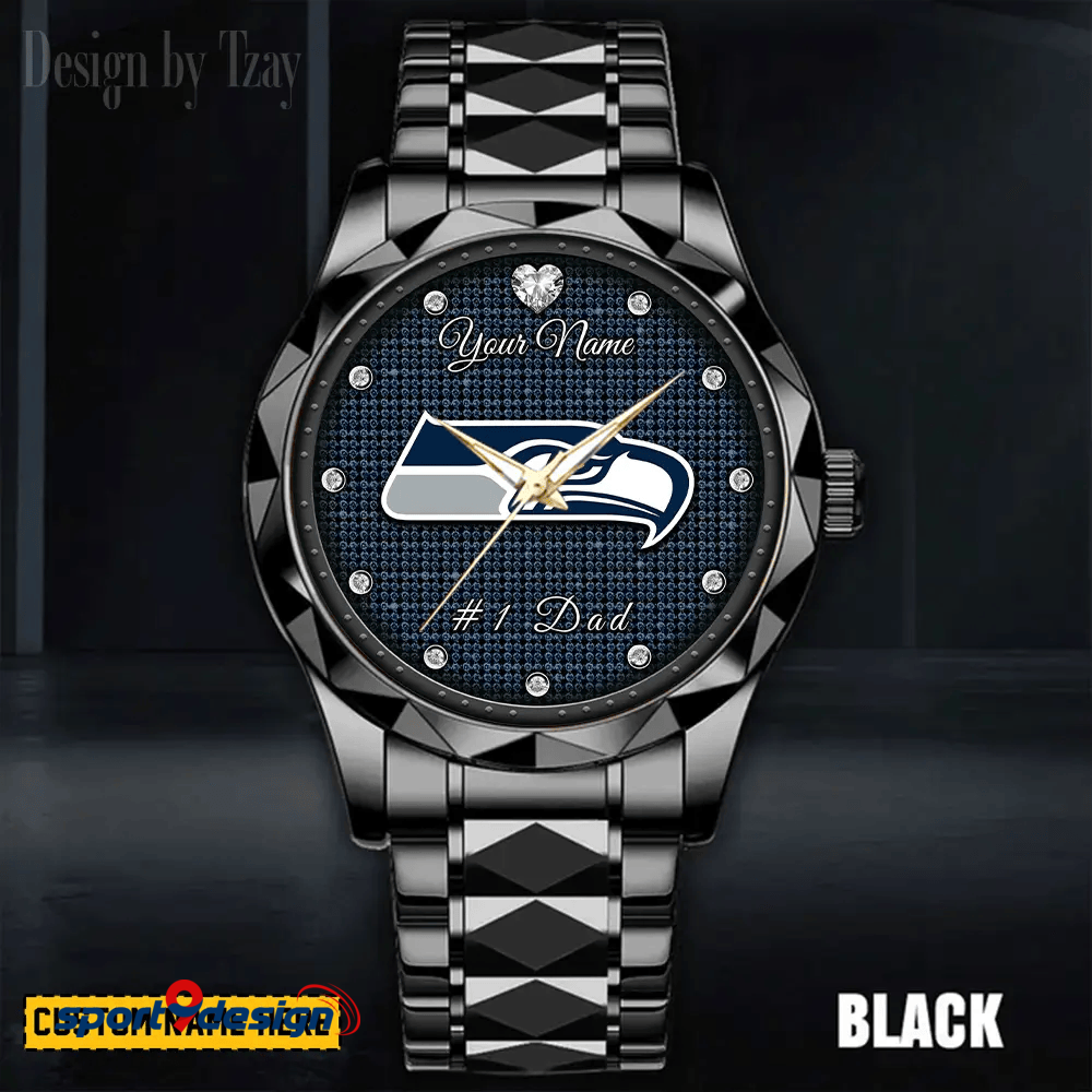 Seattle Seahawks #1 Dad Luxury Diamond Men Watch Father's Day Gift