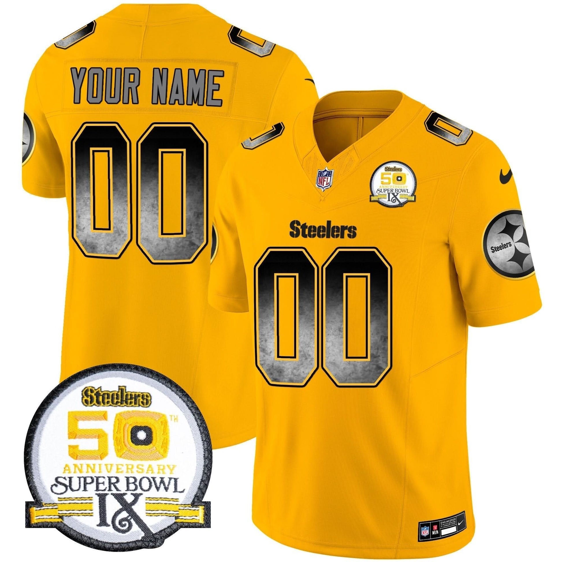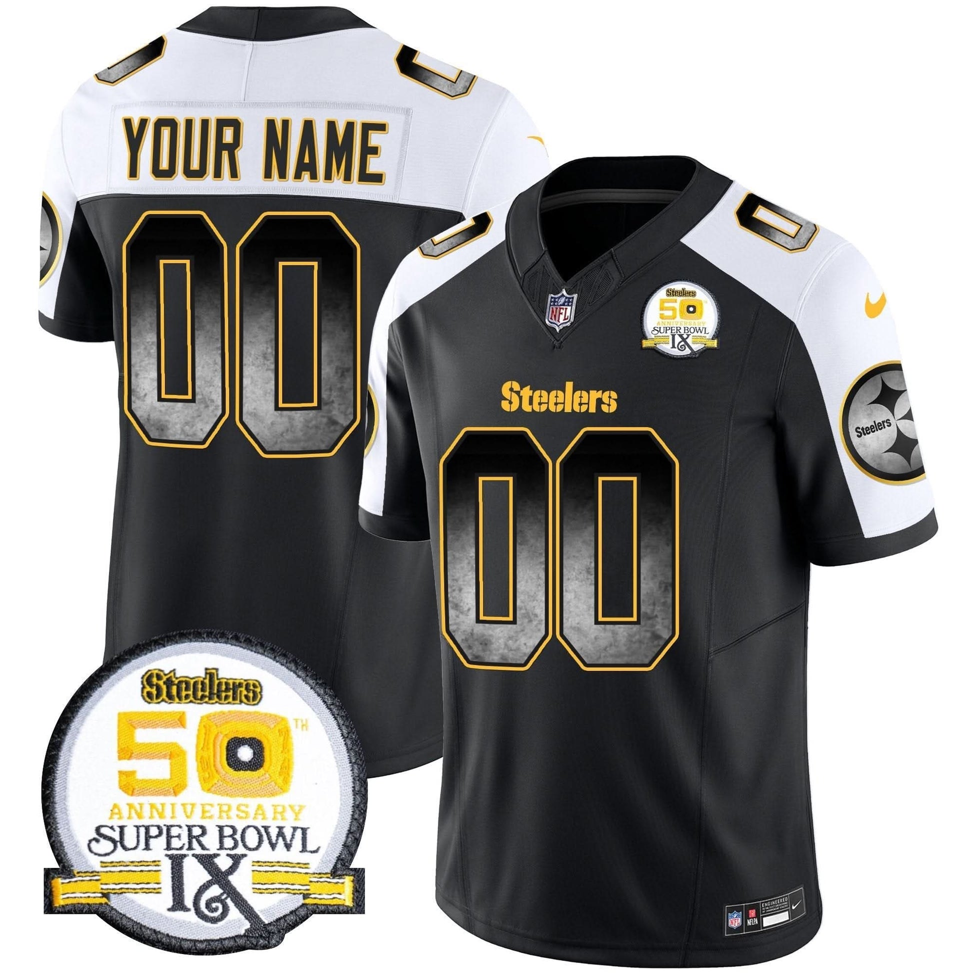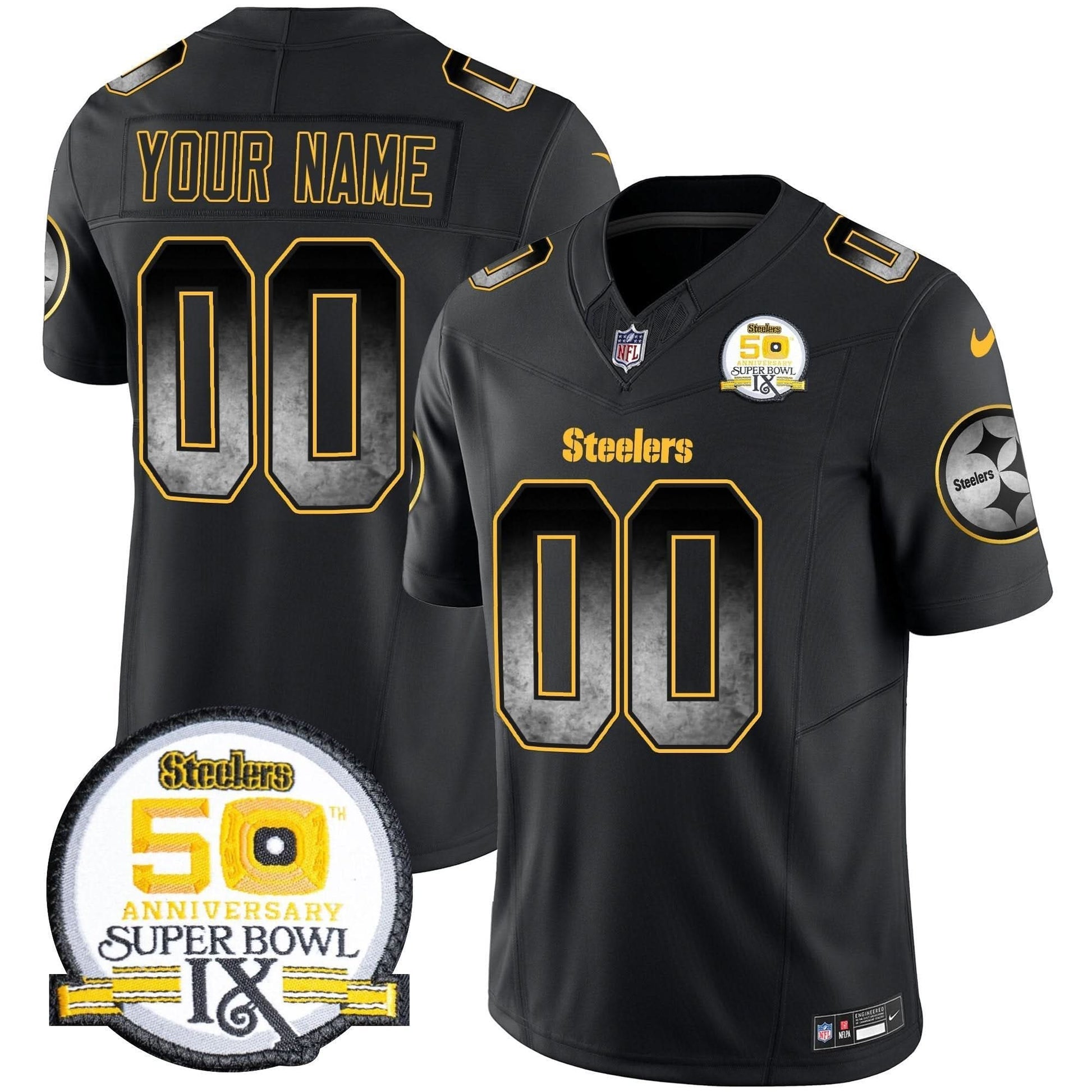 Steelers Arch Smoke 50th Anniversary Of Super Bowl IX Patch Vapor Limited Custom Jersey - All Stitched