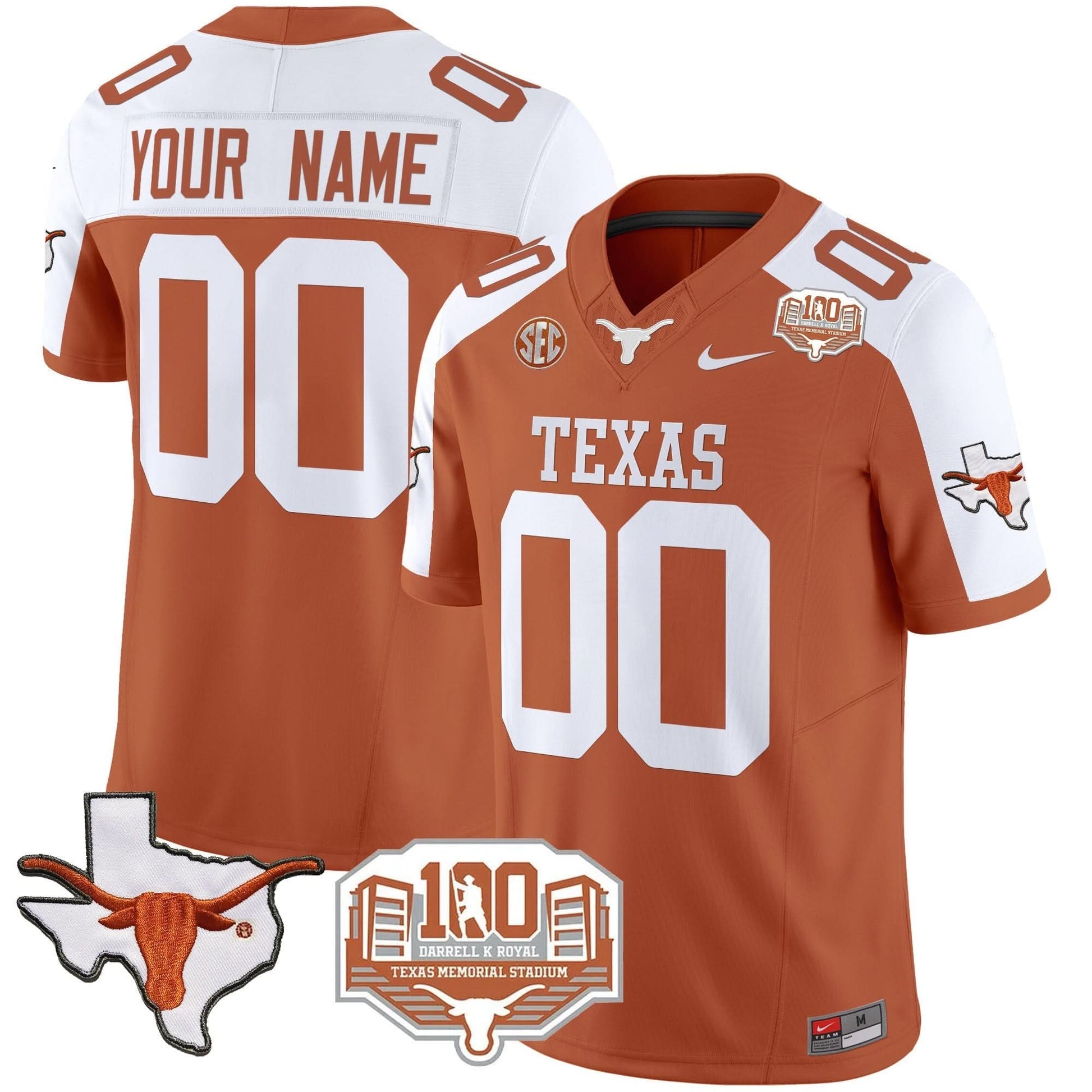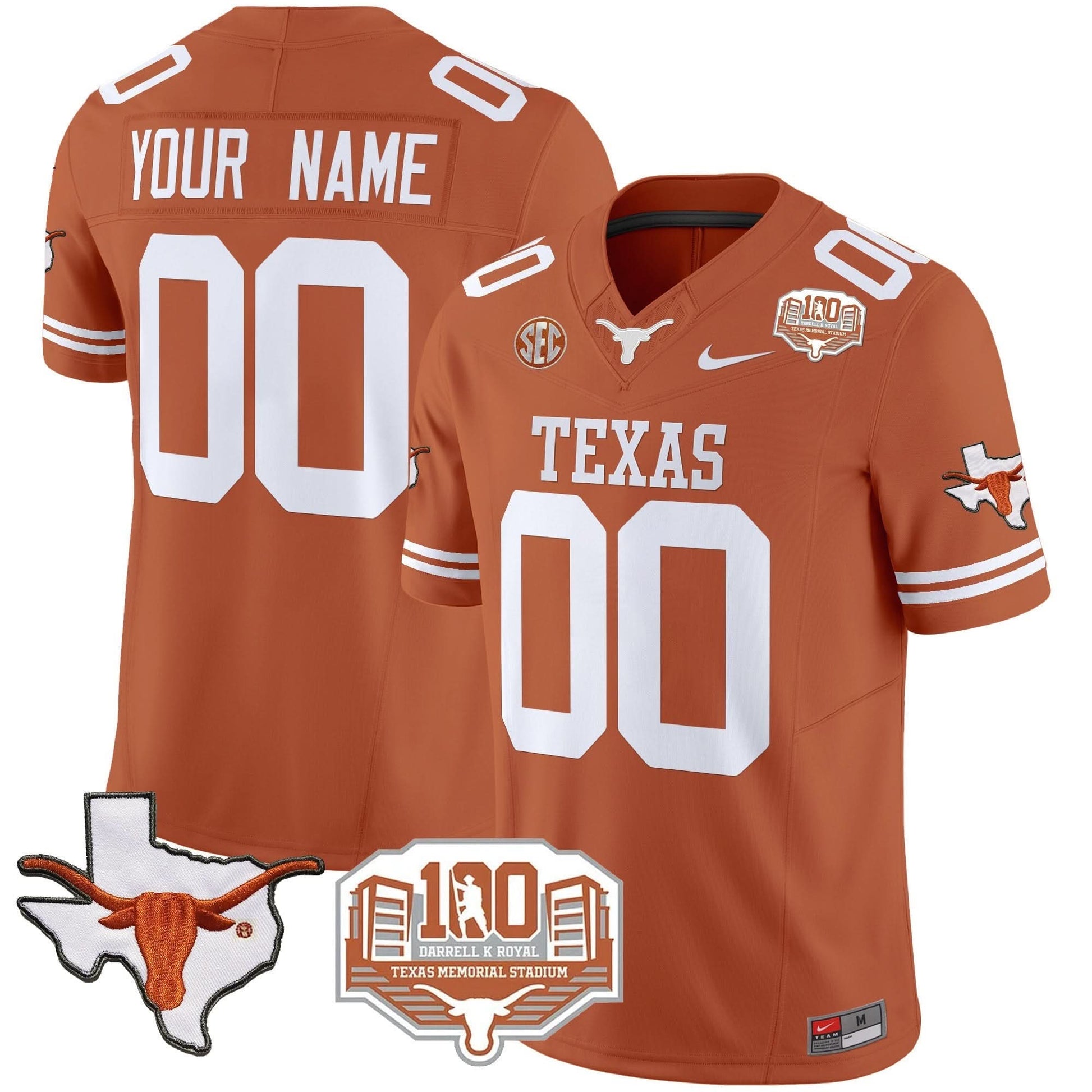 Texas Longhorns 2024 Vapor Limited Custom Jersey - 100 years of Darrell K Royal - All Stitched