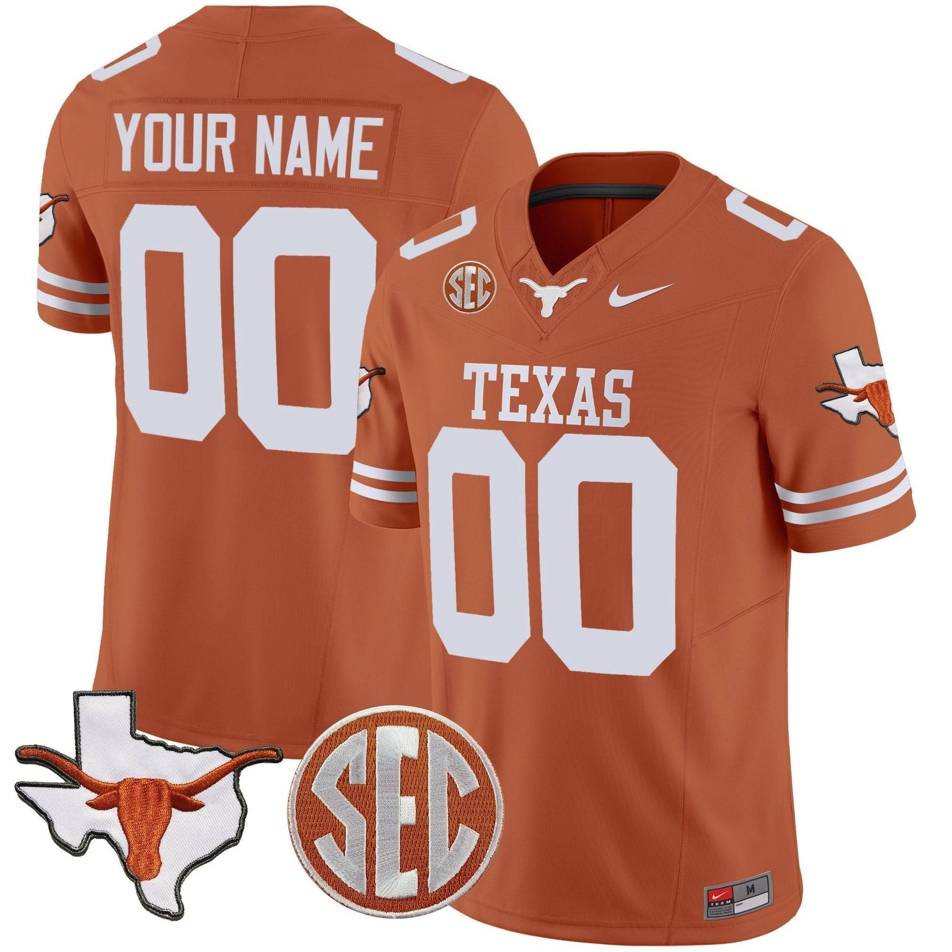 Texas Longhorns State Map & SEC Patch Vapor Custom Jersey V4 - All Stitched