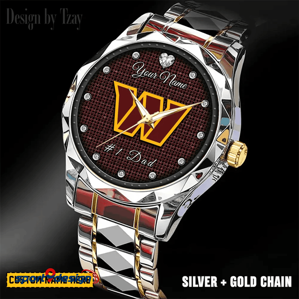 Washington Commanders #1 Dad Luxury Diamond Men Watch Father's Day Gift