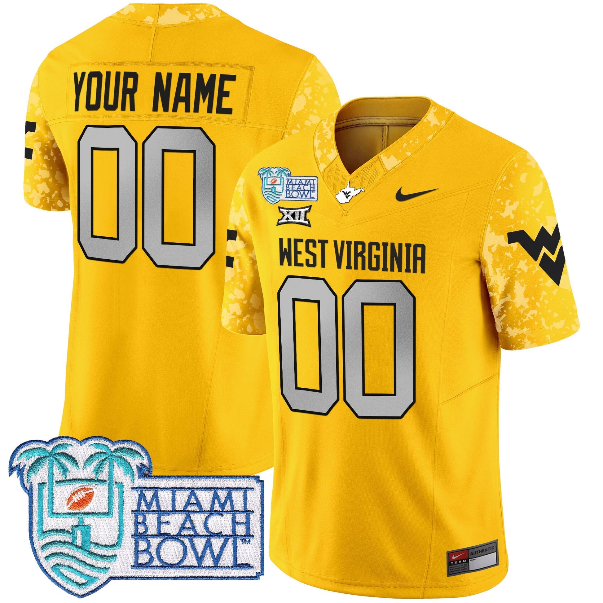 WVU 2025 Miami Beach Bowl Patch Vapor Limited Custom Jersey - All Stitched