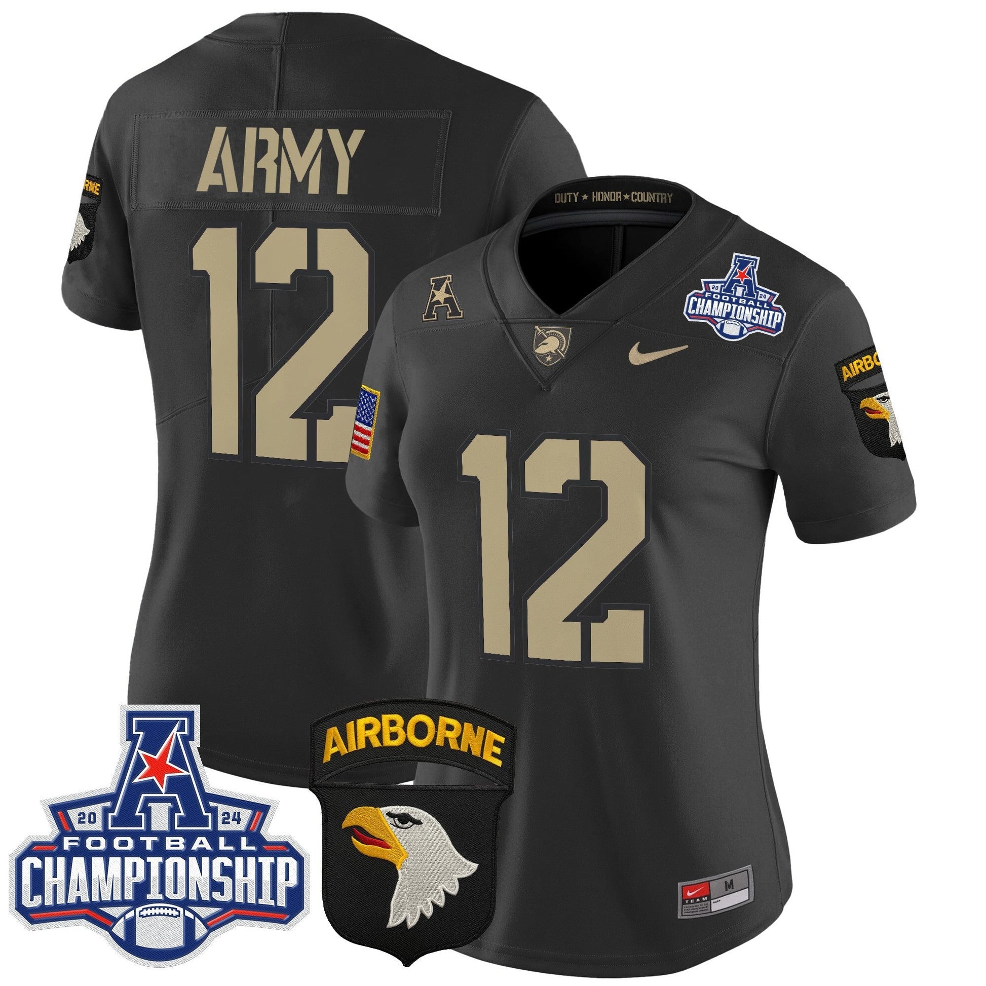 Women's Army Black Knights 2024 AAC Championship Patch Vapor Limited Jersey V2 - All Stitched