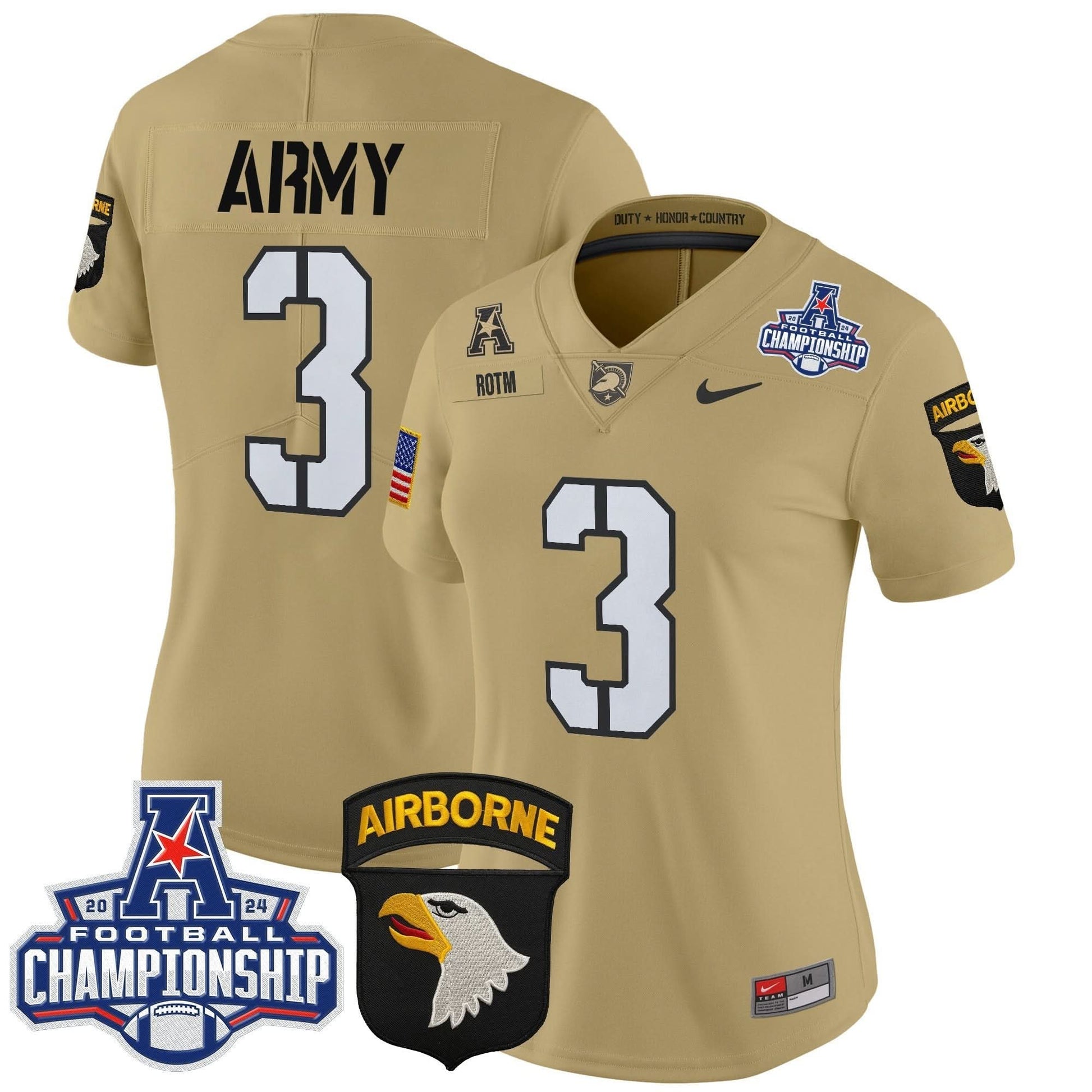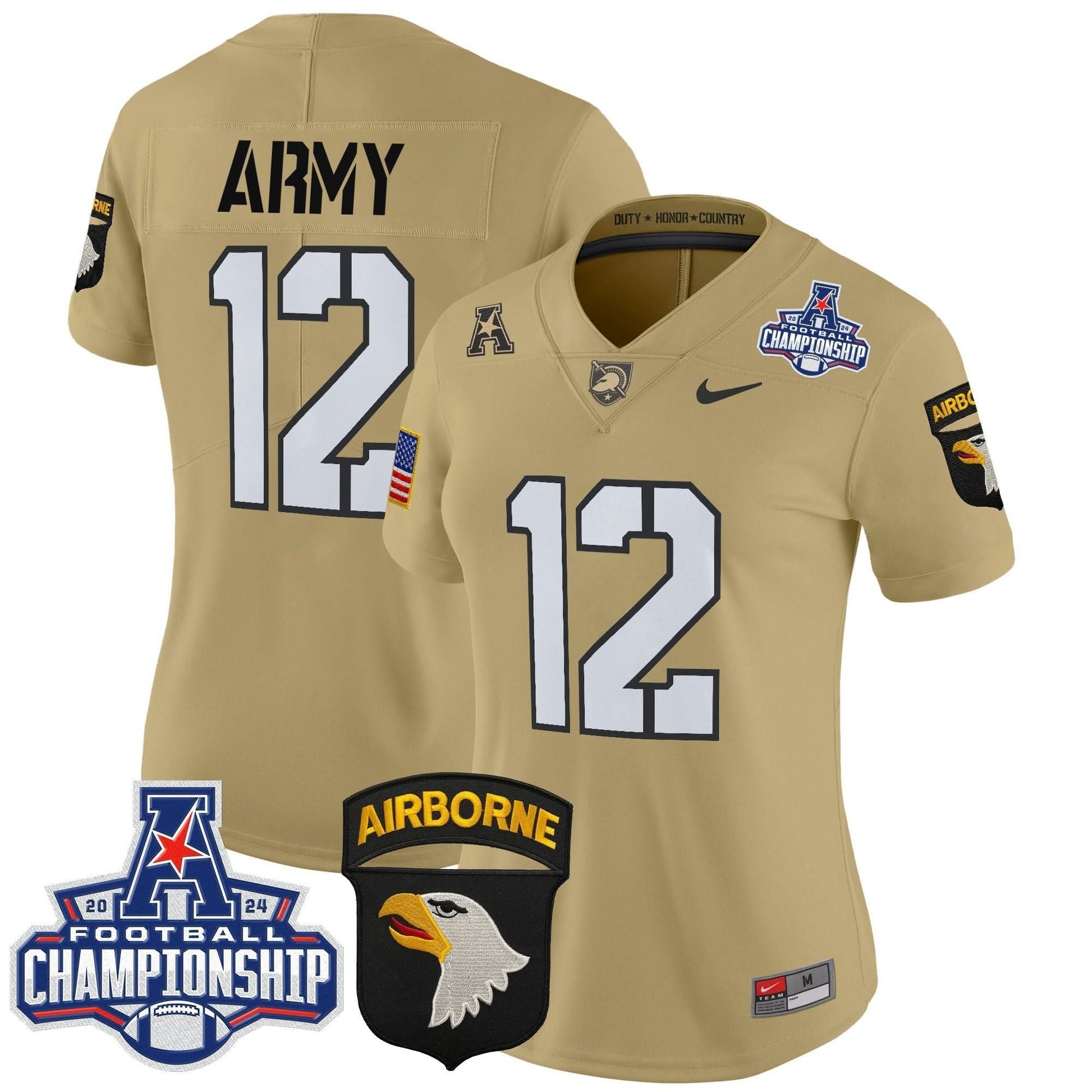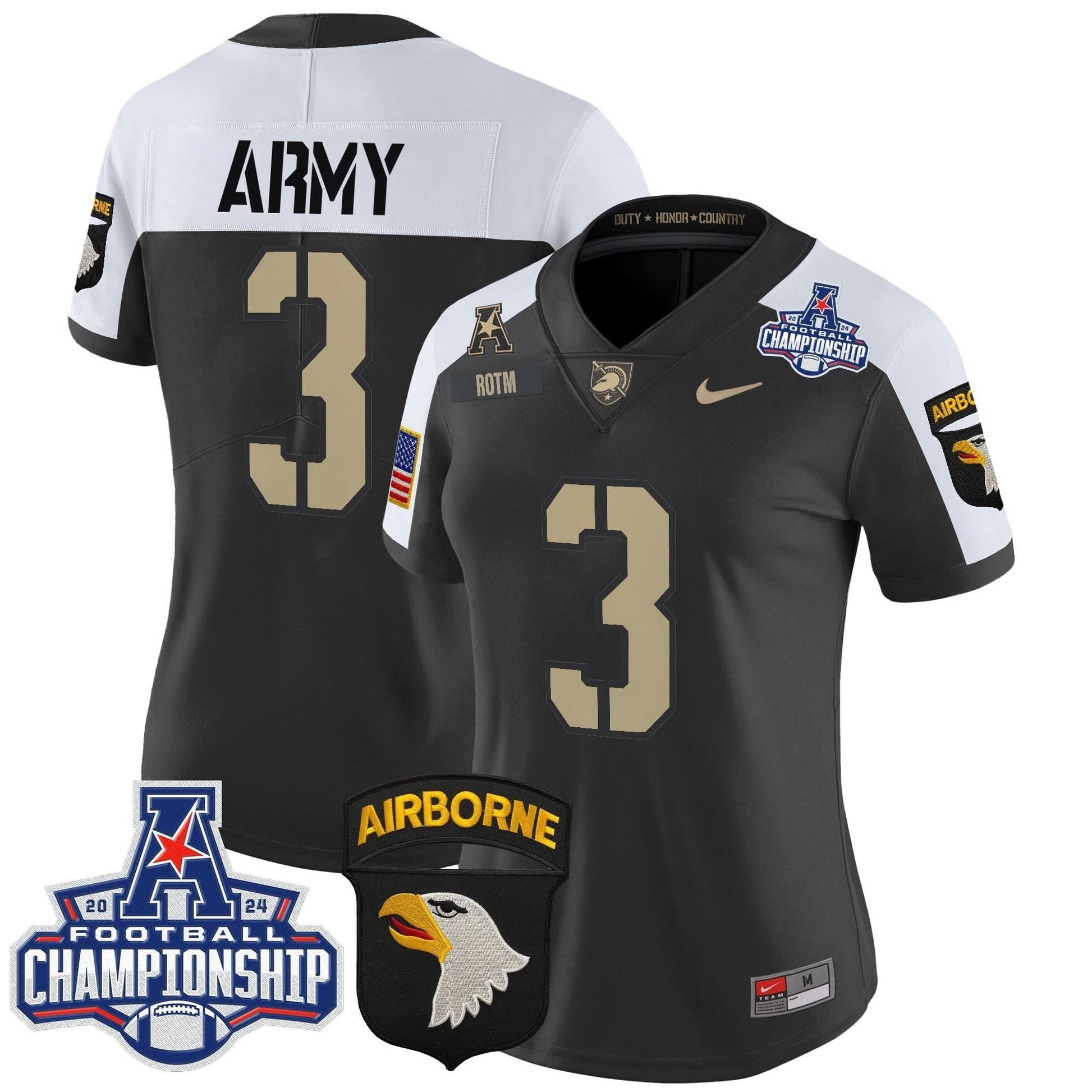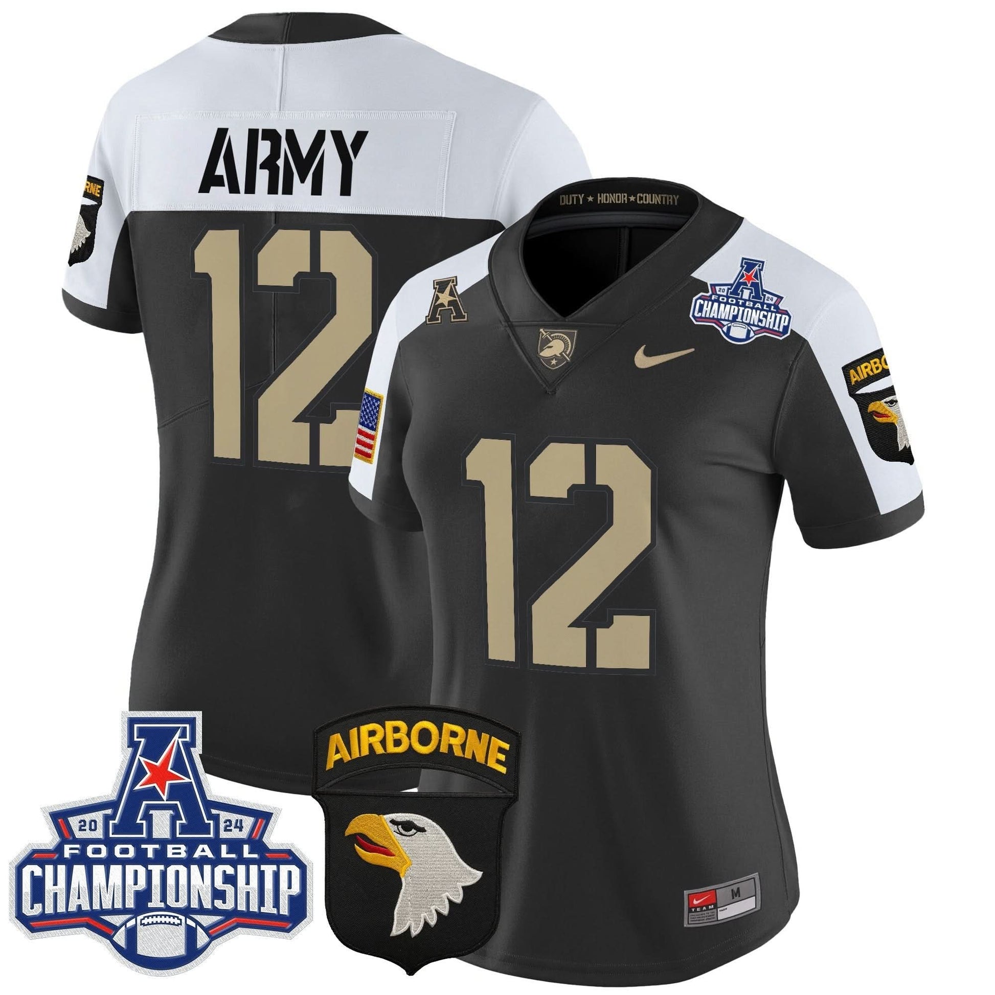 Women's Army Black Knights 2024 AAC Championship Patch Vapor Limited Jersey V2 - All Stitched