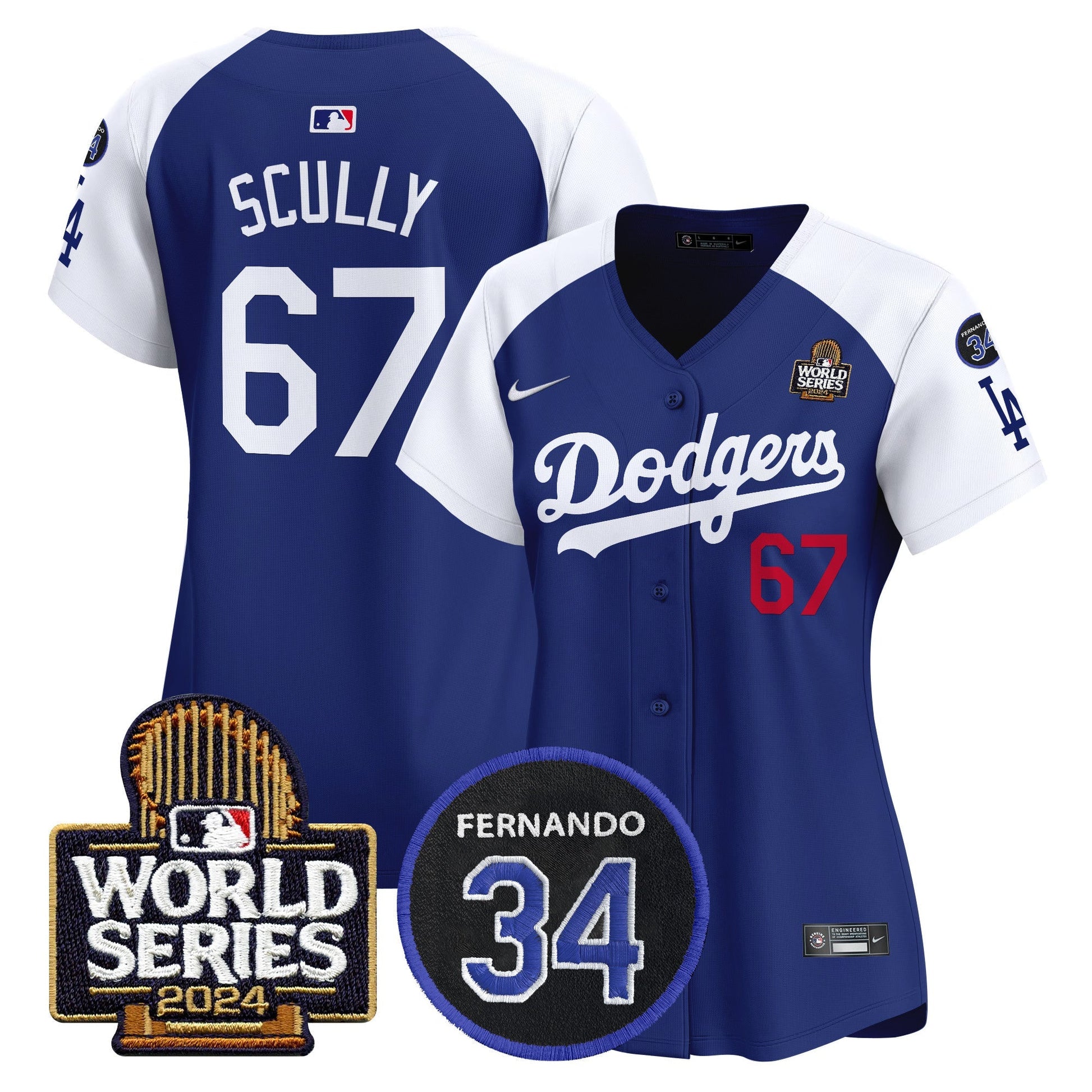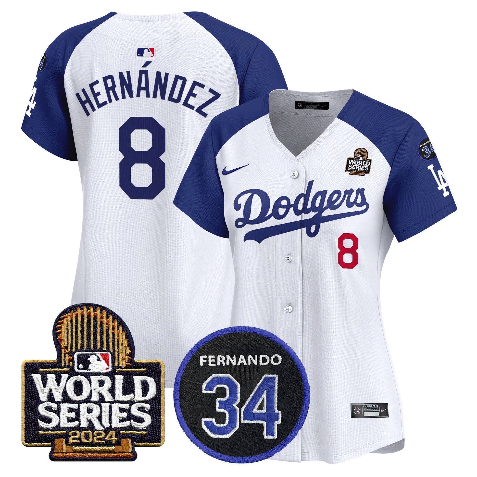 Women's Dodgers Fernando Memorial & 2024 World Series Patch Vapor Premier Limited Jersey V2 - All Stitched