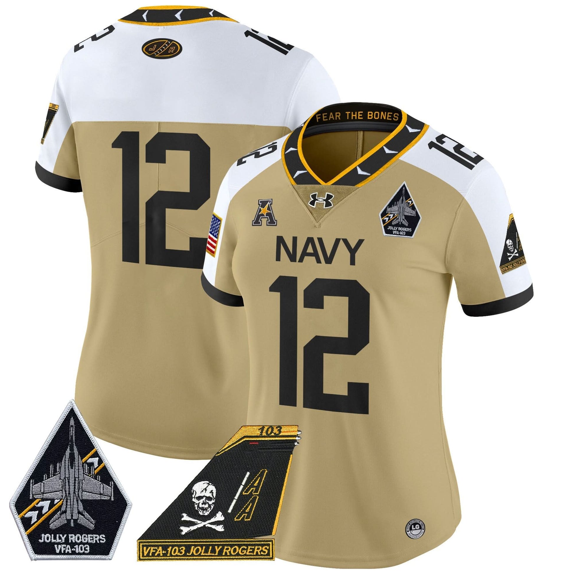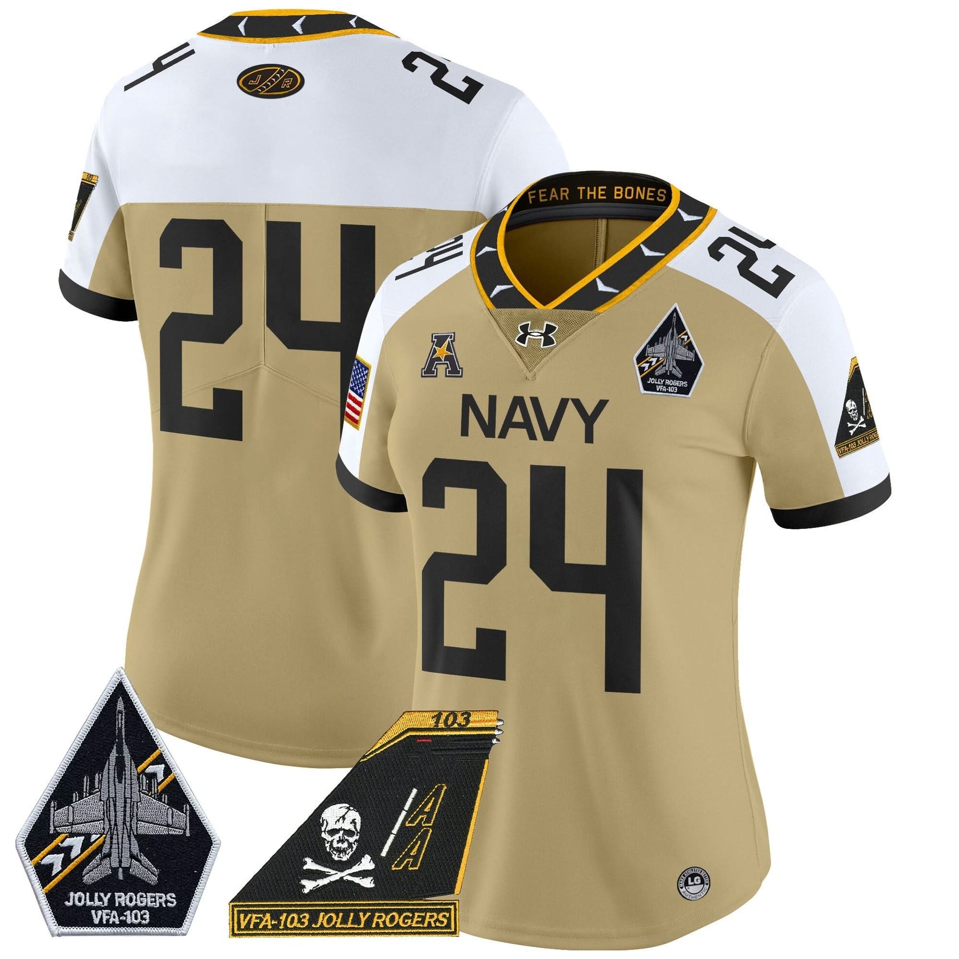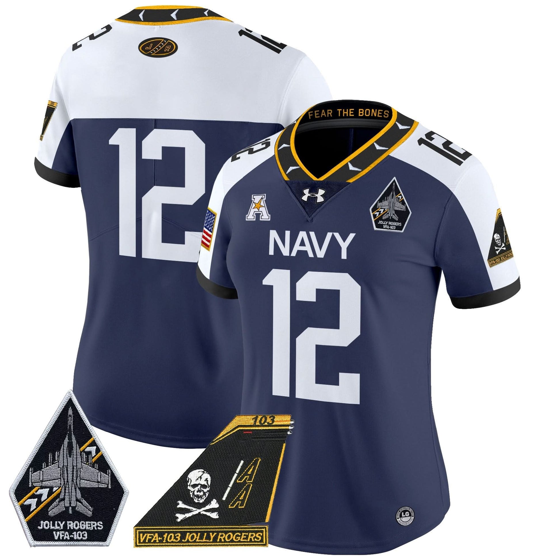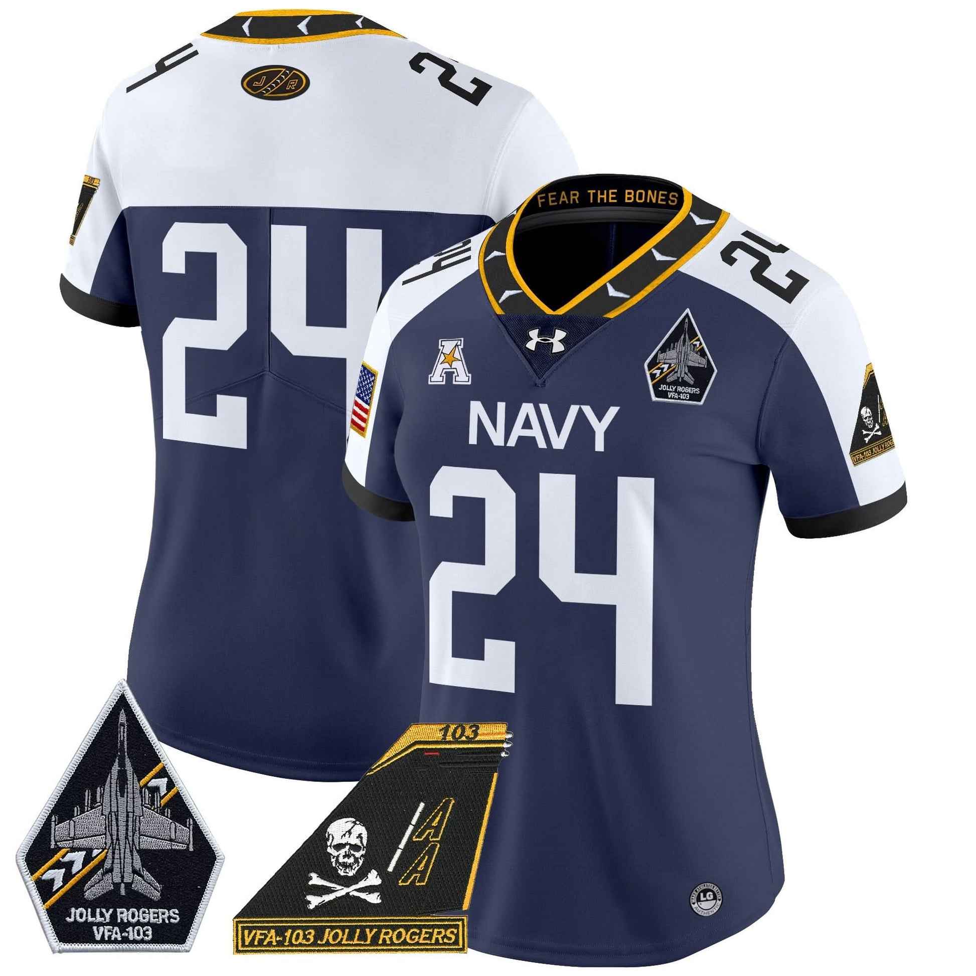 Women's Navy Midshipmen 2024 Jolly Rogers Patch Vapor Limited Jersey - All Stitched