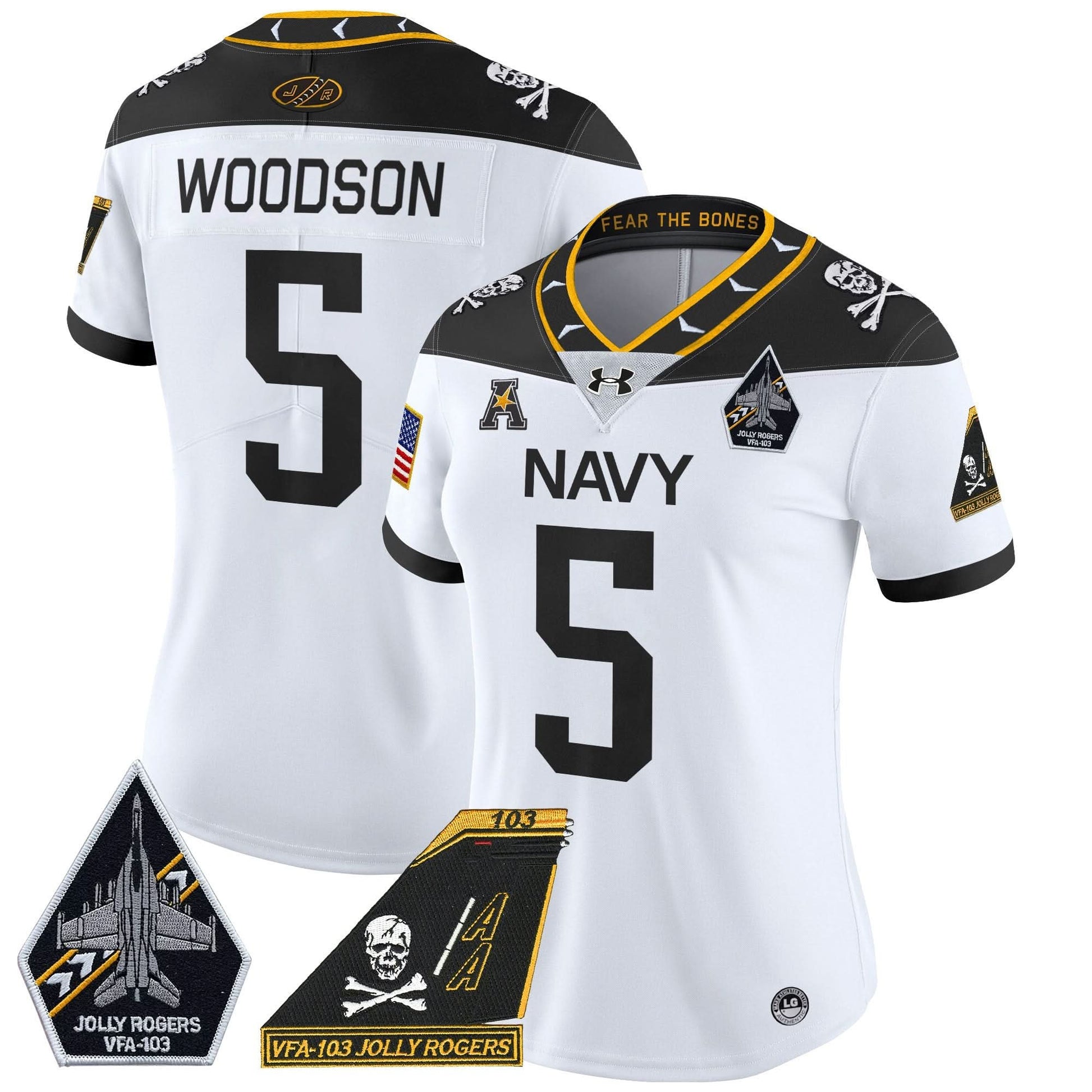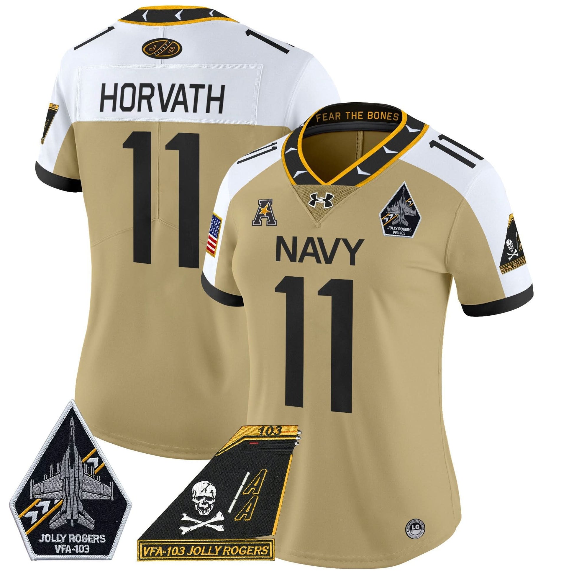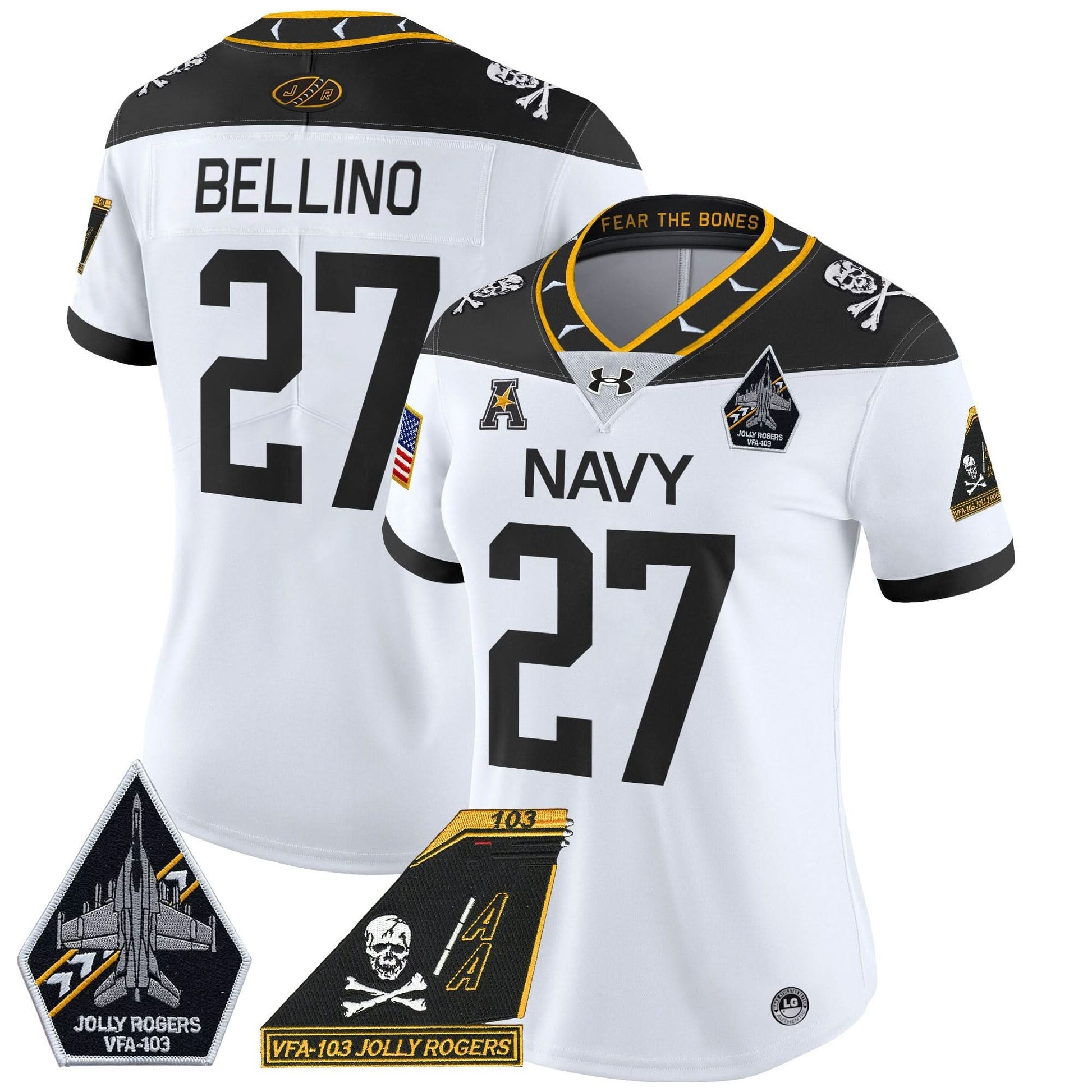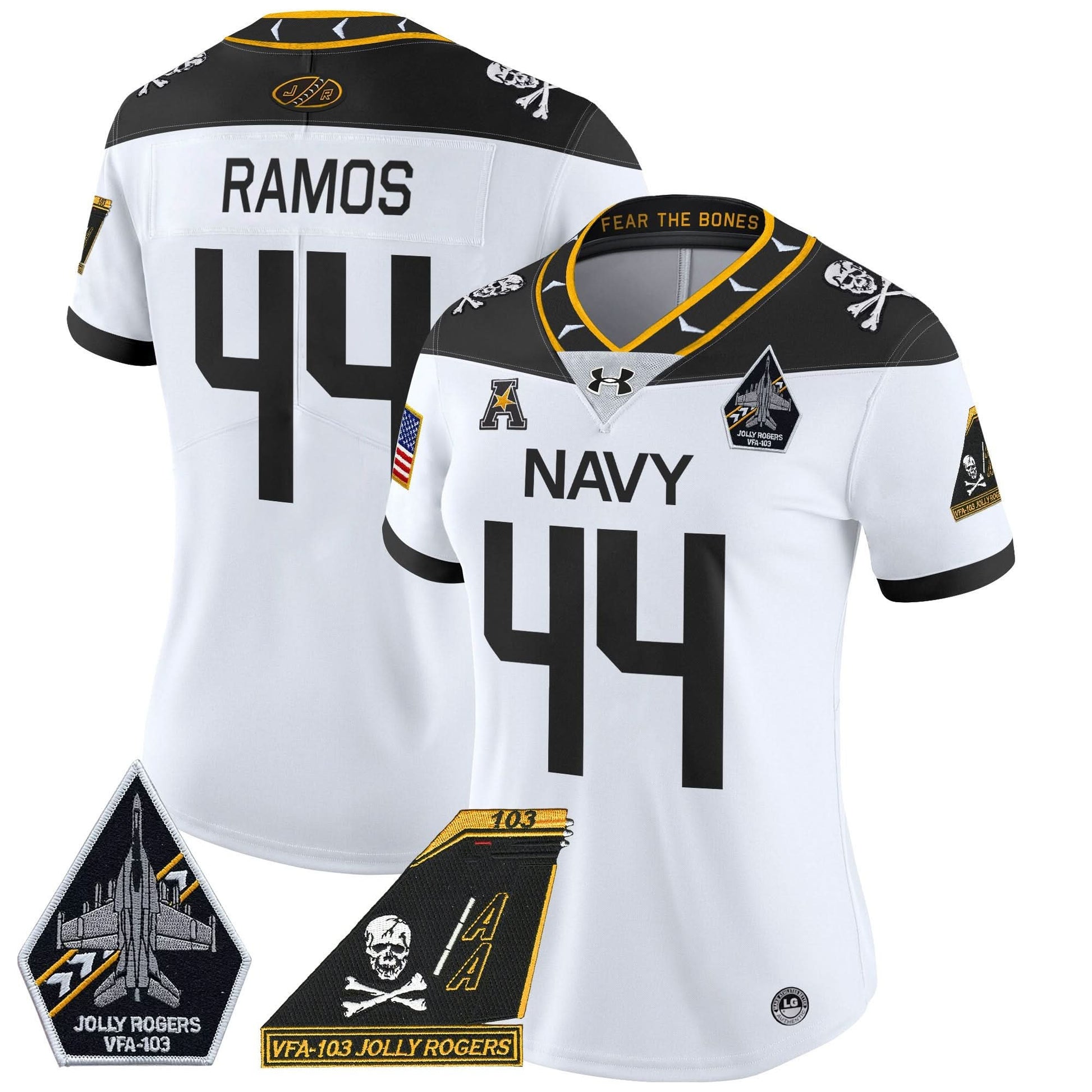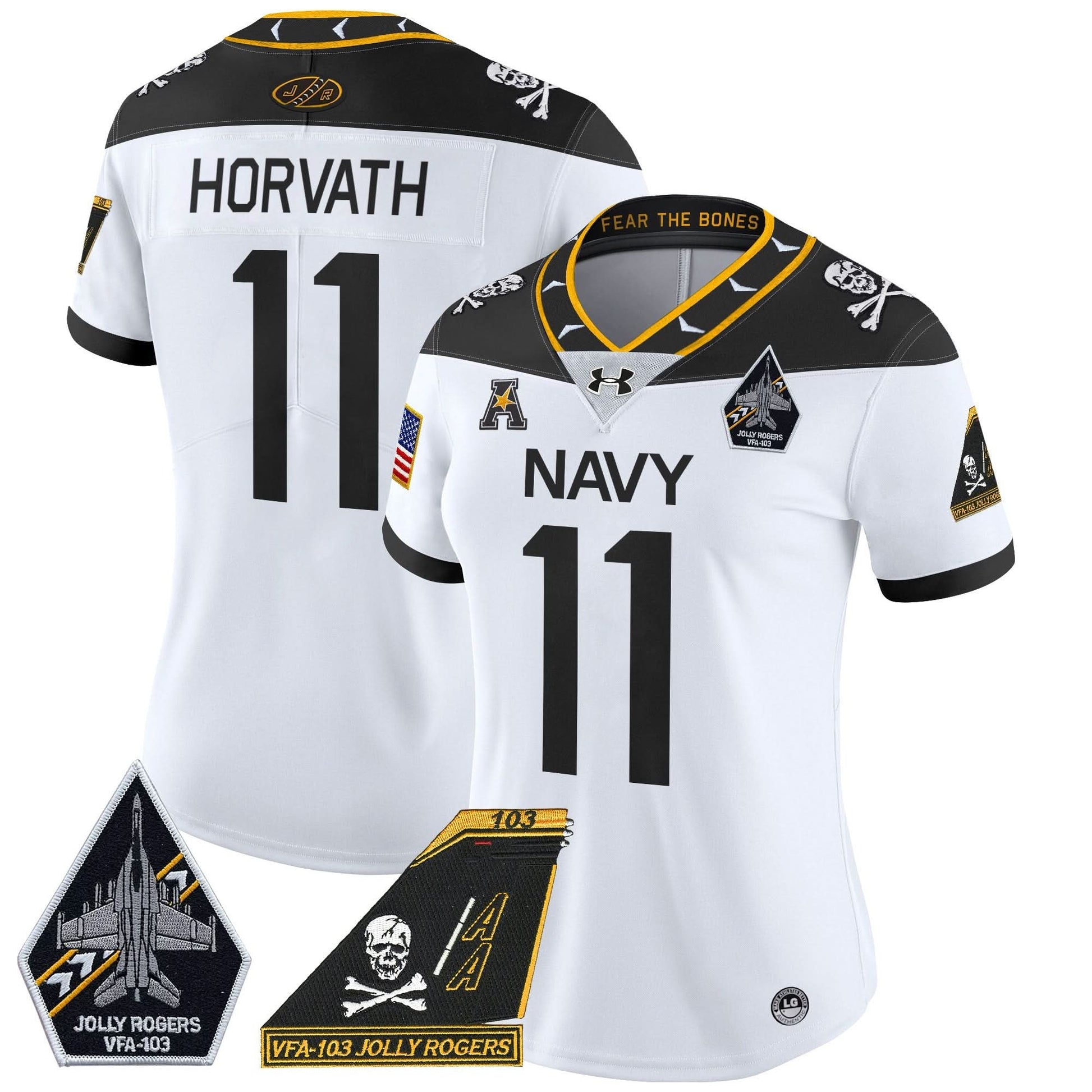 Women's Navy Midshipmen 2024 Jolly Rogers Patch Vapor Limited Jersey - All Stitched